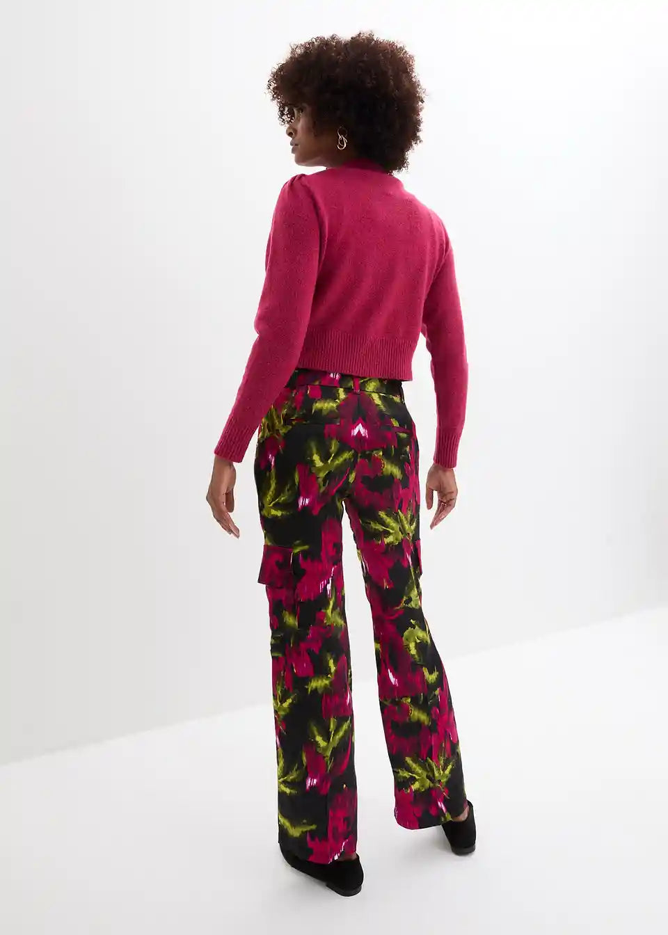 Satin Cargohose mit floralem Druck
