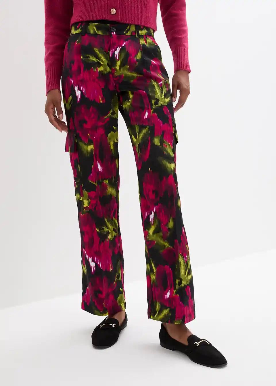schicke Cargohose mit Seitentaschen und Blumenmuster
