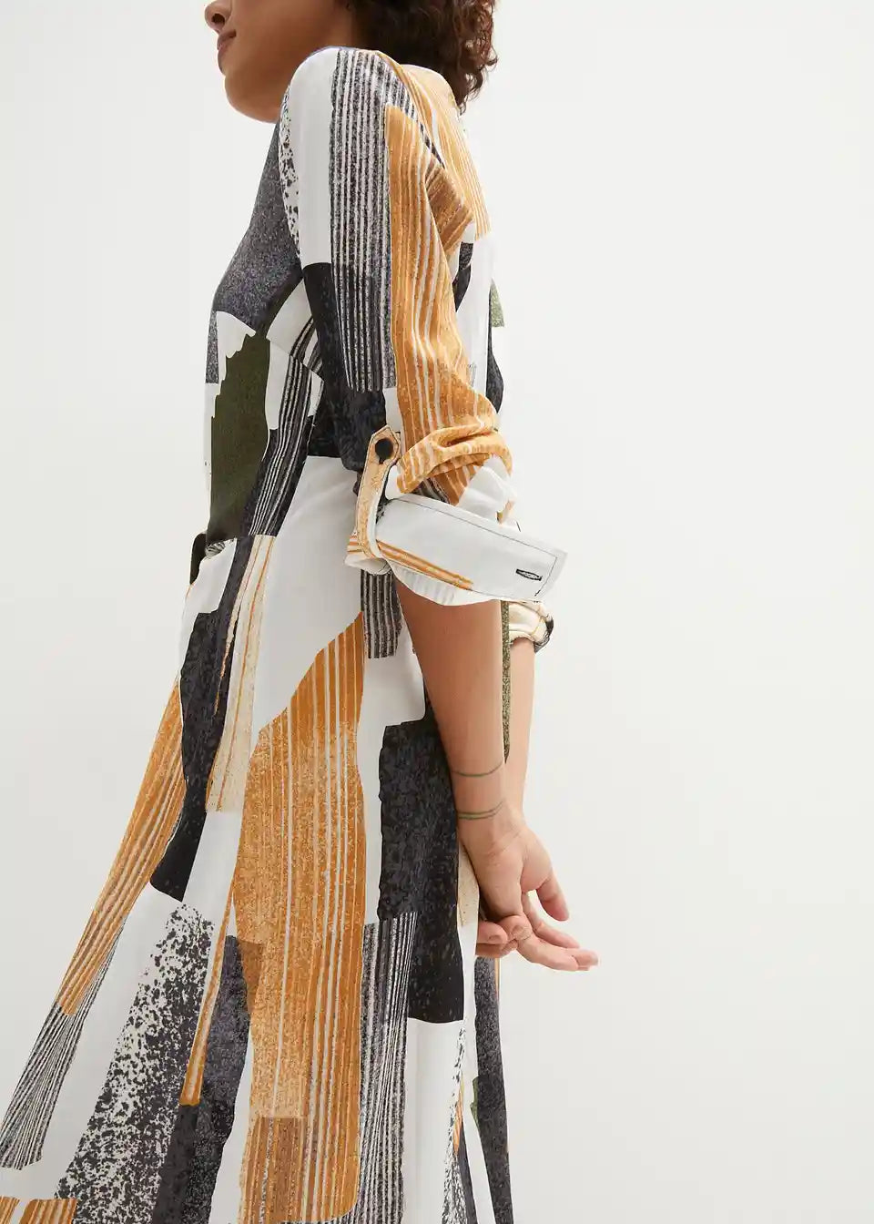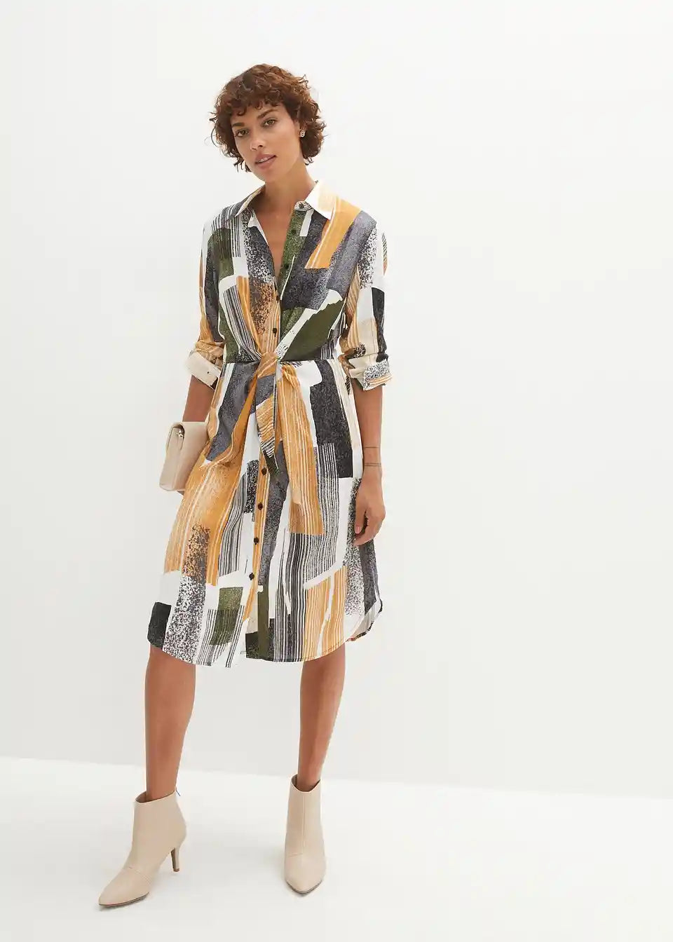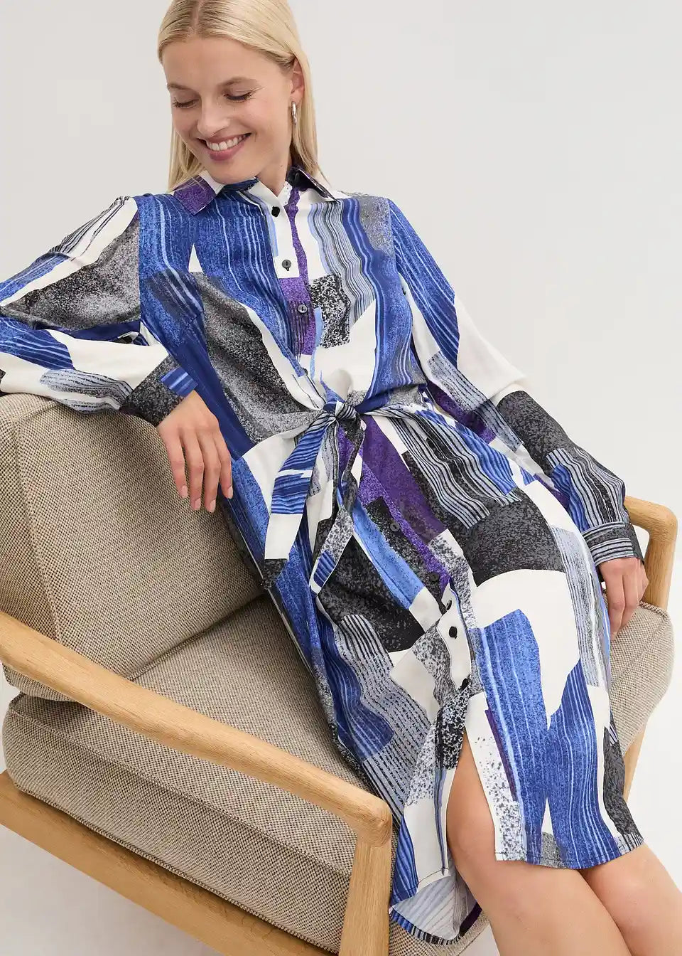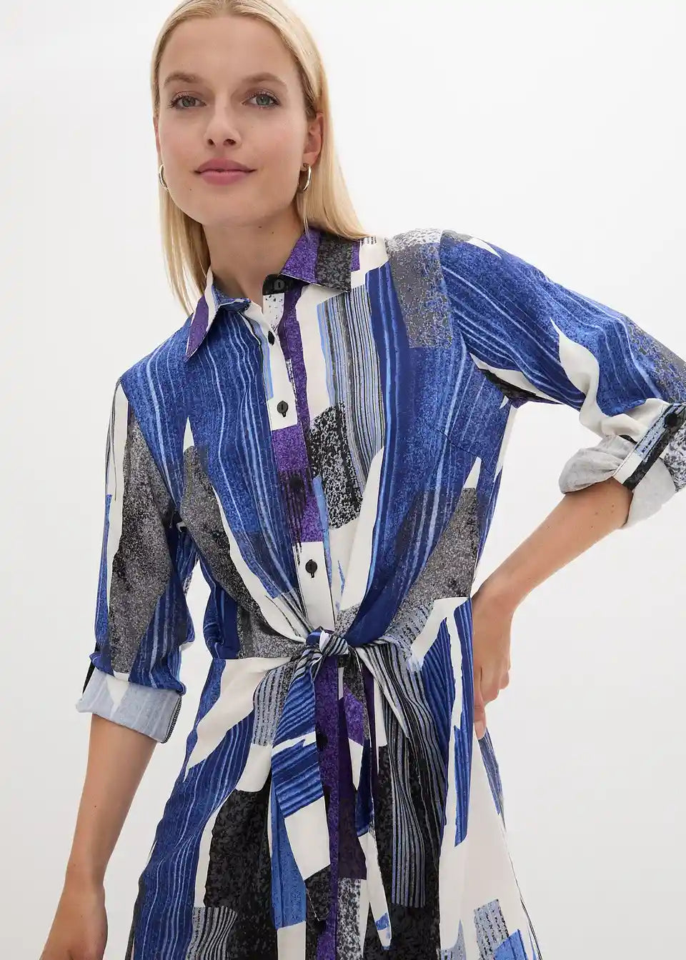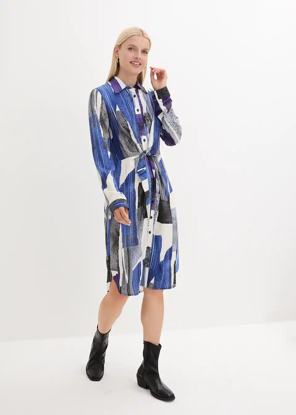 Dieses modische Hemdblusenkleid schmeichelt besonders der Figur aufgrund ihres weiteren Schnittes und dem Taillengürtel. Der trendige Zebra Look ergänzt die modische Optik. In Kombination mit attraktiven Pumps und einer kleinen Tasche sowie edlem Schmuck wirkt das Hemdblusenkleid besonders charmant und reizvoll.