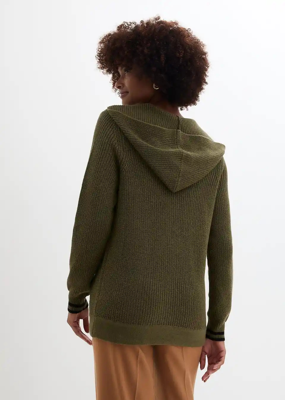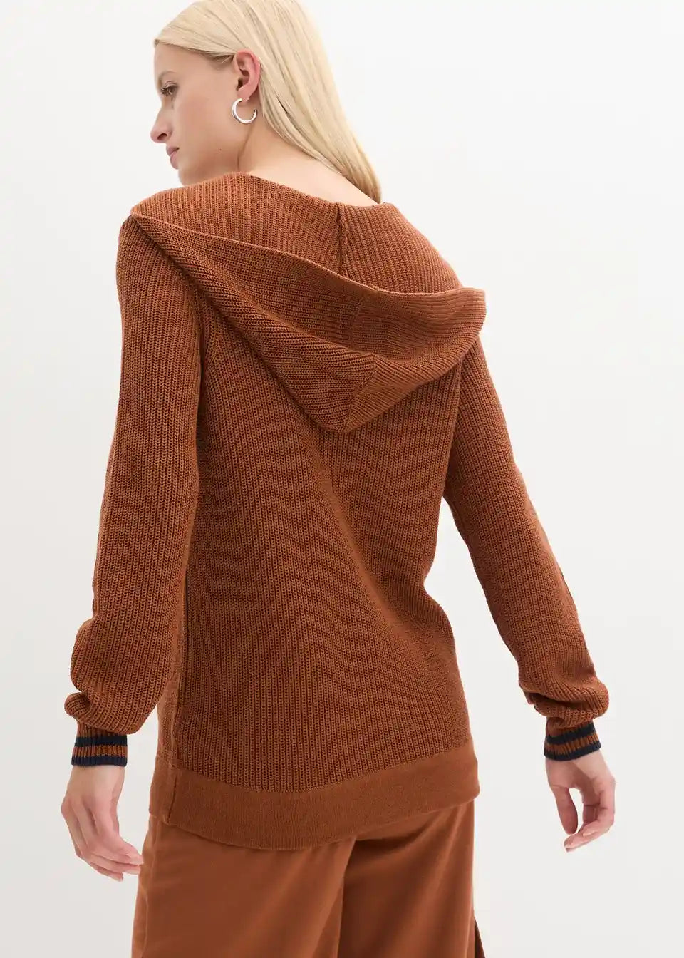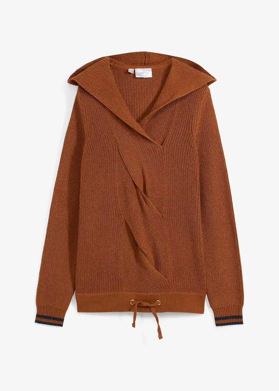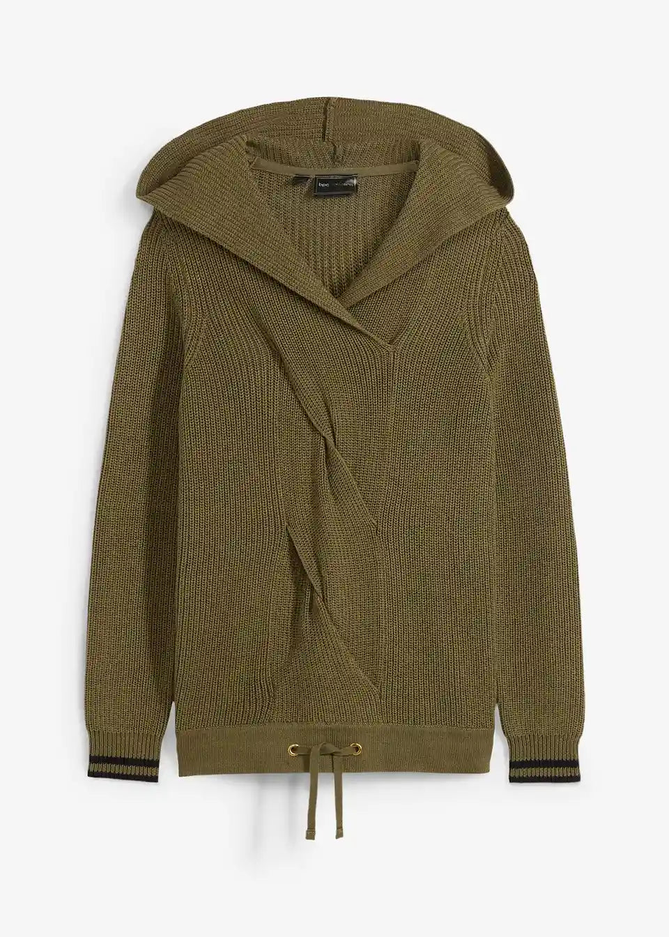 modischer Pullover mit Kapuze und raffiniertem Zopfmuster