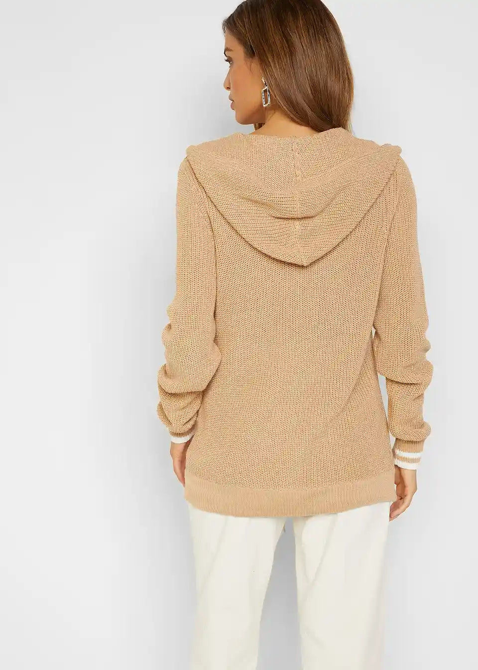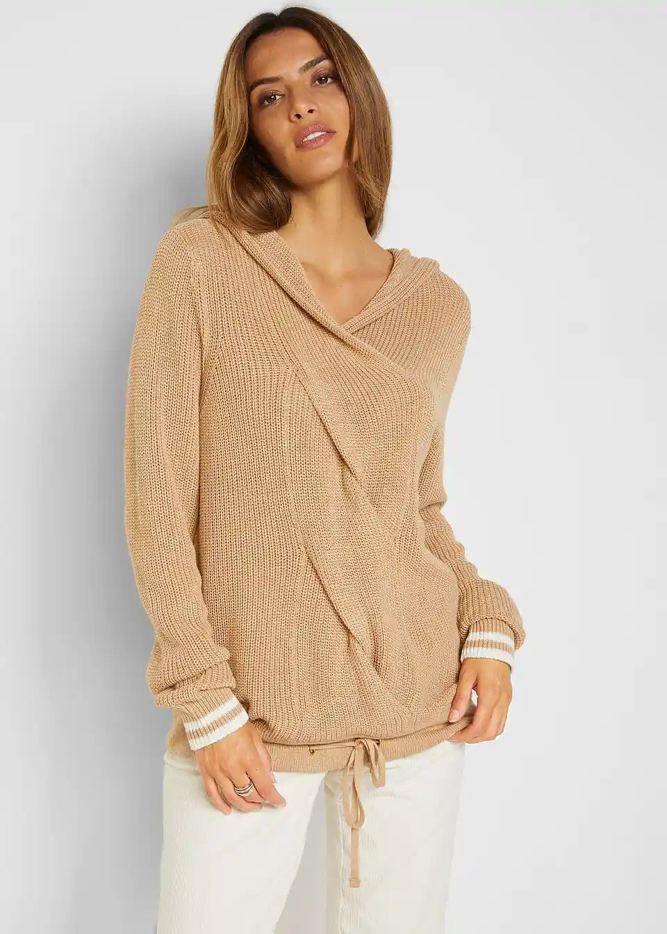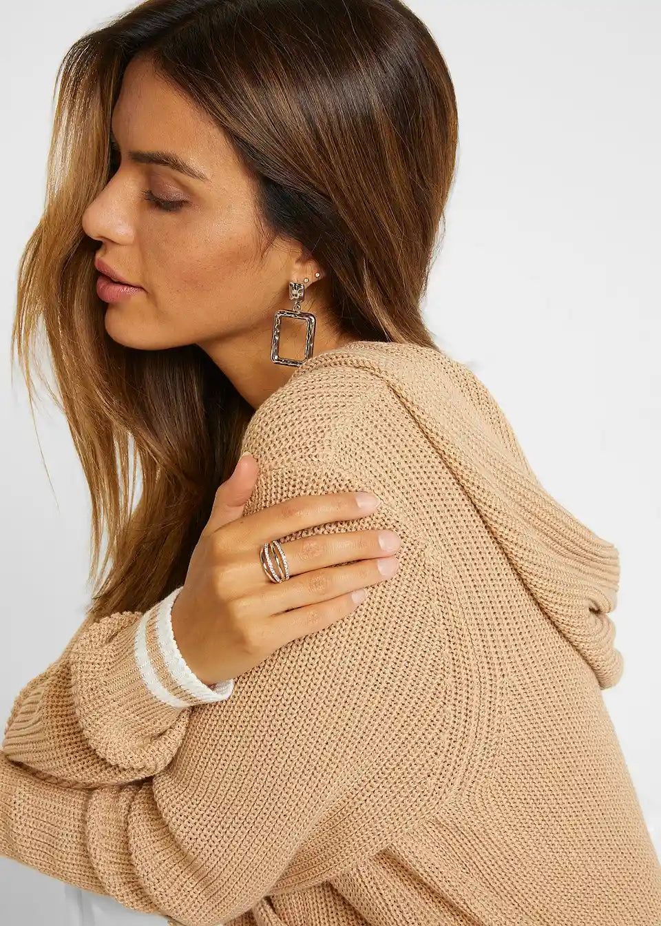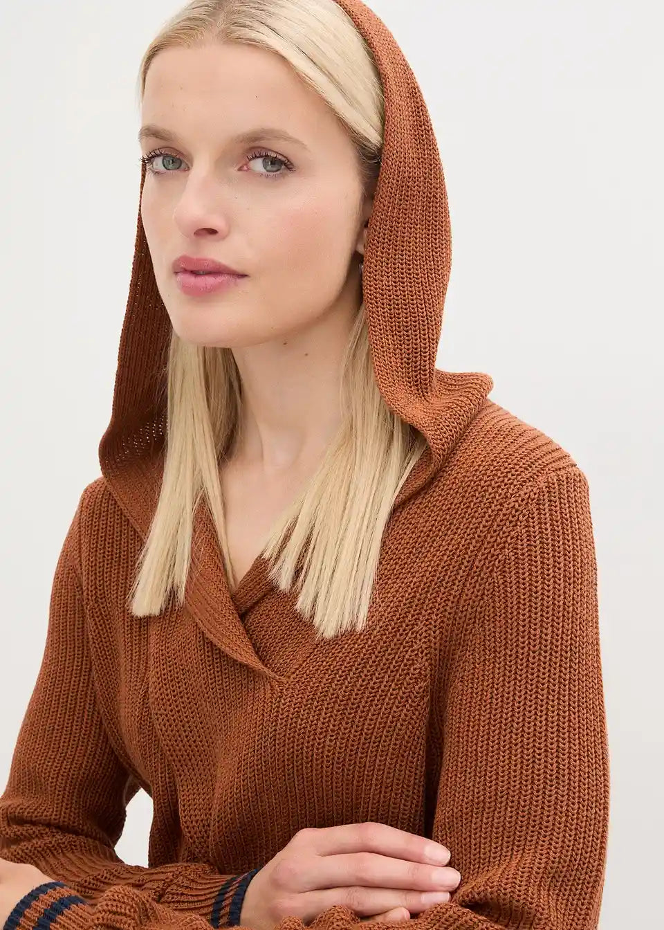 modischer Pullover mit Kapuze und raffiniertem Zopfmuster