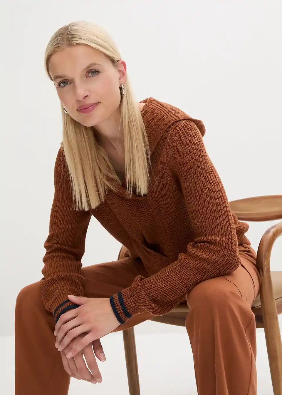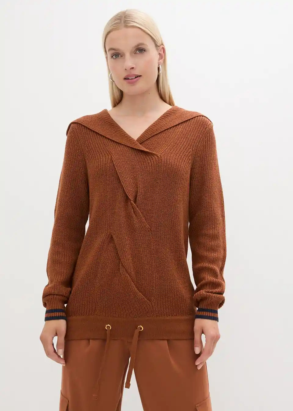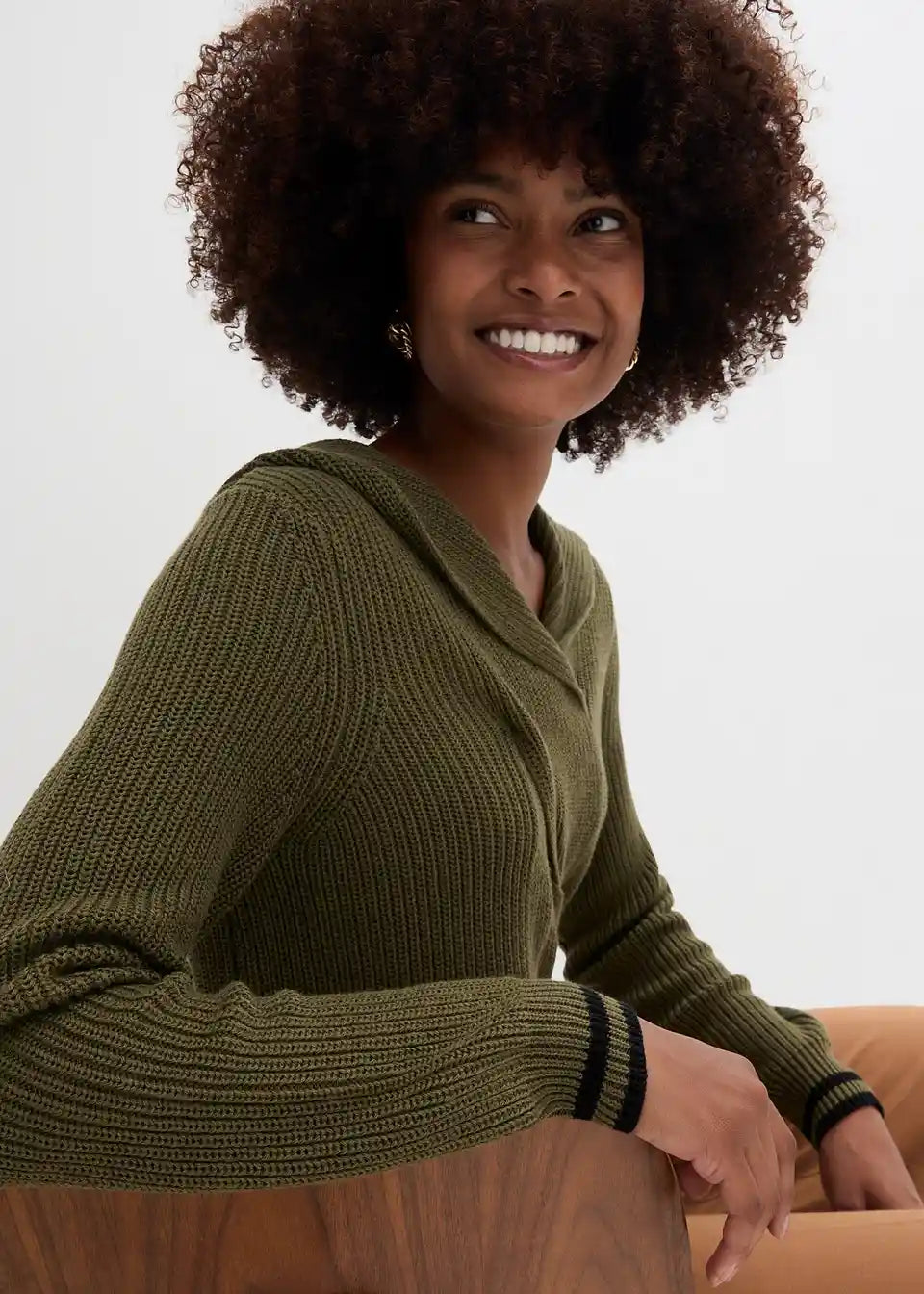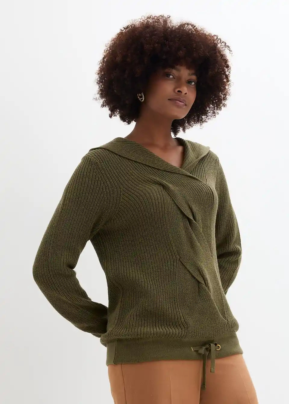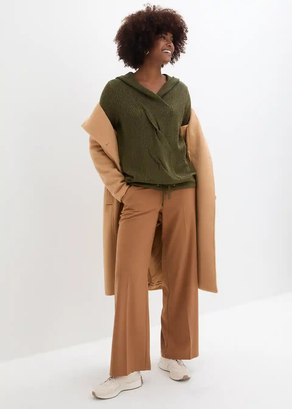 modischer Pullover mit Kapuze und raffiniertem Zopfmuster