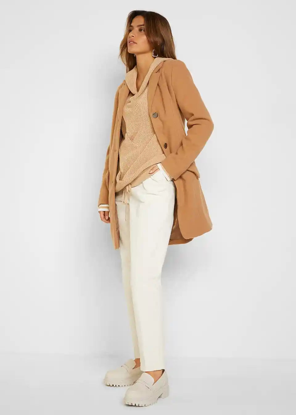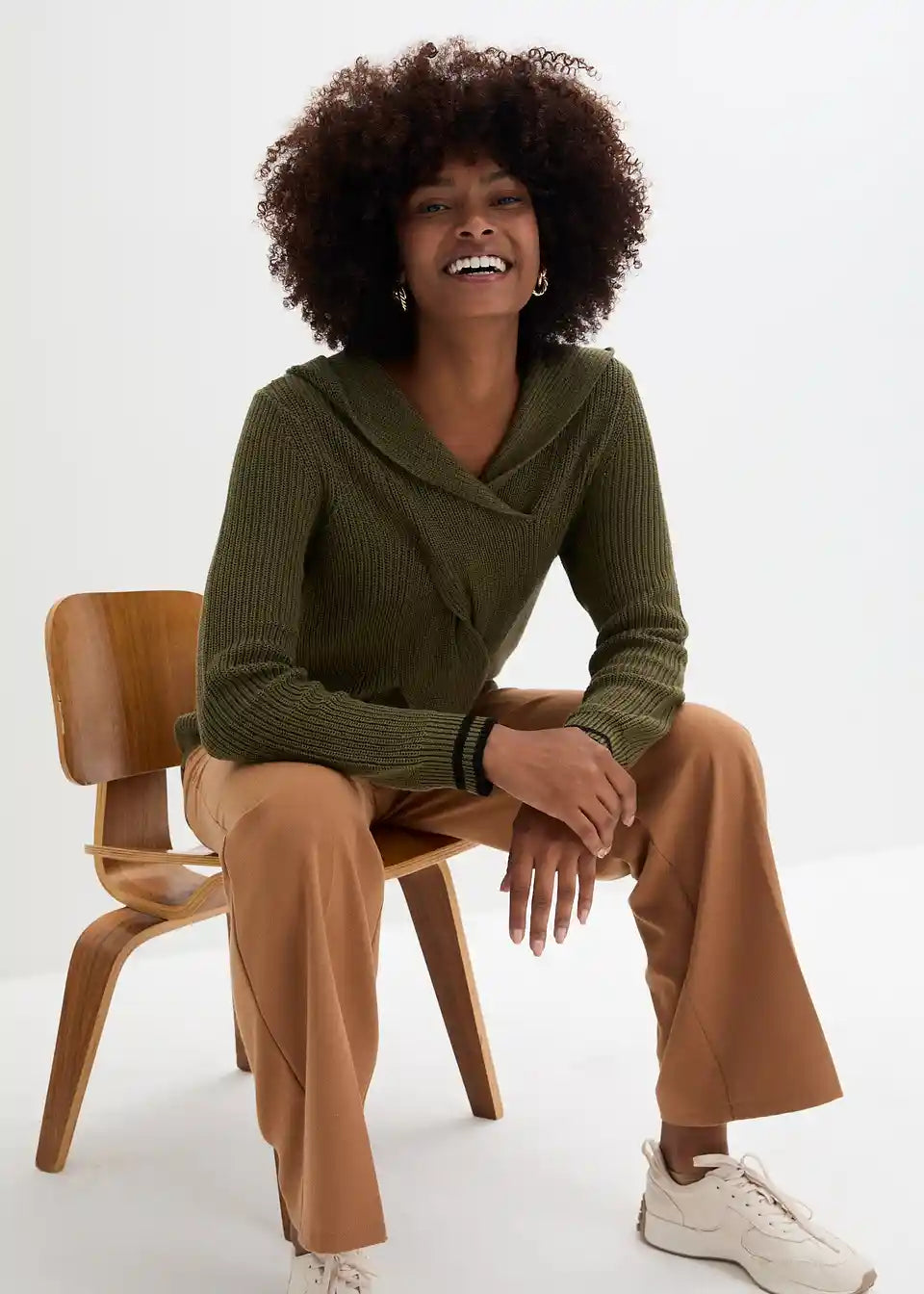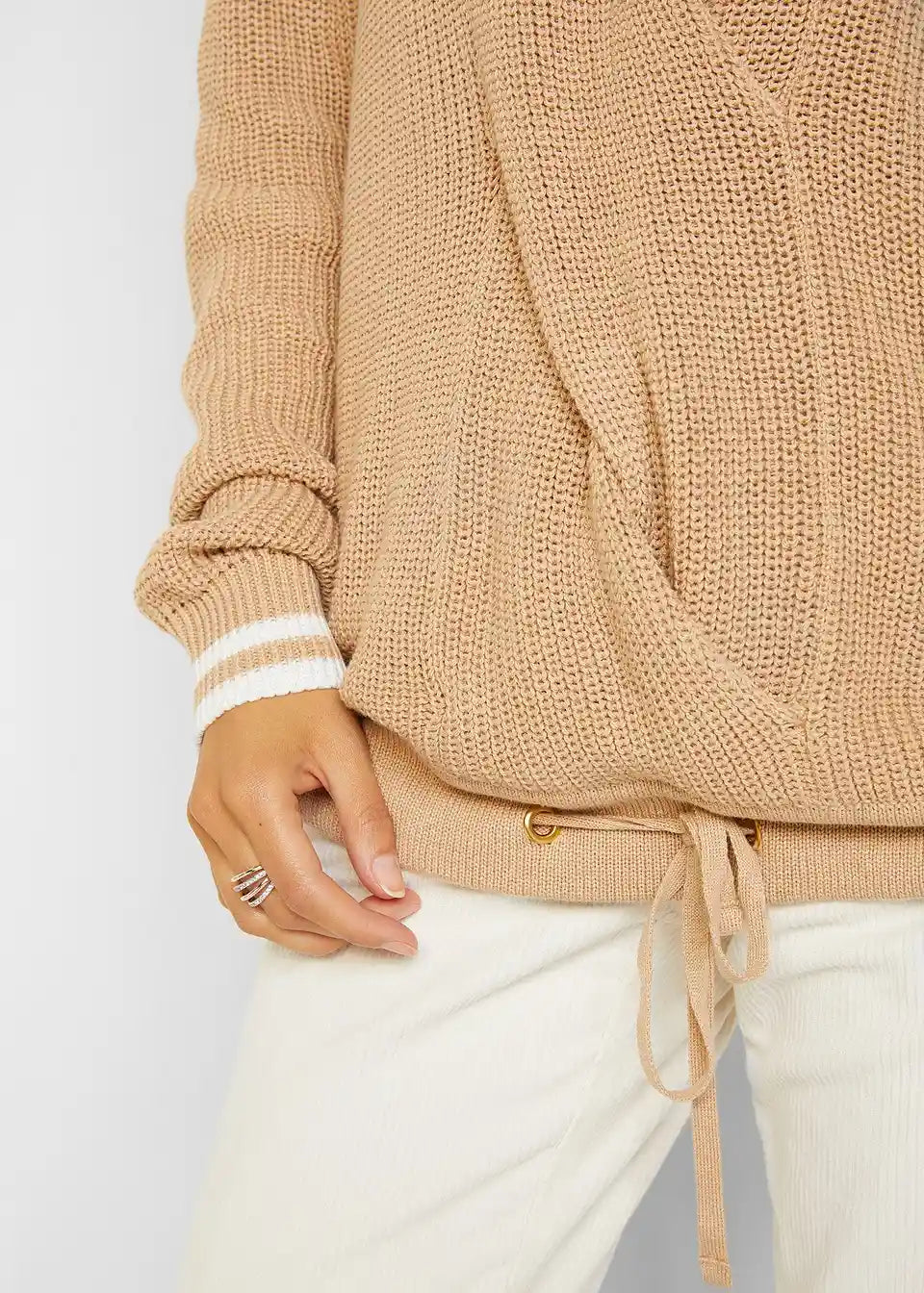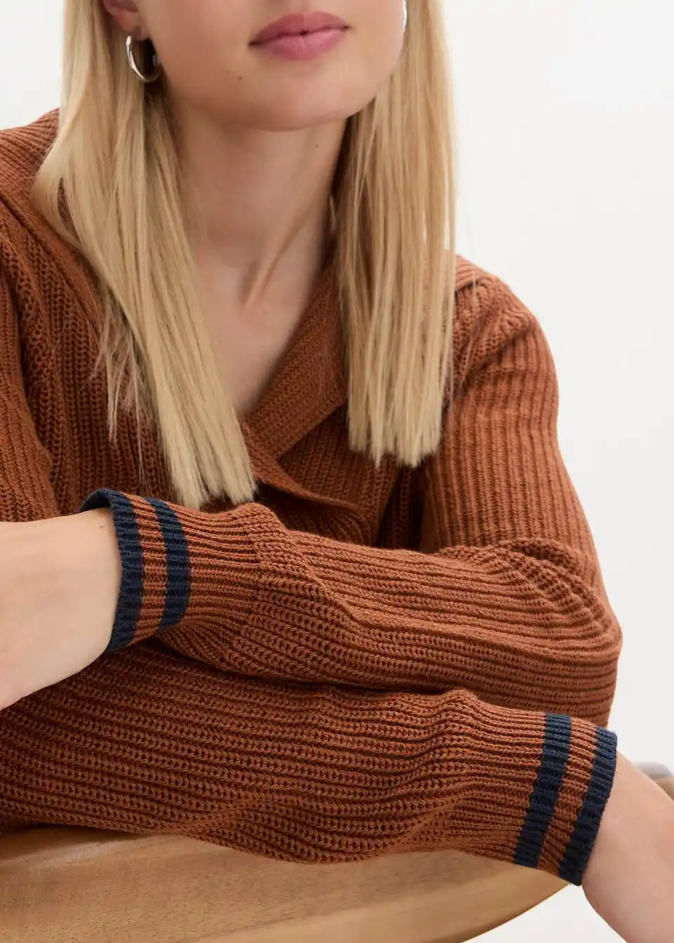modischer Pullover mit Kapuze und raffiniertem Zopfmuster