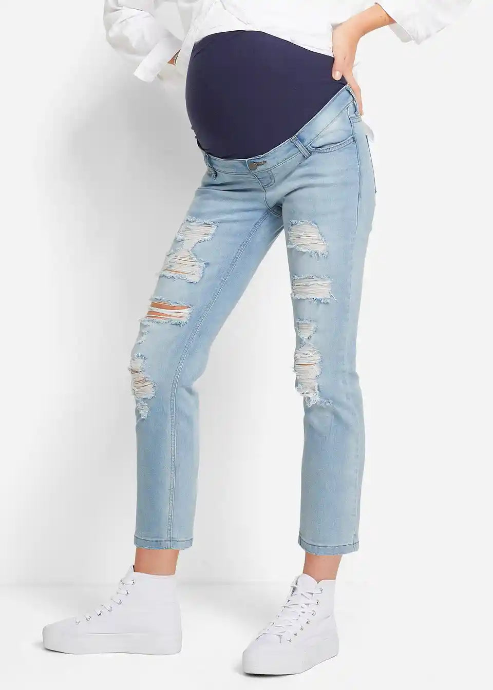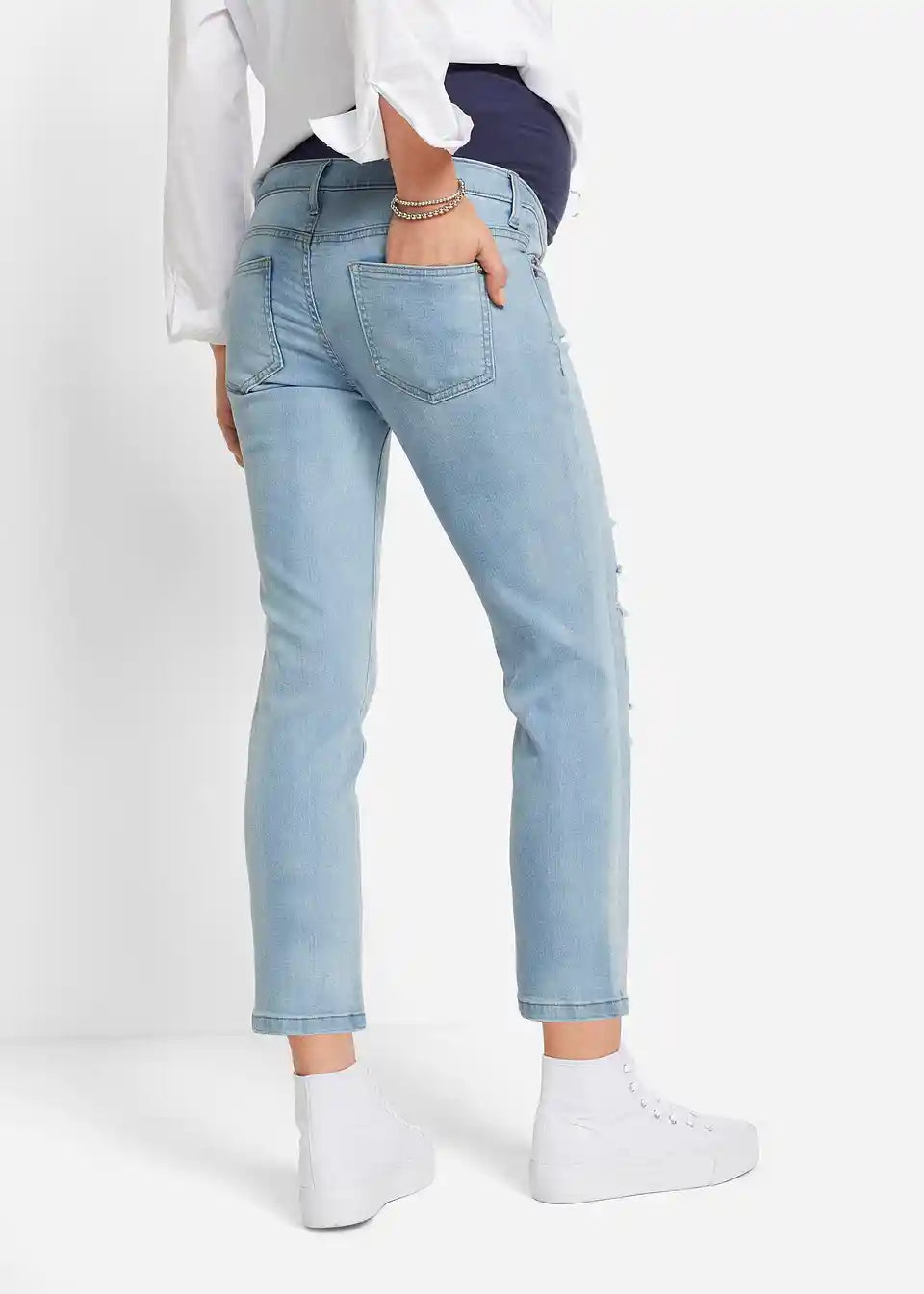Verkürzte Umstandsjeans mit Destroy-Effekten