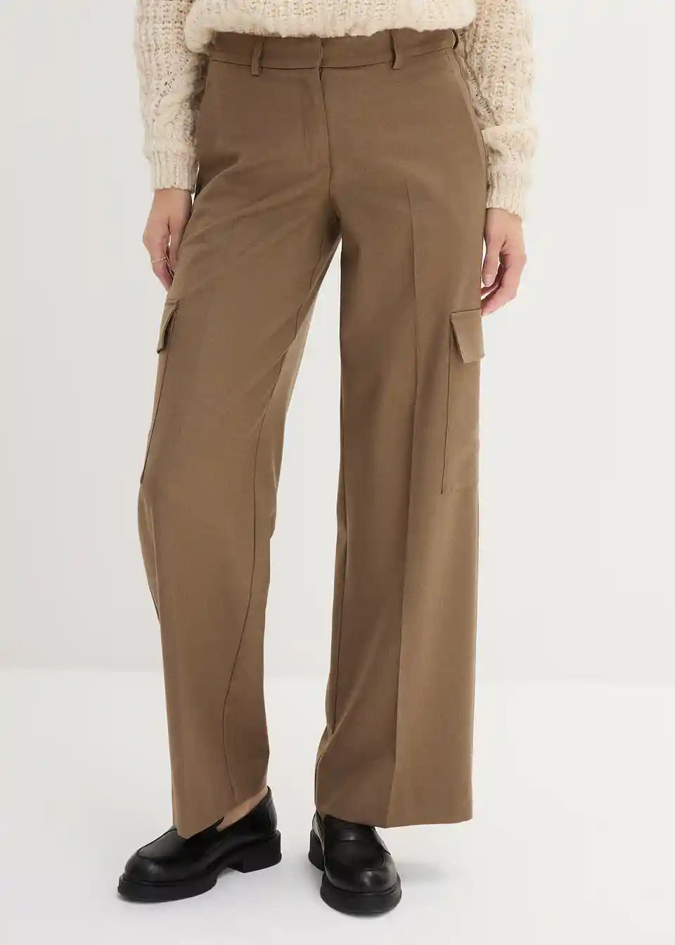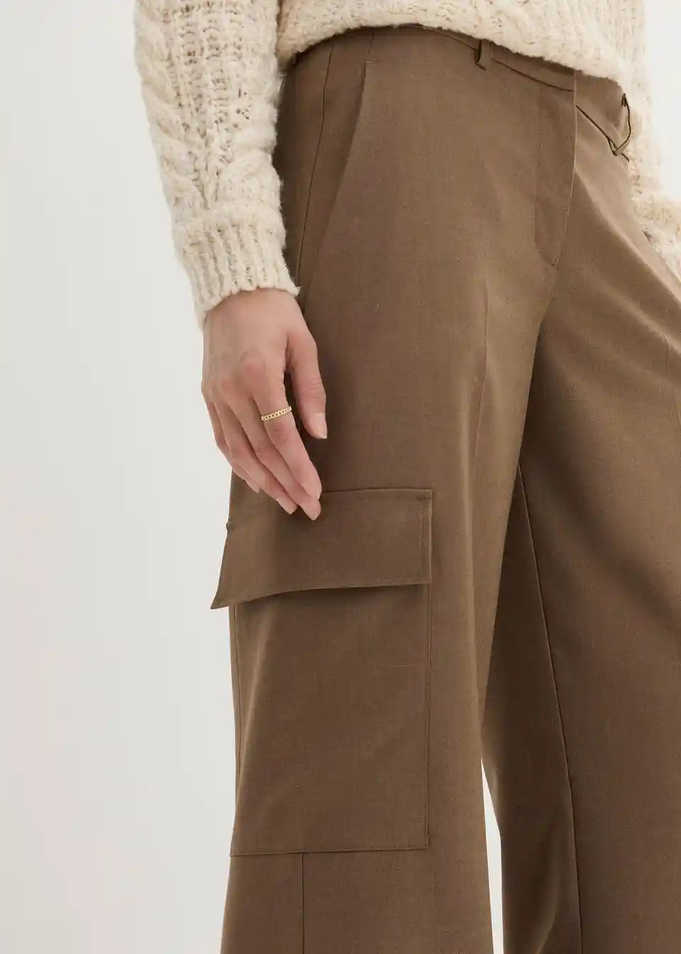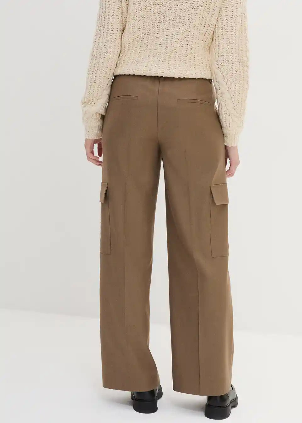 weite Anzugshose mit Cargotaschen aus edler Wollmischung
