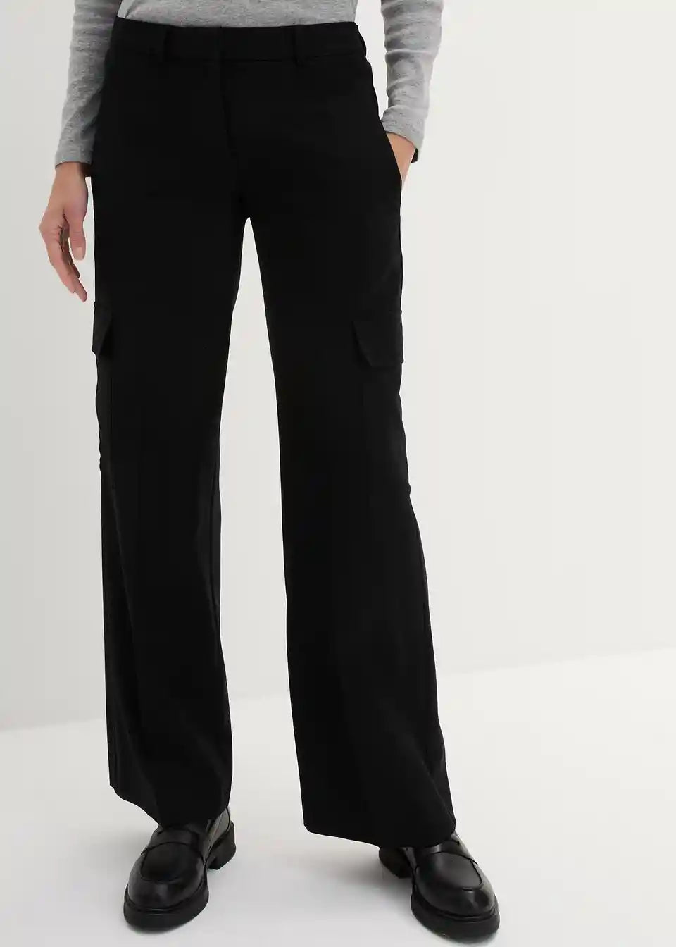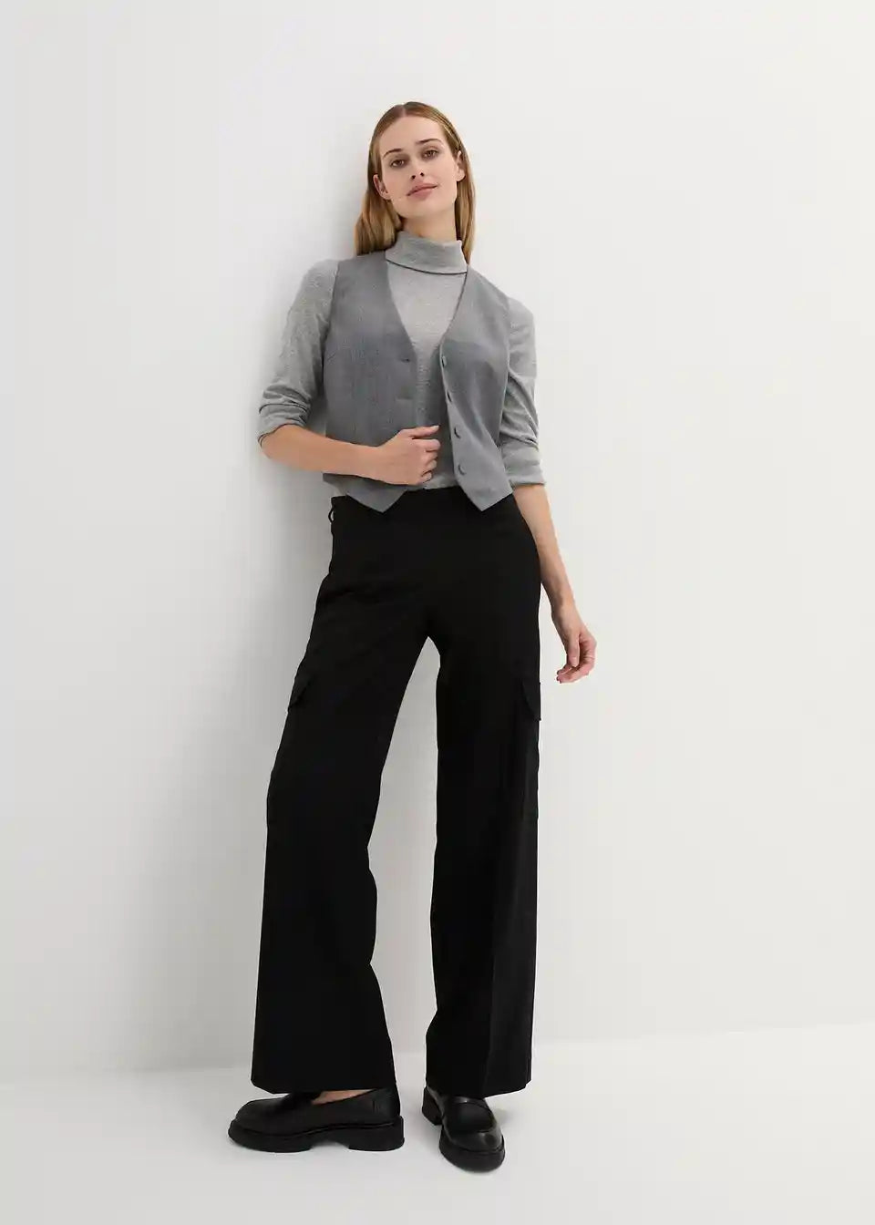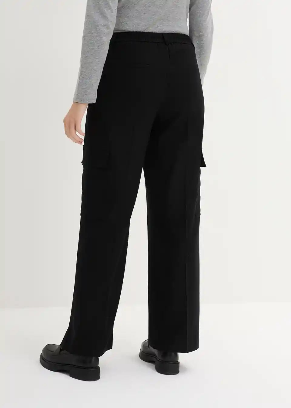 weite Anzugshose mit Cargotaschen aus edler Wollmischung