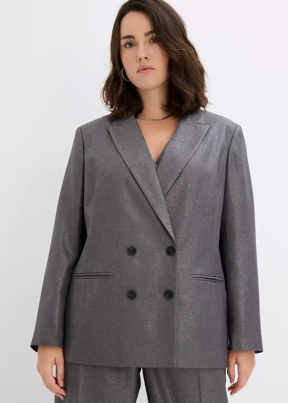 Eleganter Blazer in bequemer Passform mit glänzender Außenseite, doppelreihig geknöpft
