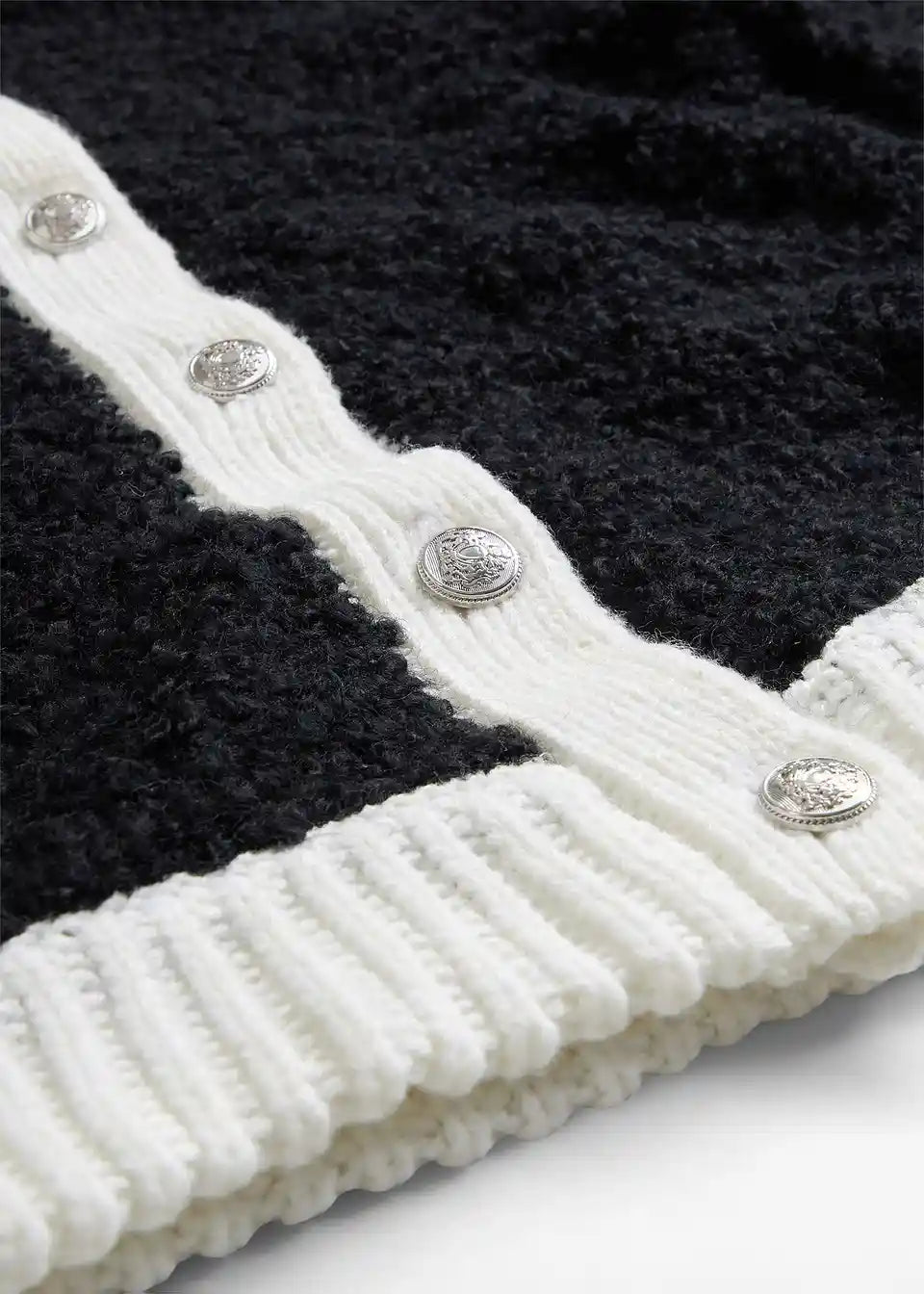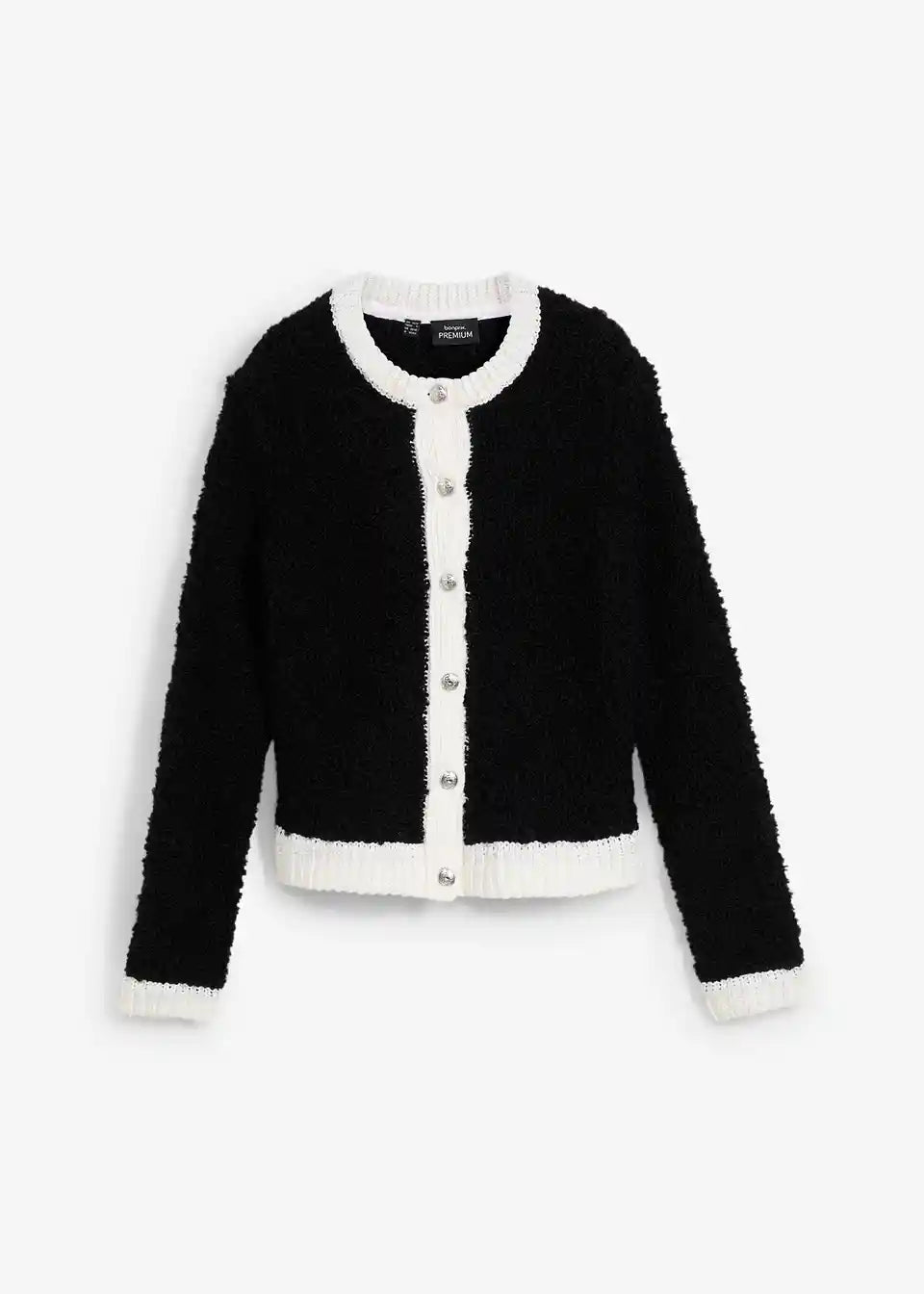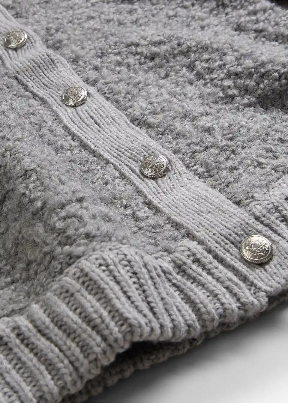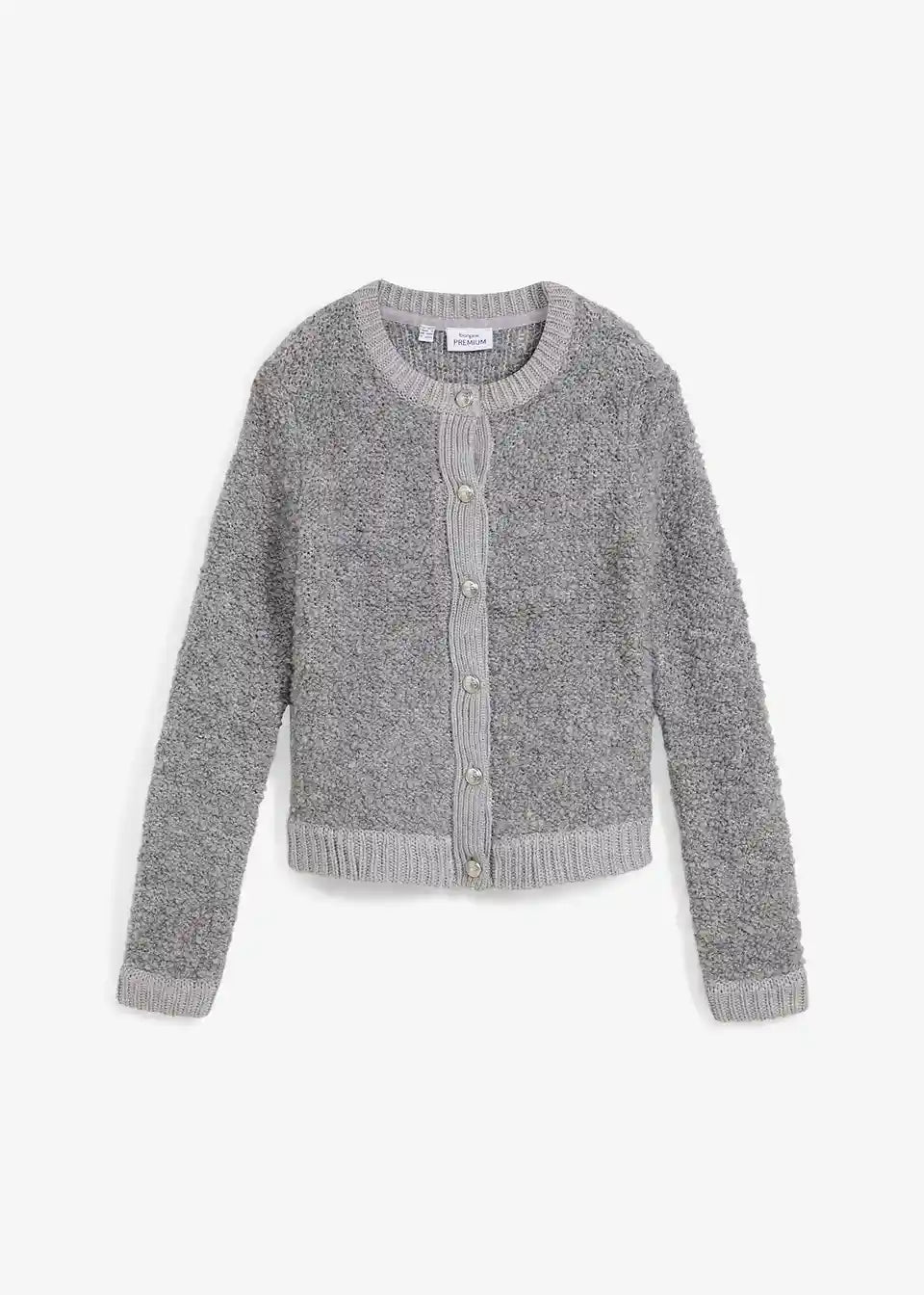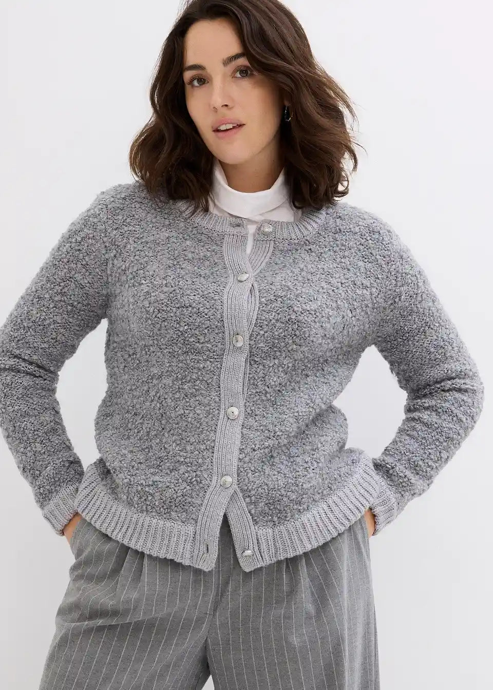 charmante Strickjacke aus flauschigem Wollmix, mit edlen Metallknöpfen