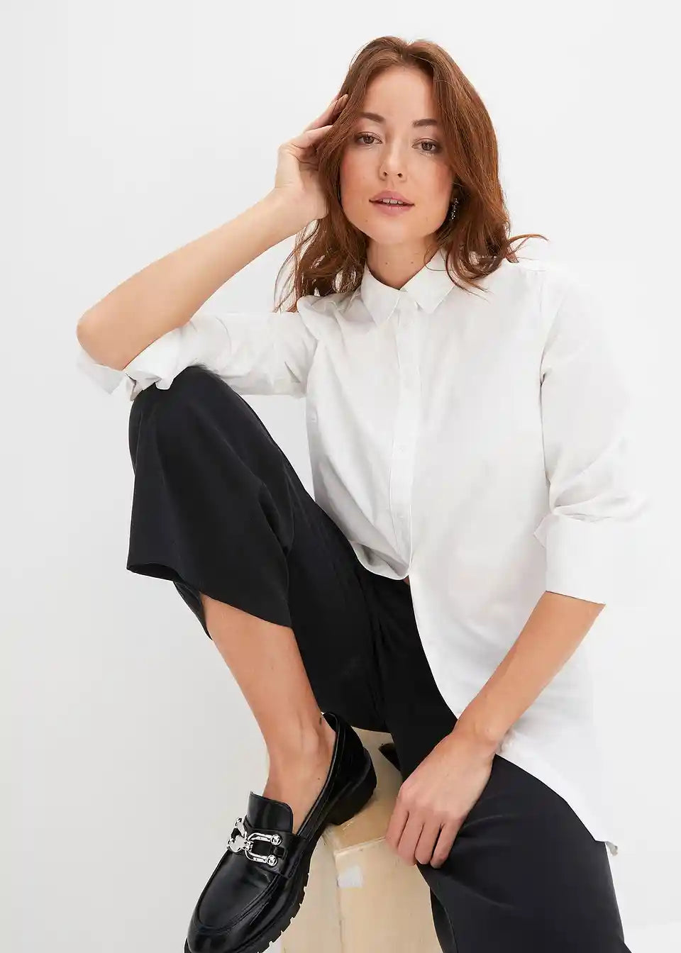 Trendige Longbluse mit breiten Ärmelmanschetten.