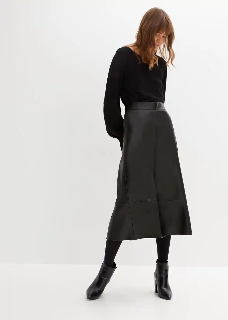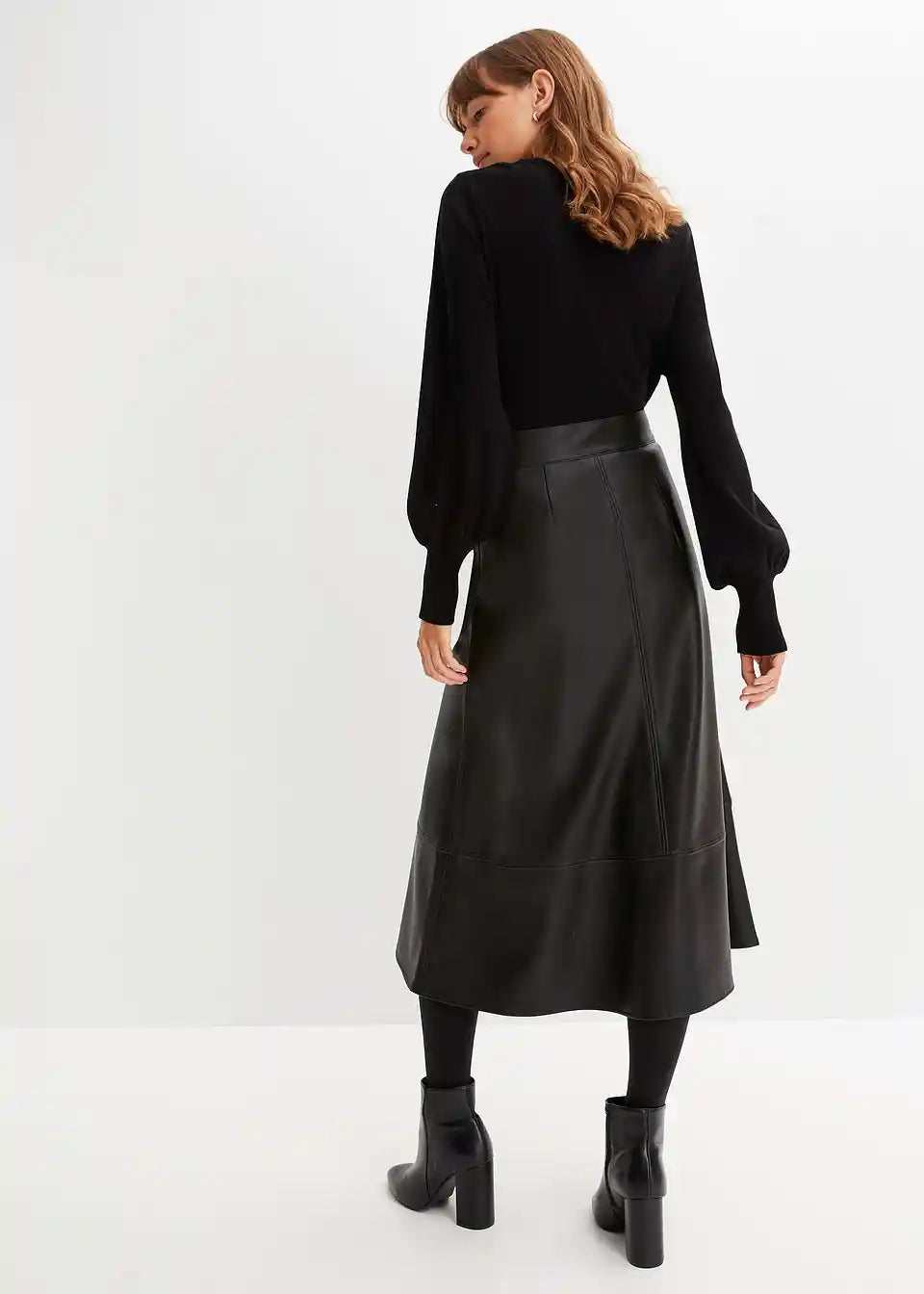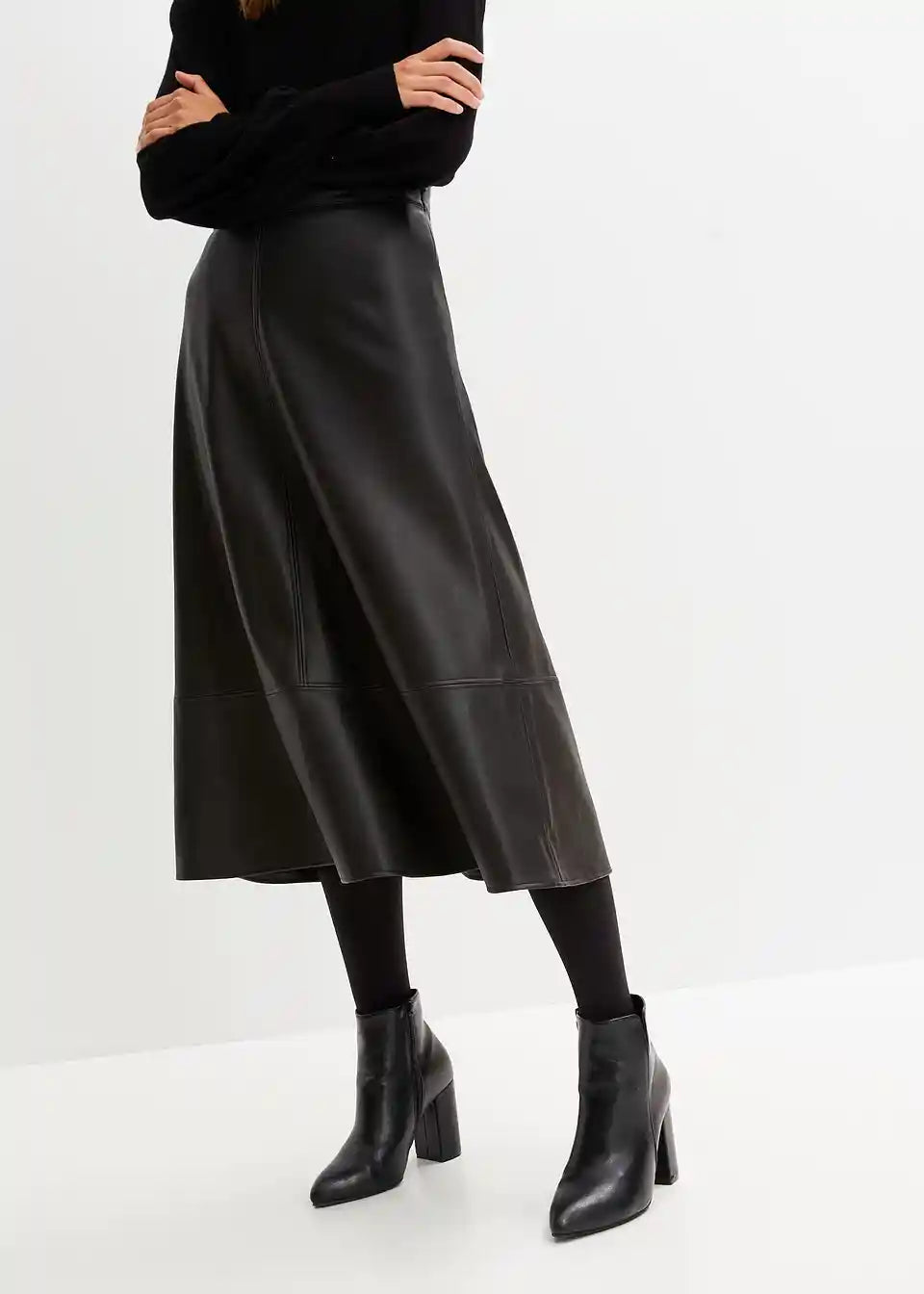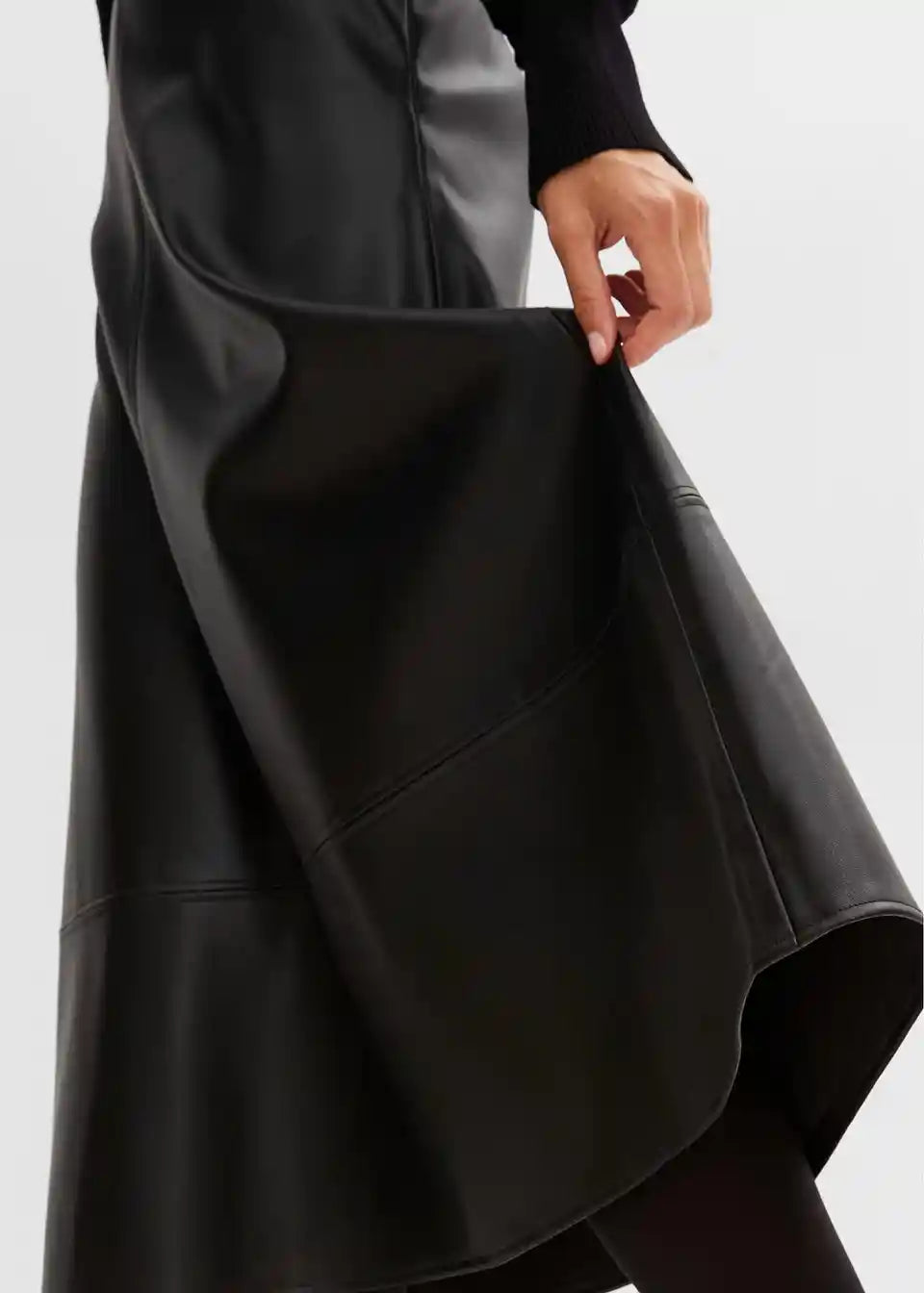 Modischer Lederimitat-Rock mit verdecktem Verschluss.