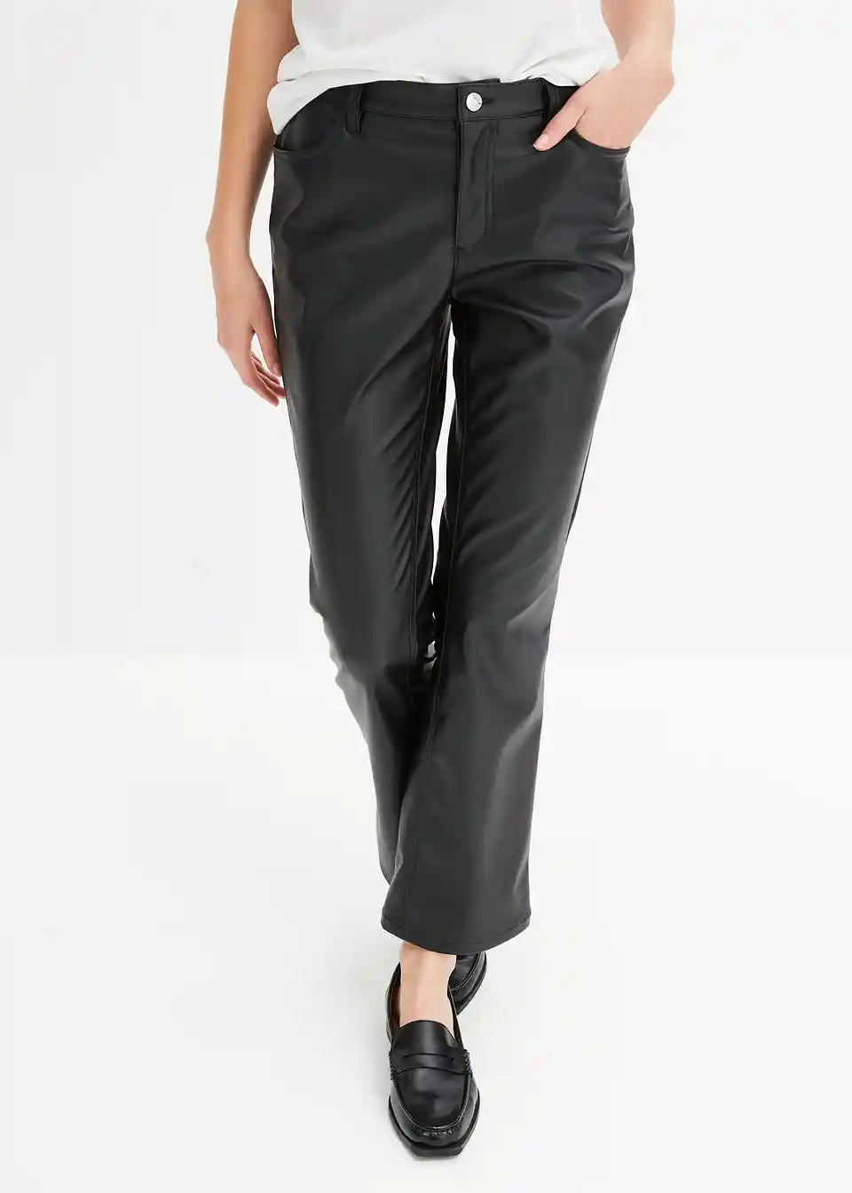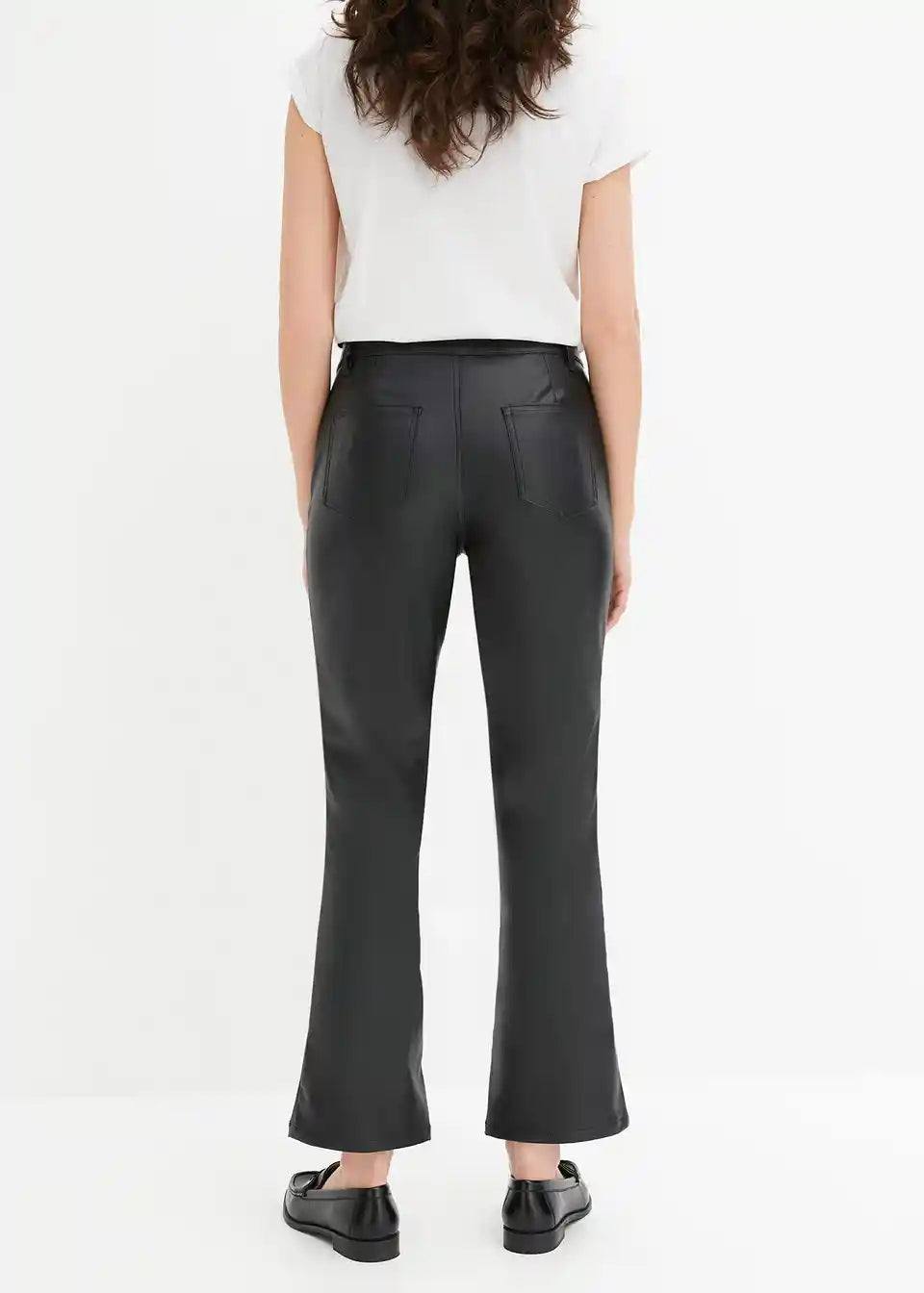 Verkürzte Lederimitat-Hose mit ausgestelltem Bein