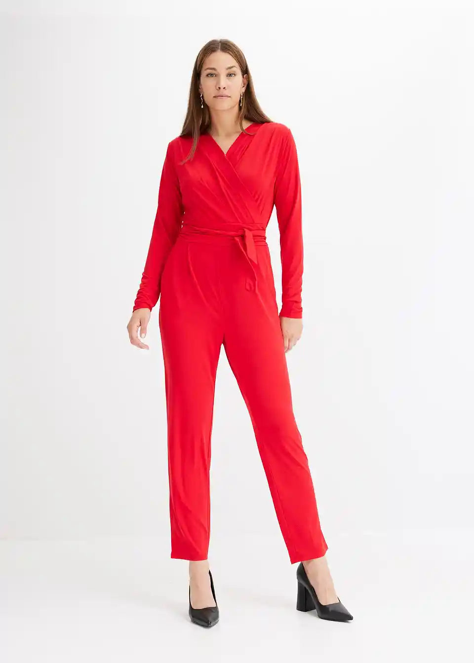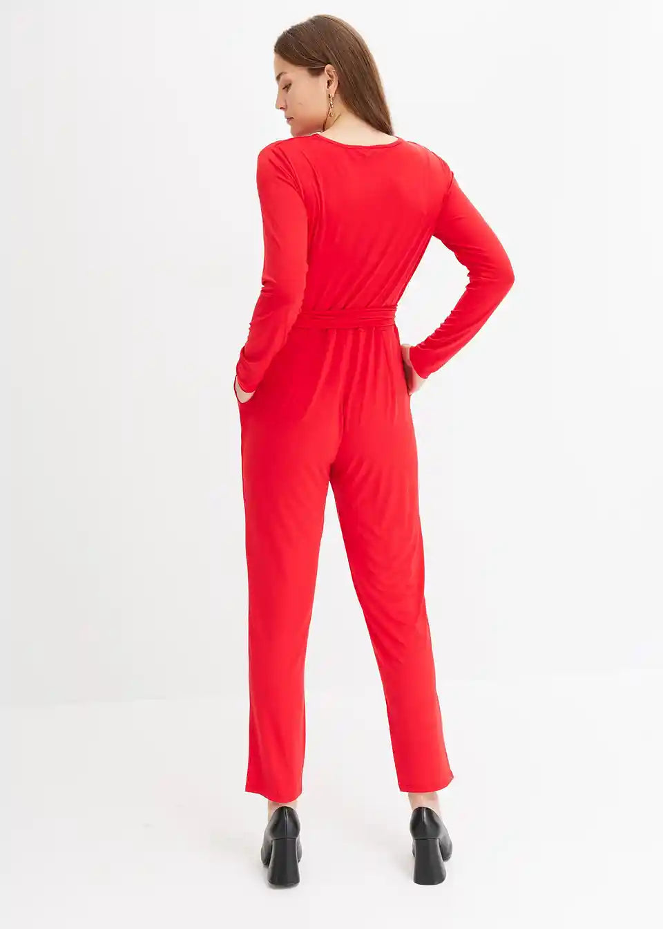 Sexy Overall mit Ausschnitt in Wickeloptik und Bindegürtel