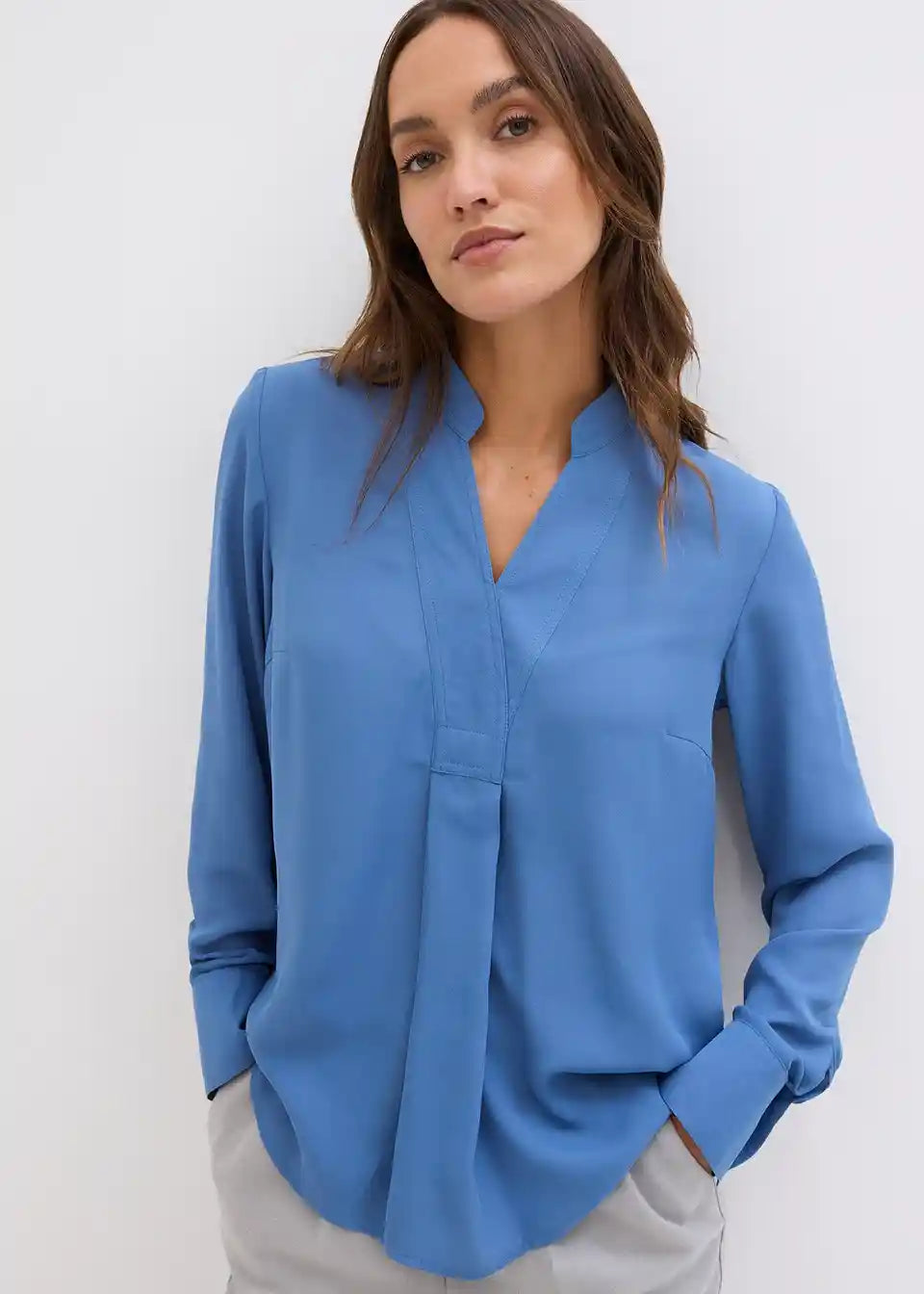 modische Chiffonbluse mit V-Ausschnitt und Seitenschlitzen