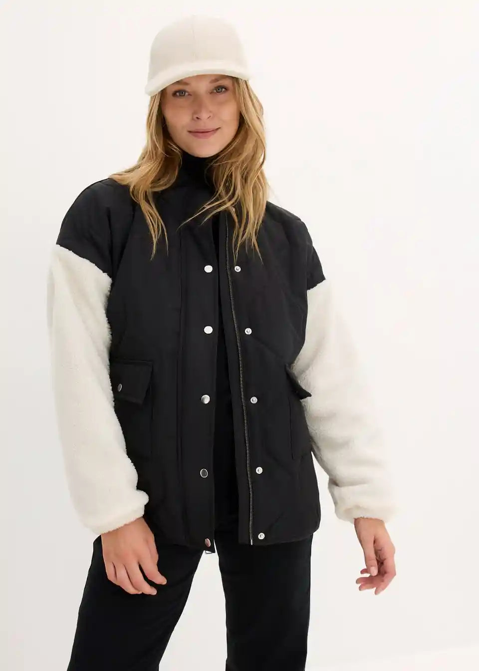 Moderne Steppjacke mit einemMaterialmix und Taschen