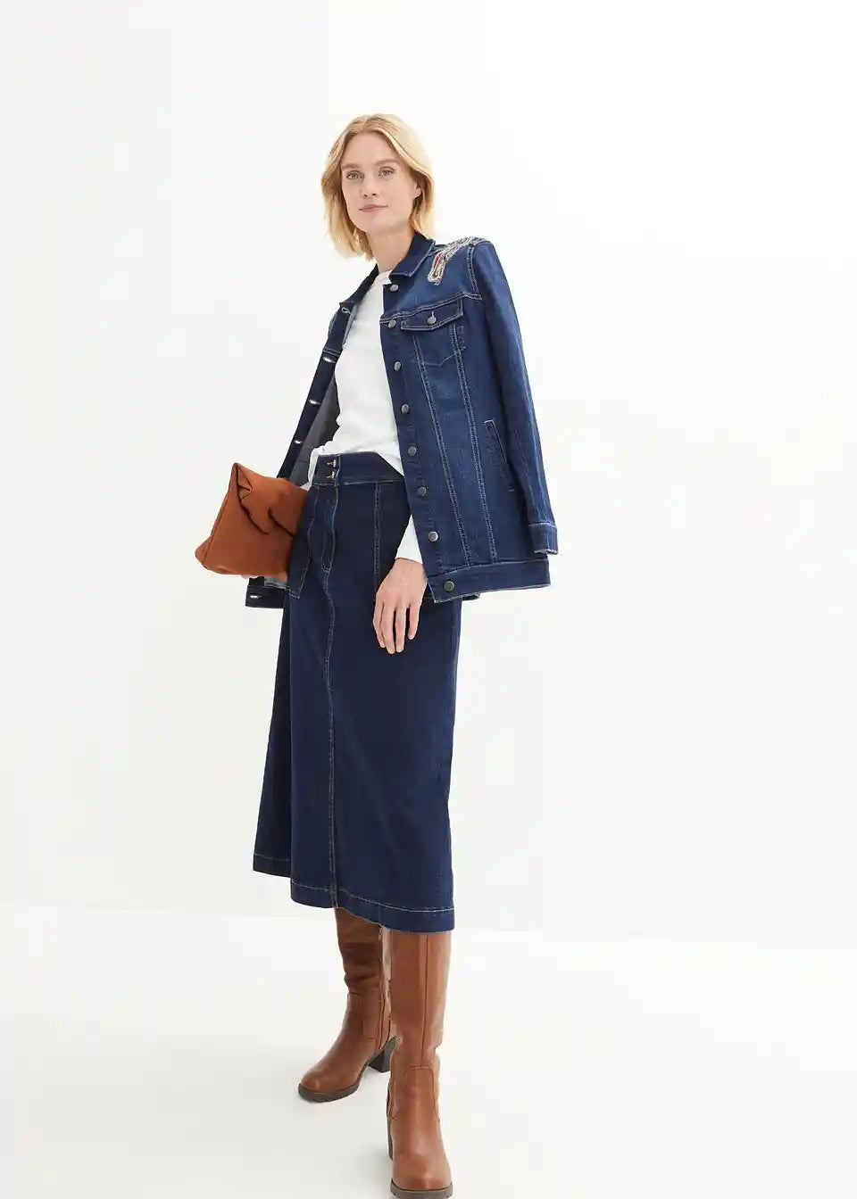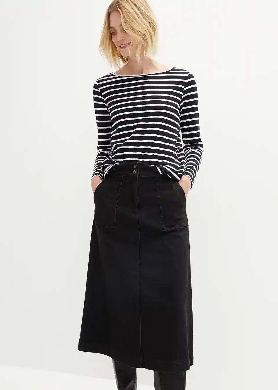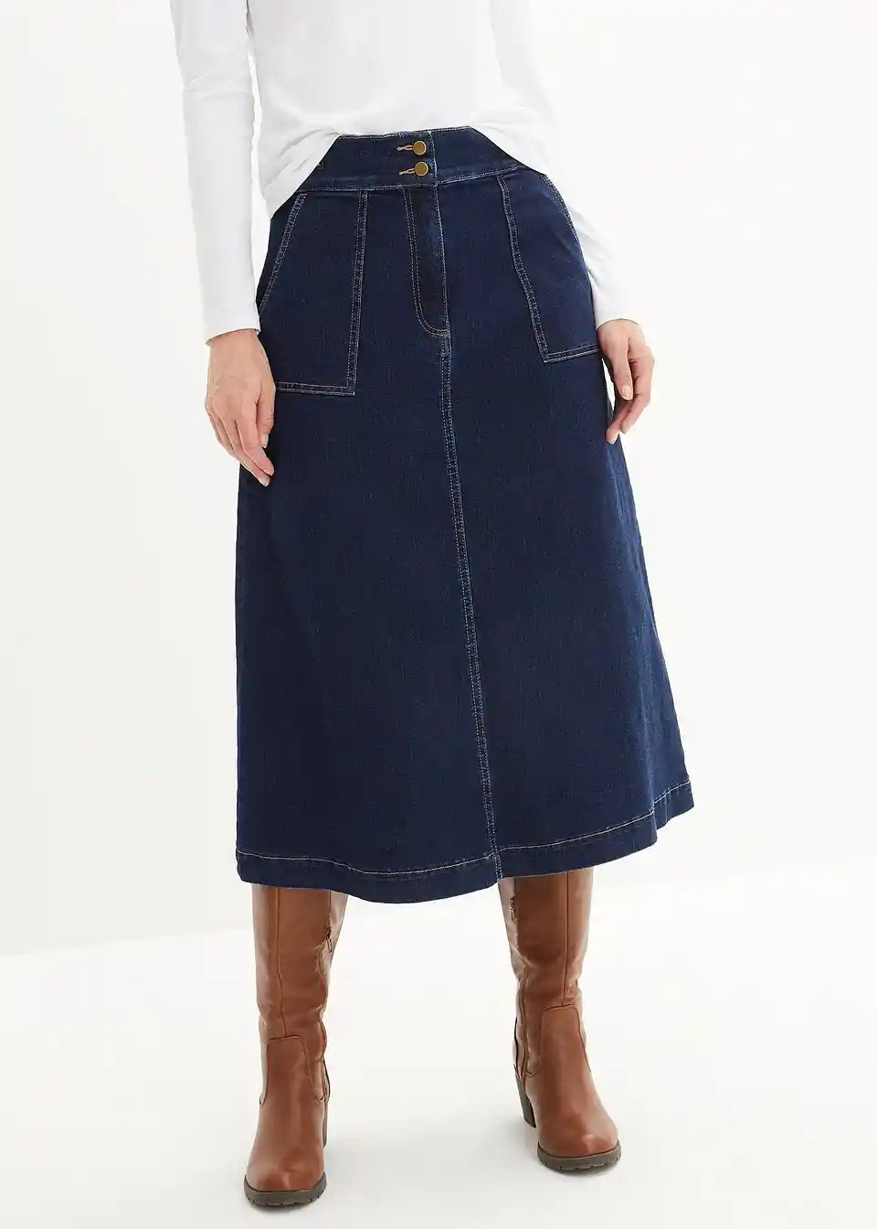 Jeansrock mit aufgesetzten Taschen, A-Linie