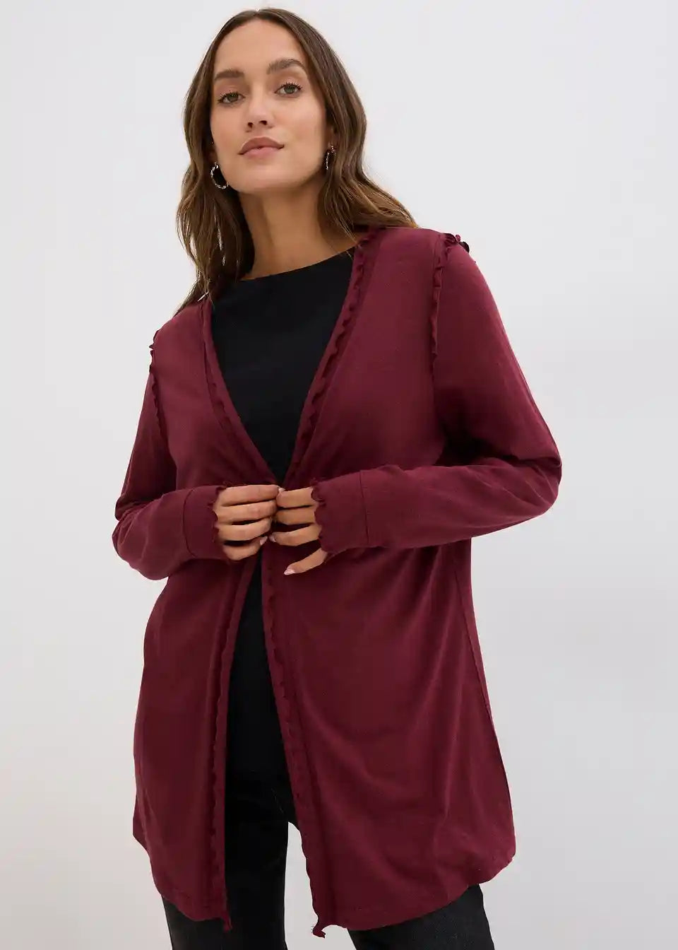 Schöne Farbe, Material etwas dünn, sieht aber mit den Rüschen ganz hübsch aus
