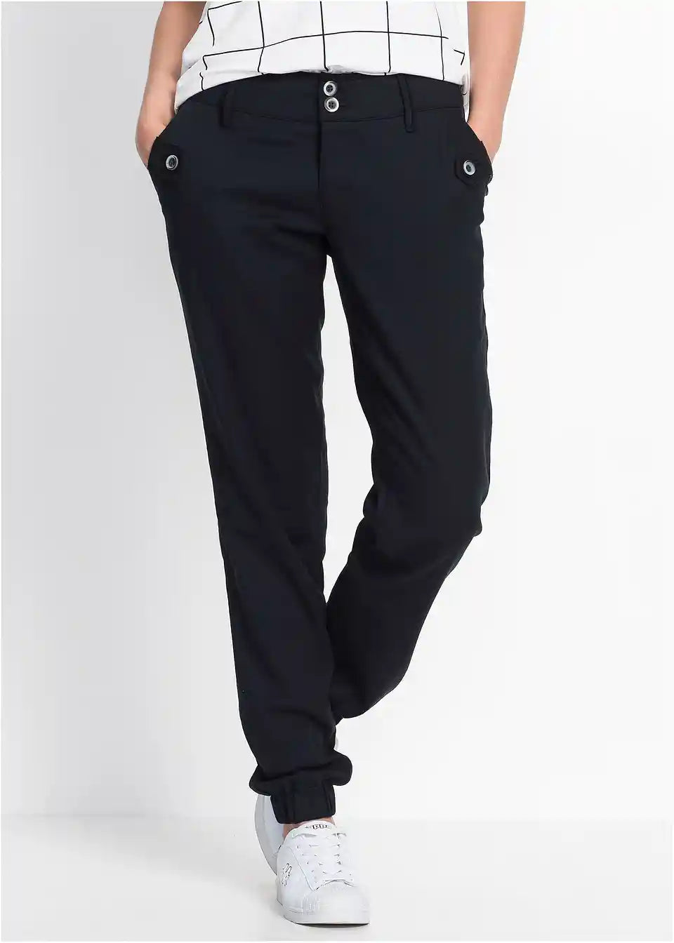 Mit dieser Hose bringen Sie Schwung in Ihrem Kleiderschrank. Für das unkonventionelle Design sorgen die stylishen Knopfapplikationen an den Vordertaschen sowie die aufgenähten Details an den hinteren Taschen und am Bund. Der schmale Schnitt am Bein betont die Figur und liegt voll im Trend. Die Hose kann in der Freizeit zu Shirt und Pulli ebenso getragen werden wie mit Bluse oder Blazer im Büro.