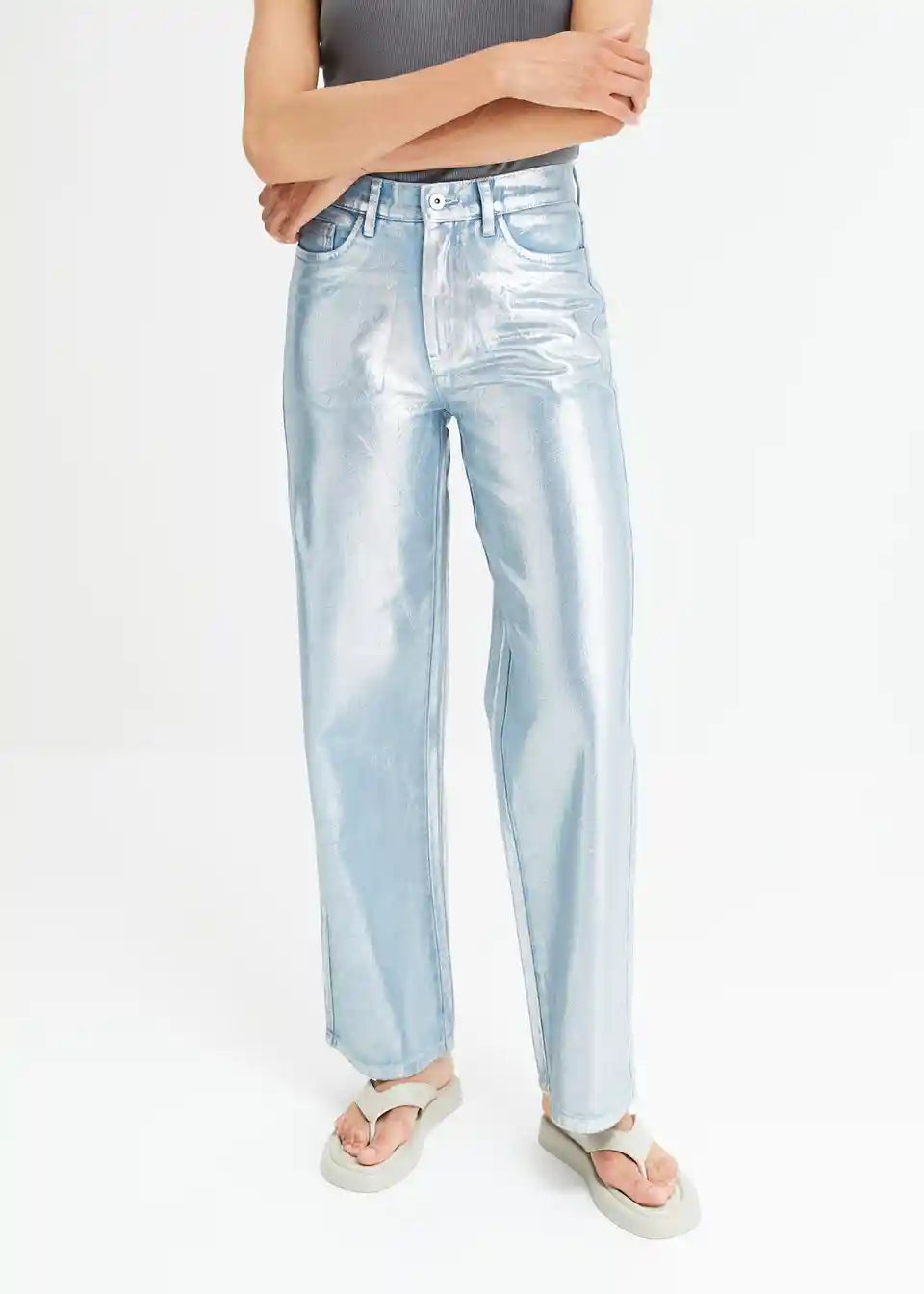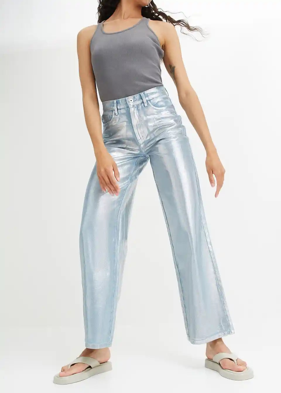Wide-Leg-Jeans, mit Glanzbeschichtung