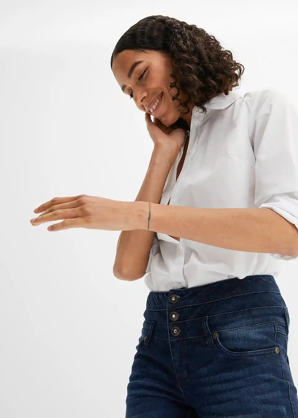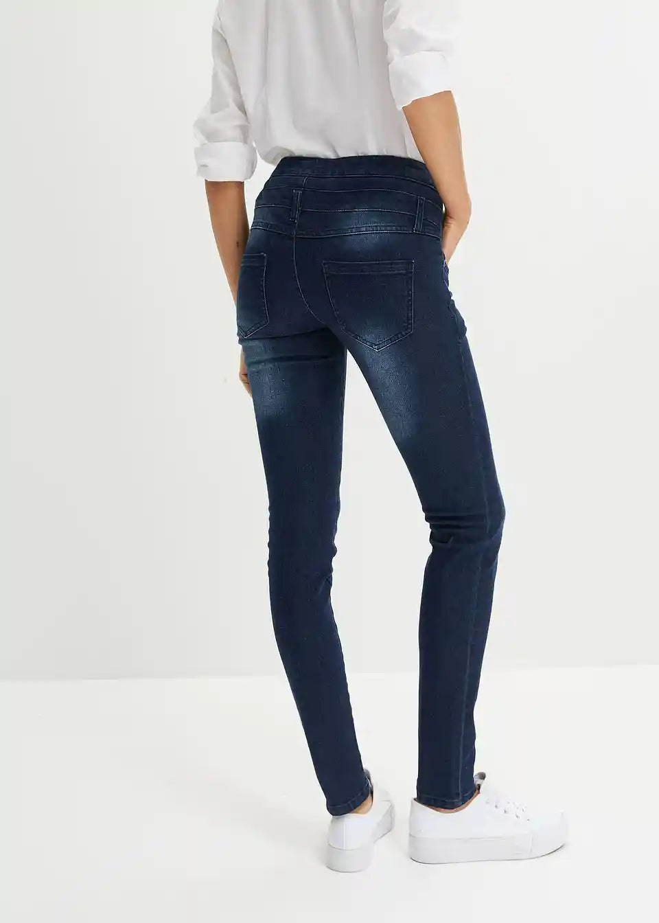Schmal geschnitten und in angesagter Used-Look-Waschung ist diese Jeans ein absoluter Fashion-Hit. Die stylishe Skinny Jeans High Waist wird mit Knöpfen geschlossen und sitzt dank Elasthan-Anteil super auf Figur.Der hohe Bund mit Ziernähten und die stilechten Nieten an den vorderen Eingrifftaschen sind die starken Details, die Trendsetterinnen an diesem topmodischen Modell begeistern.