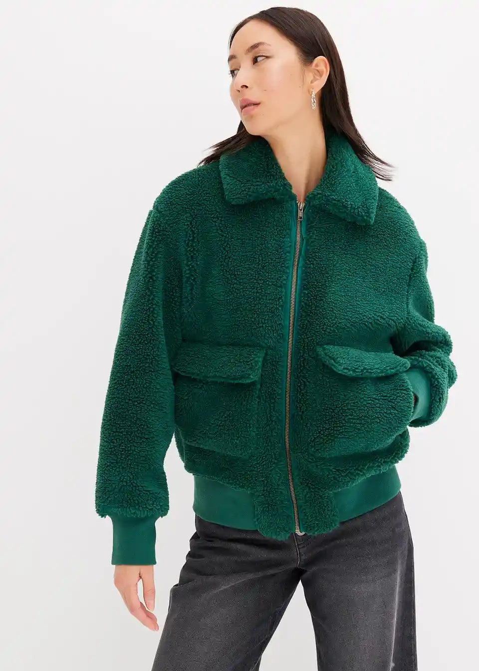 Lässige Teddyjacke mit aufgesetzten Taschen