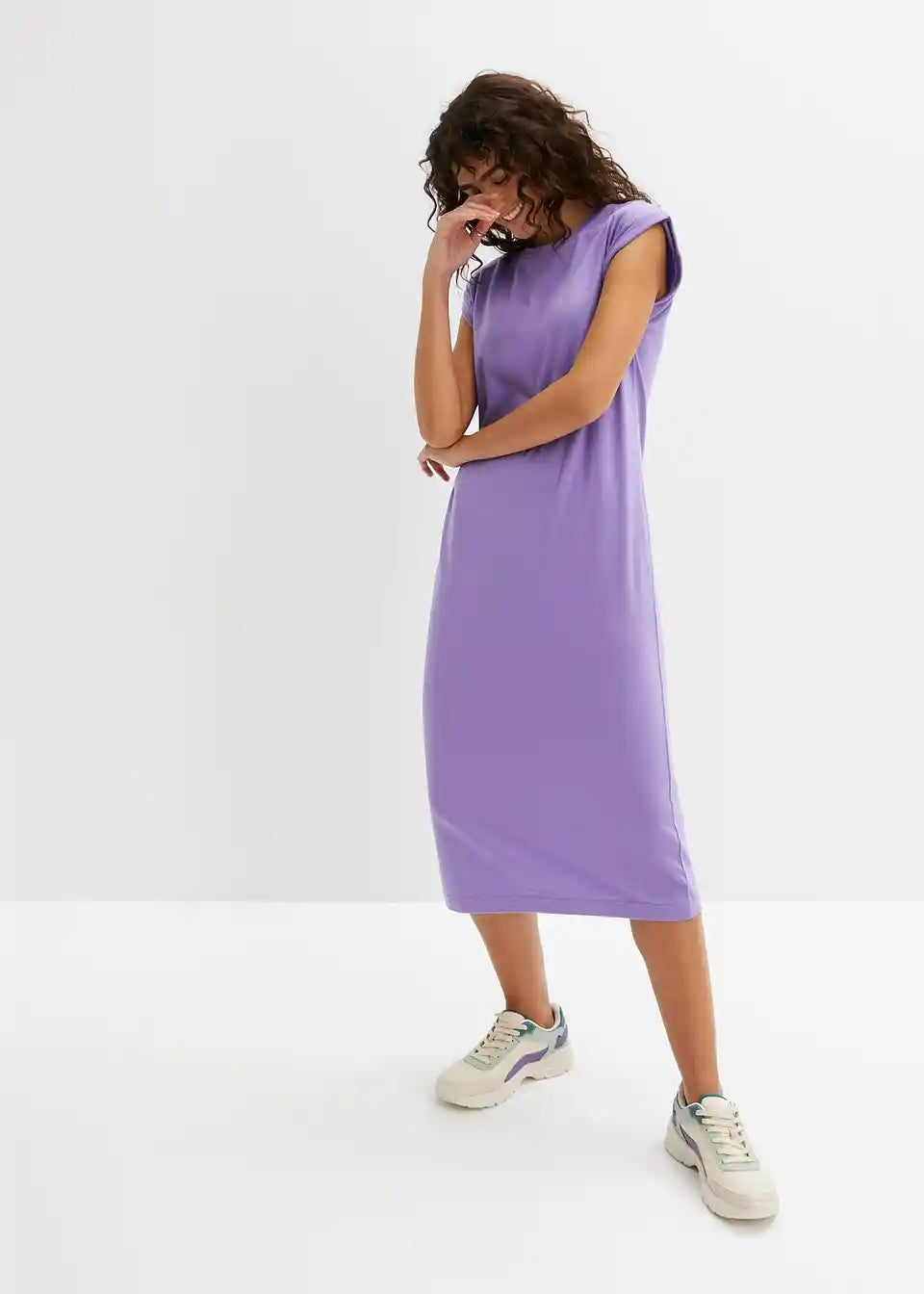 Lässiges Shirtkleid mit Rundhalsausschnitt und Schulterpolstern