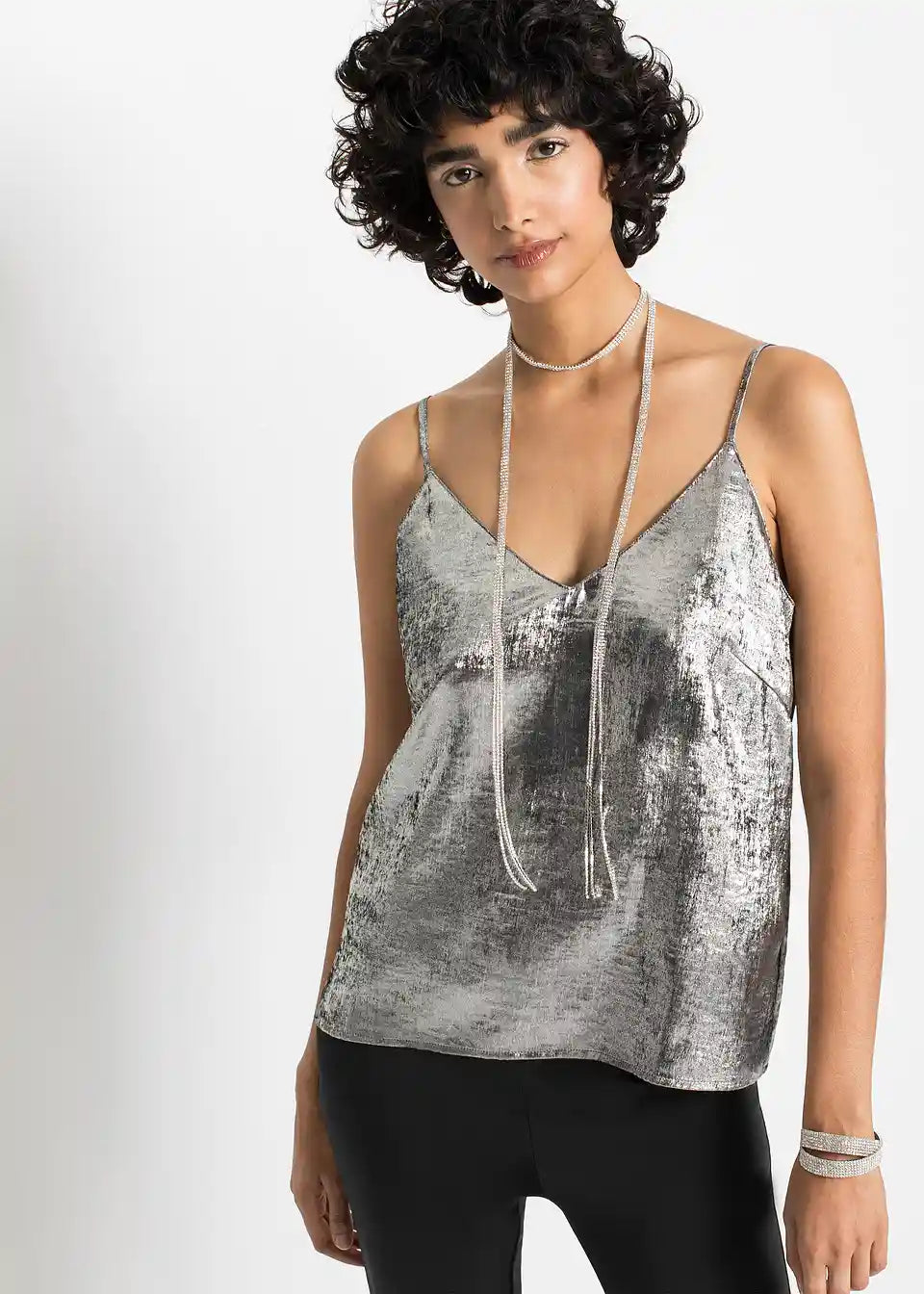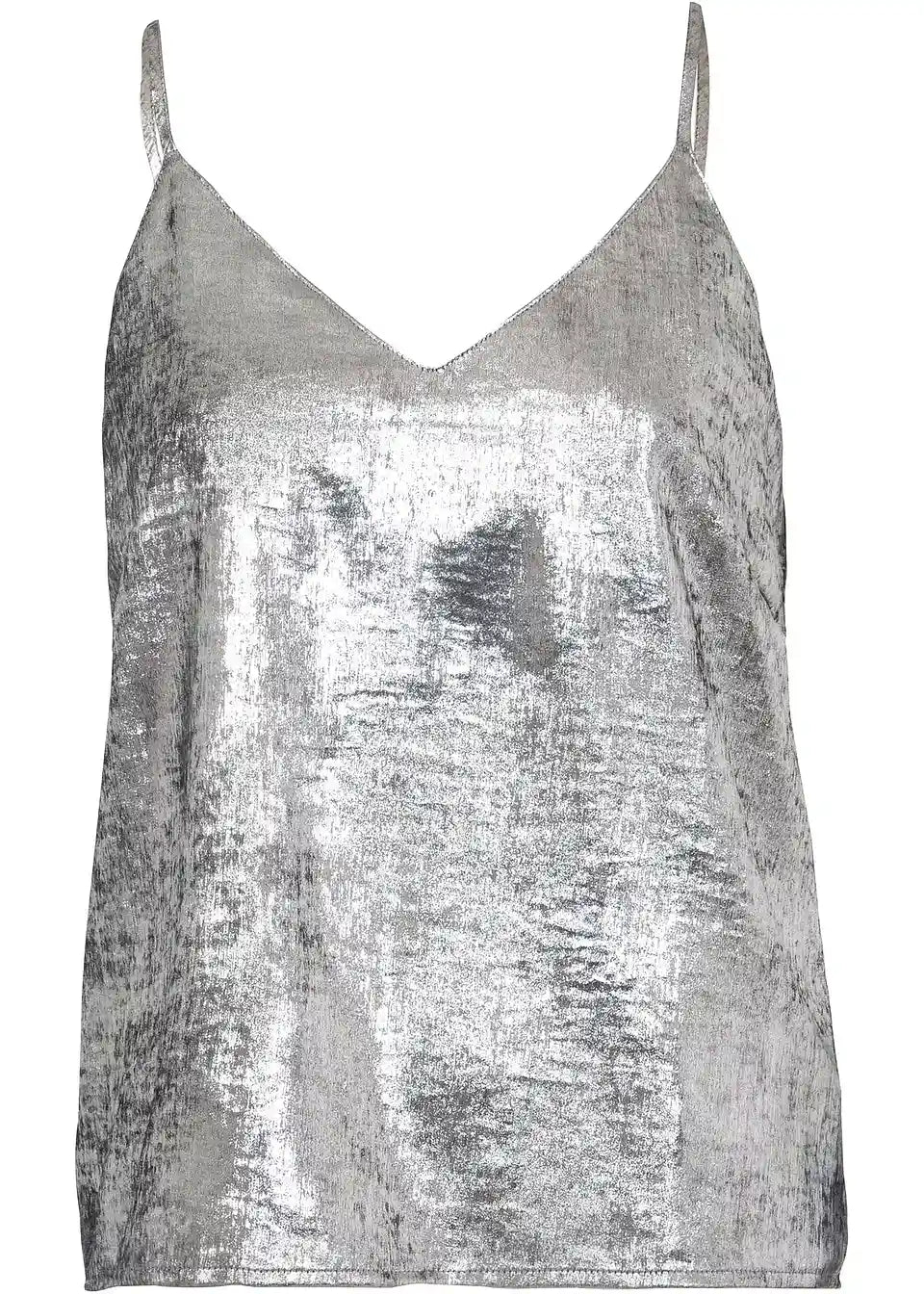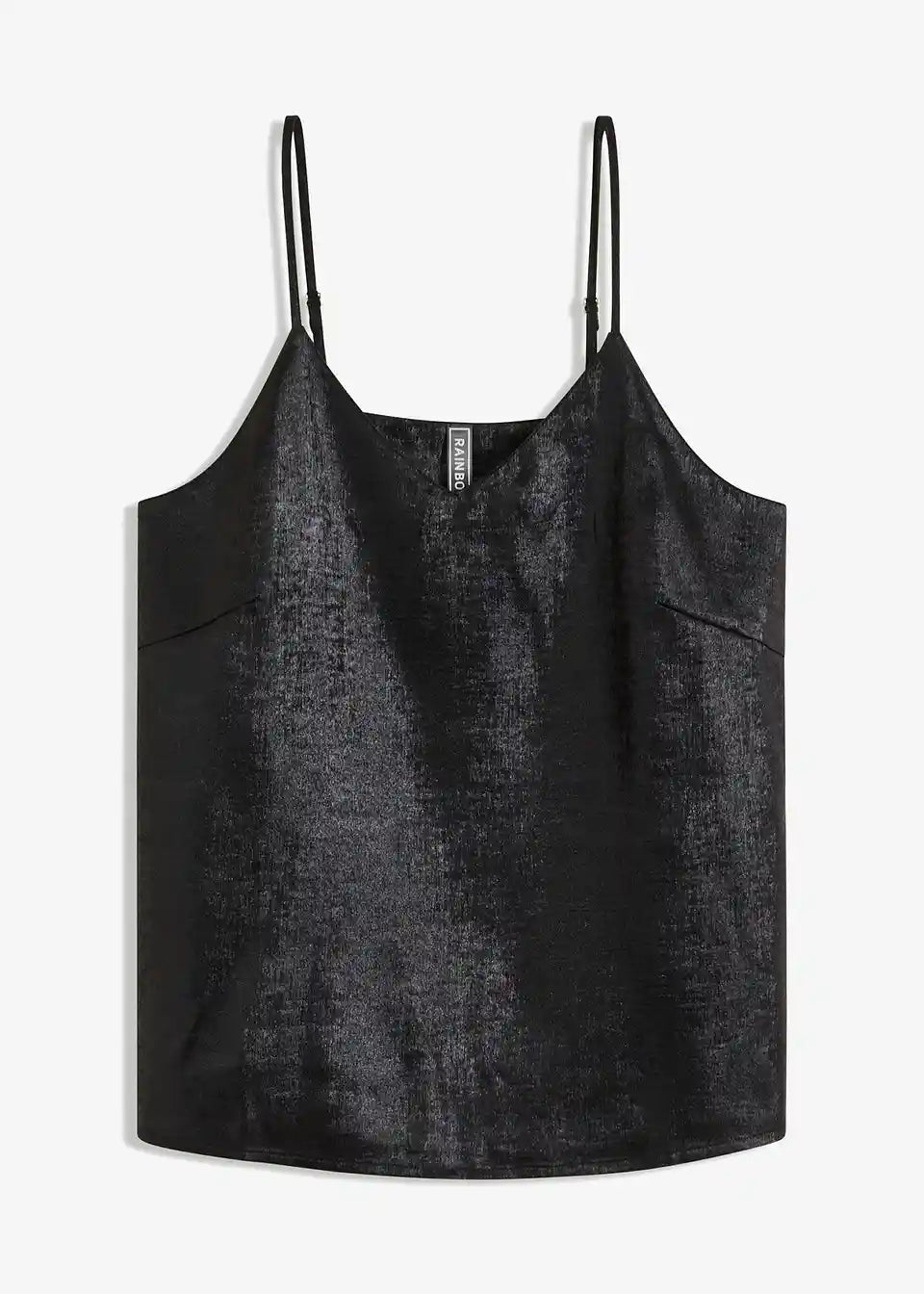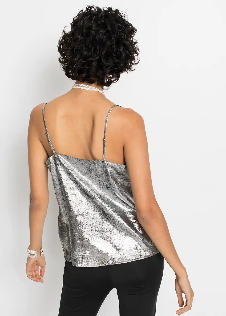 Glanzbeschichtetes Top mit V-Ausschnitt