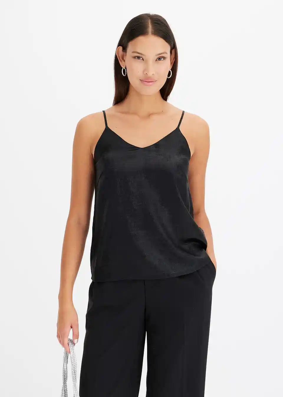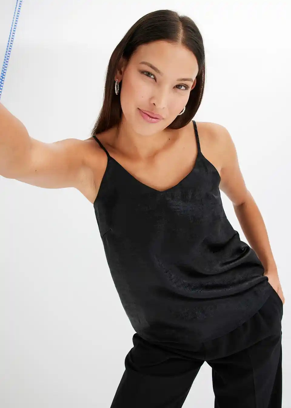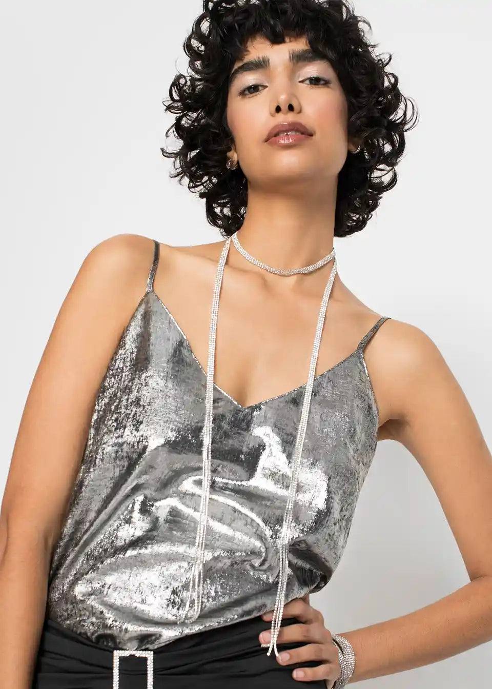 Glanzbeschichtetes Top mit V-Ausschnitt