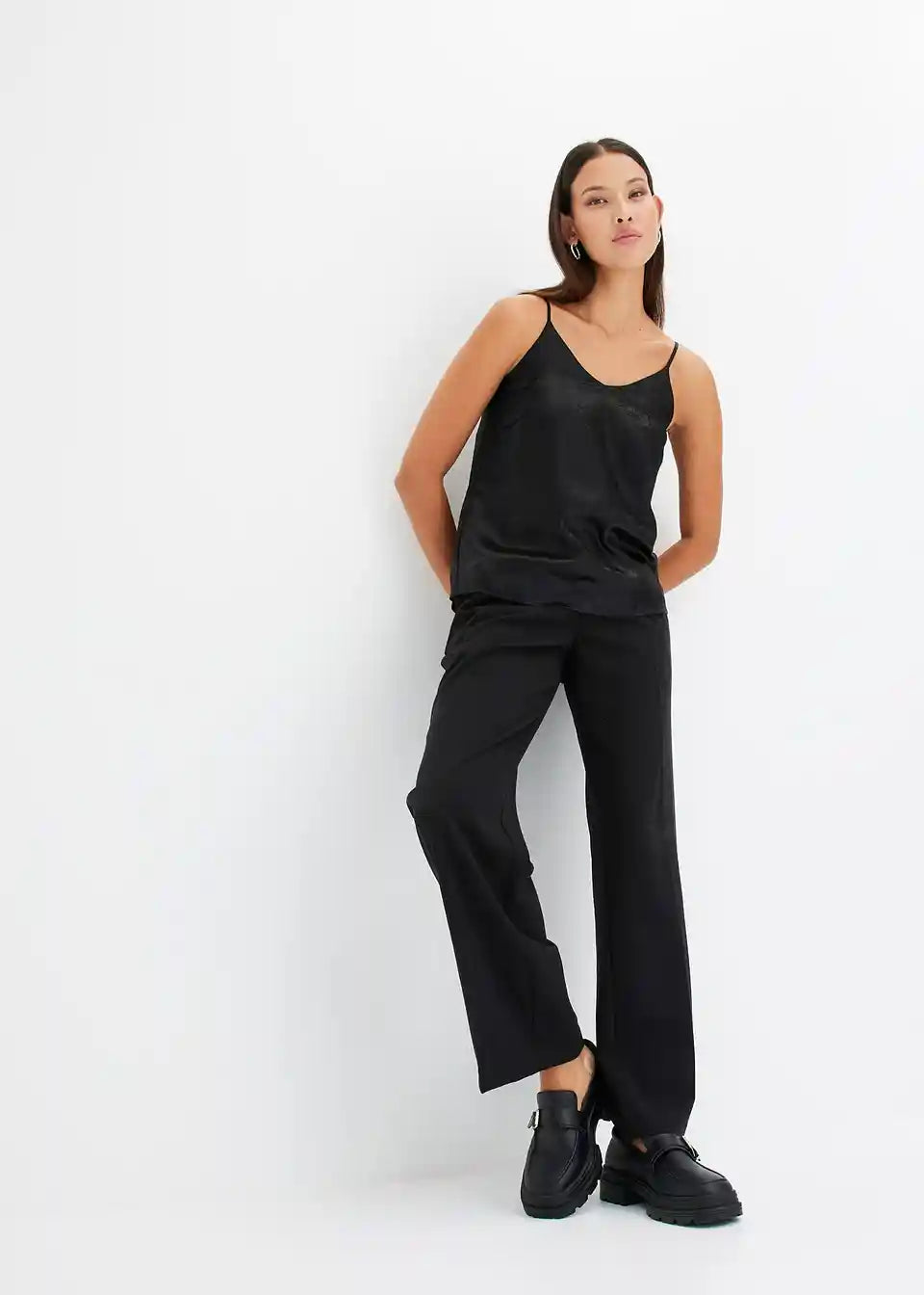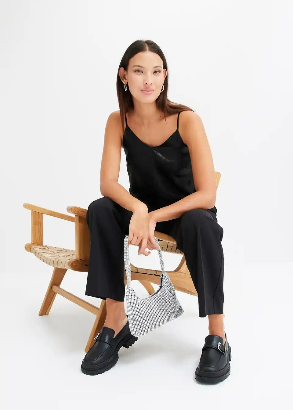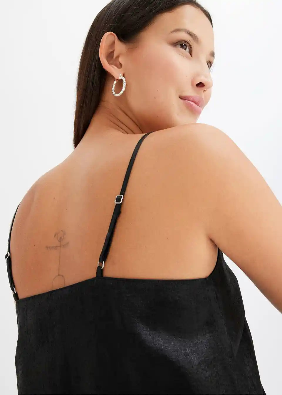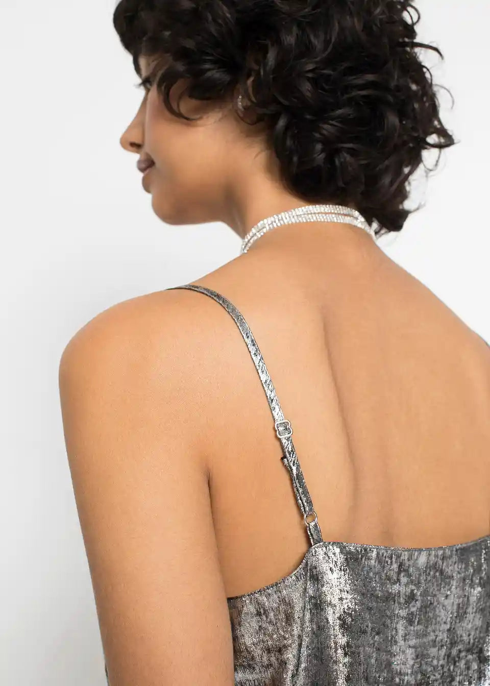 Glanzbeschichtetes Top mit V-Ausschnitt