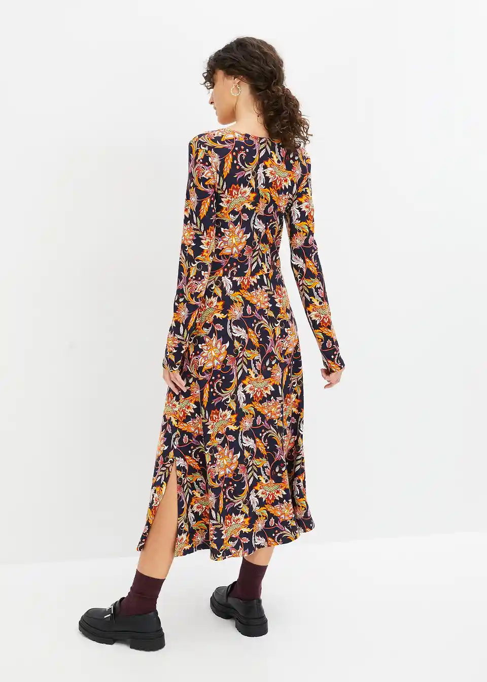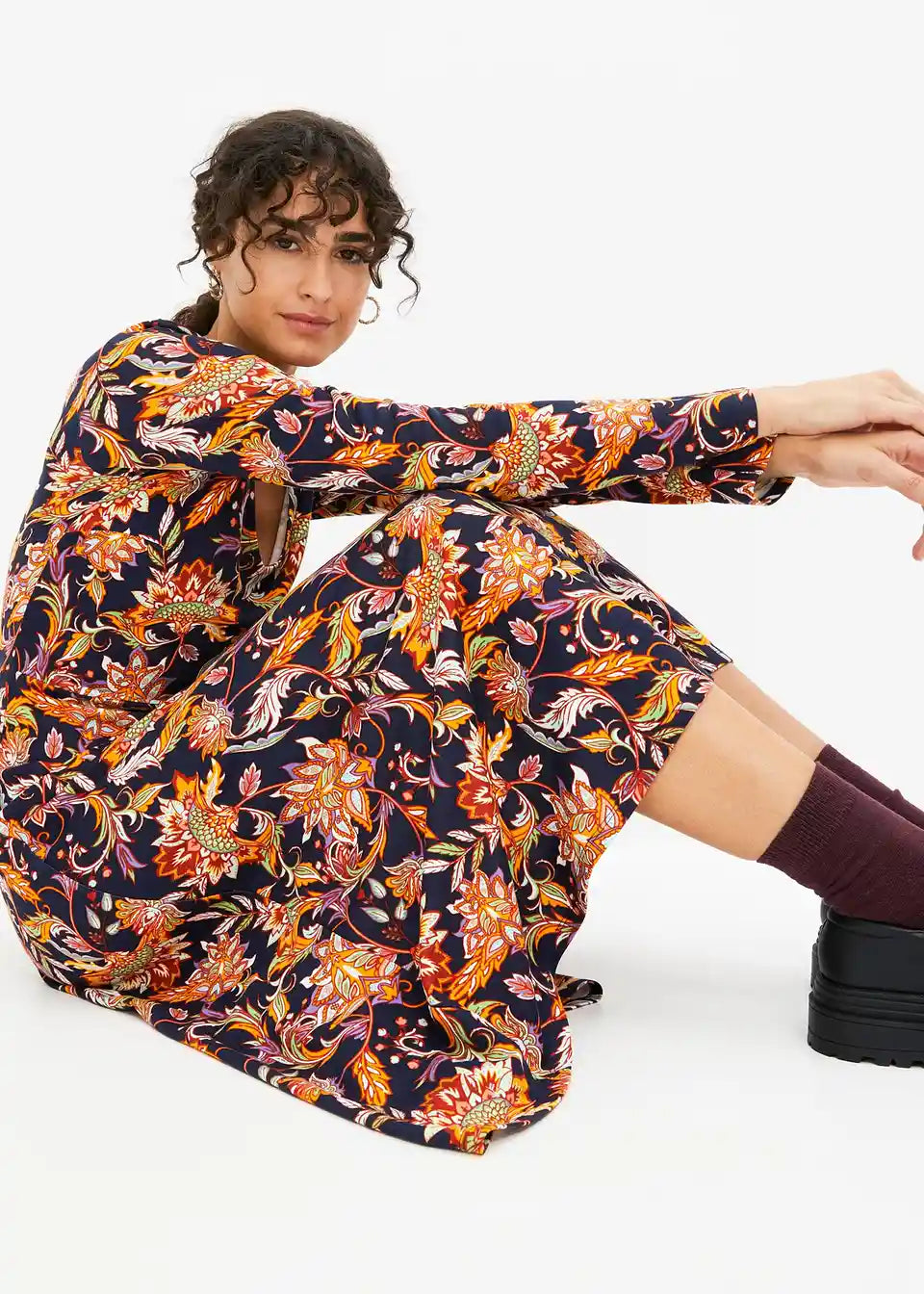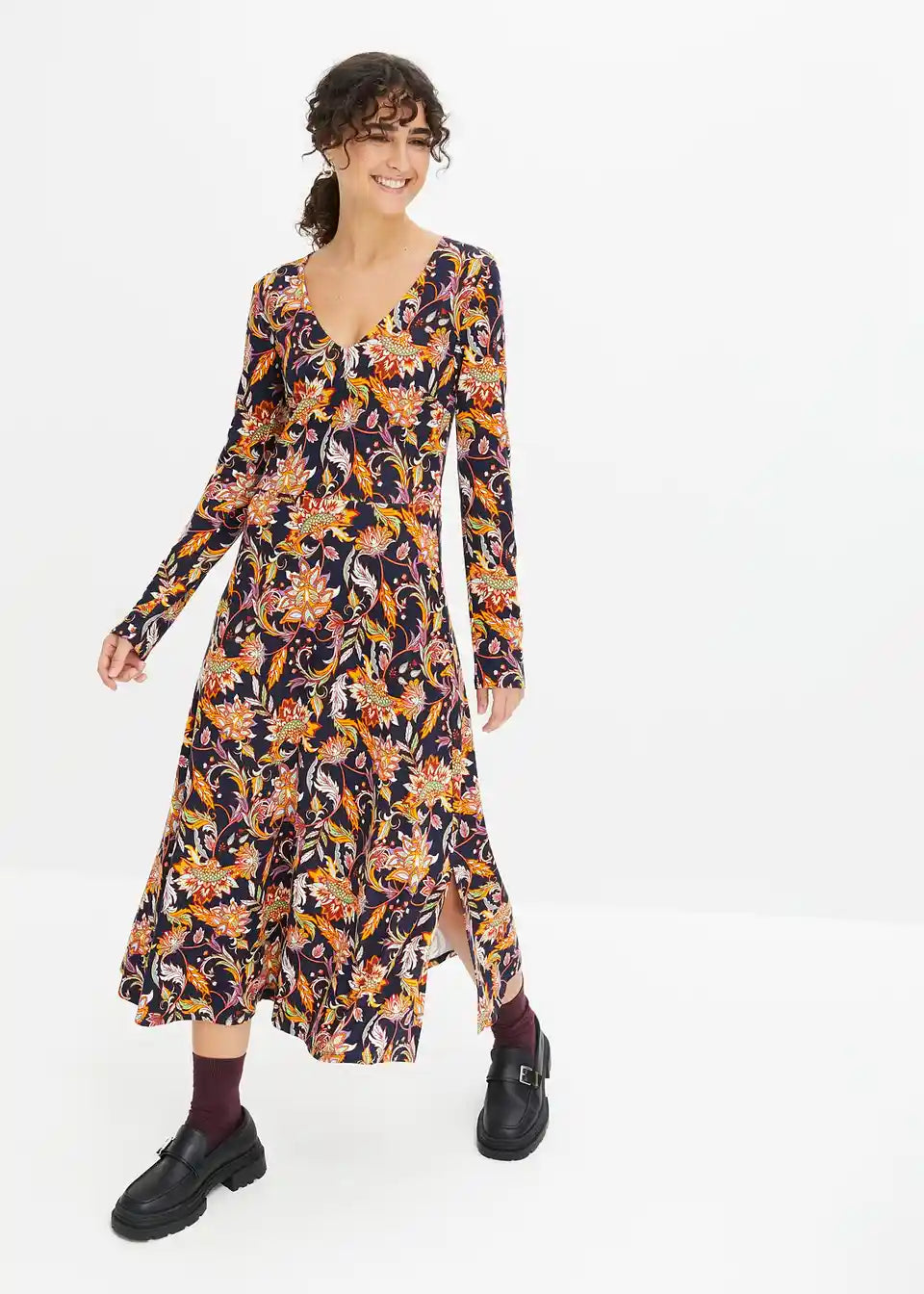 Midikleid aus Punto di Roma mit Blumendruck und V-Ausschnitt