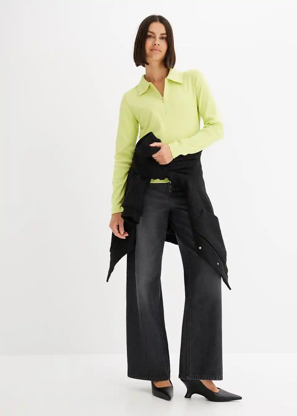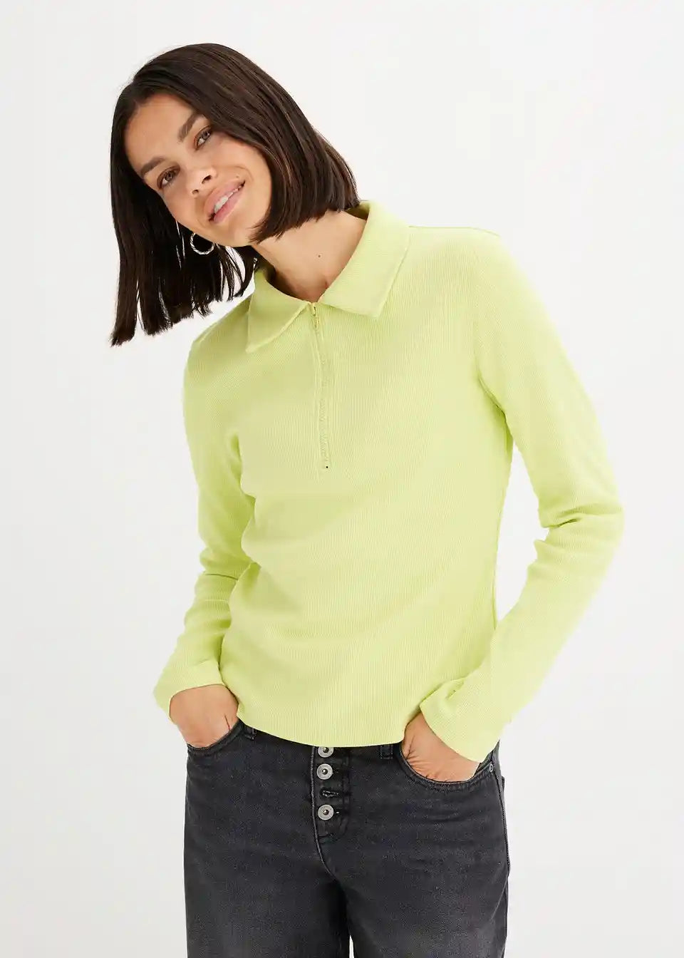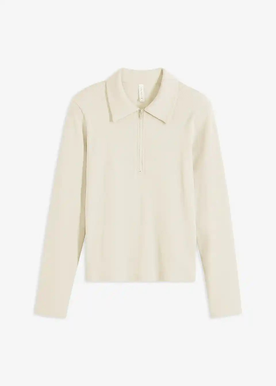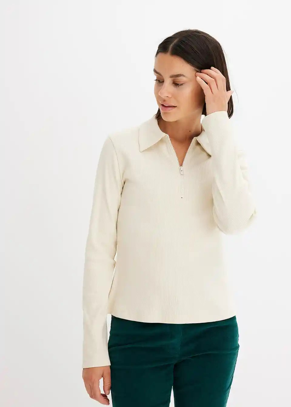 Rippshirt aus Biobaumwolle mit Reißverschluss