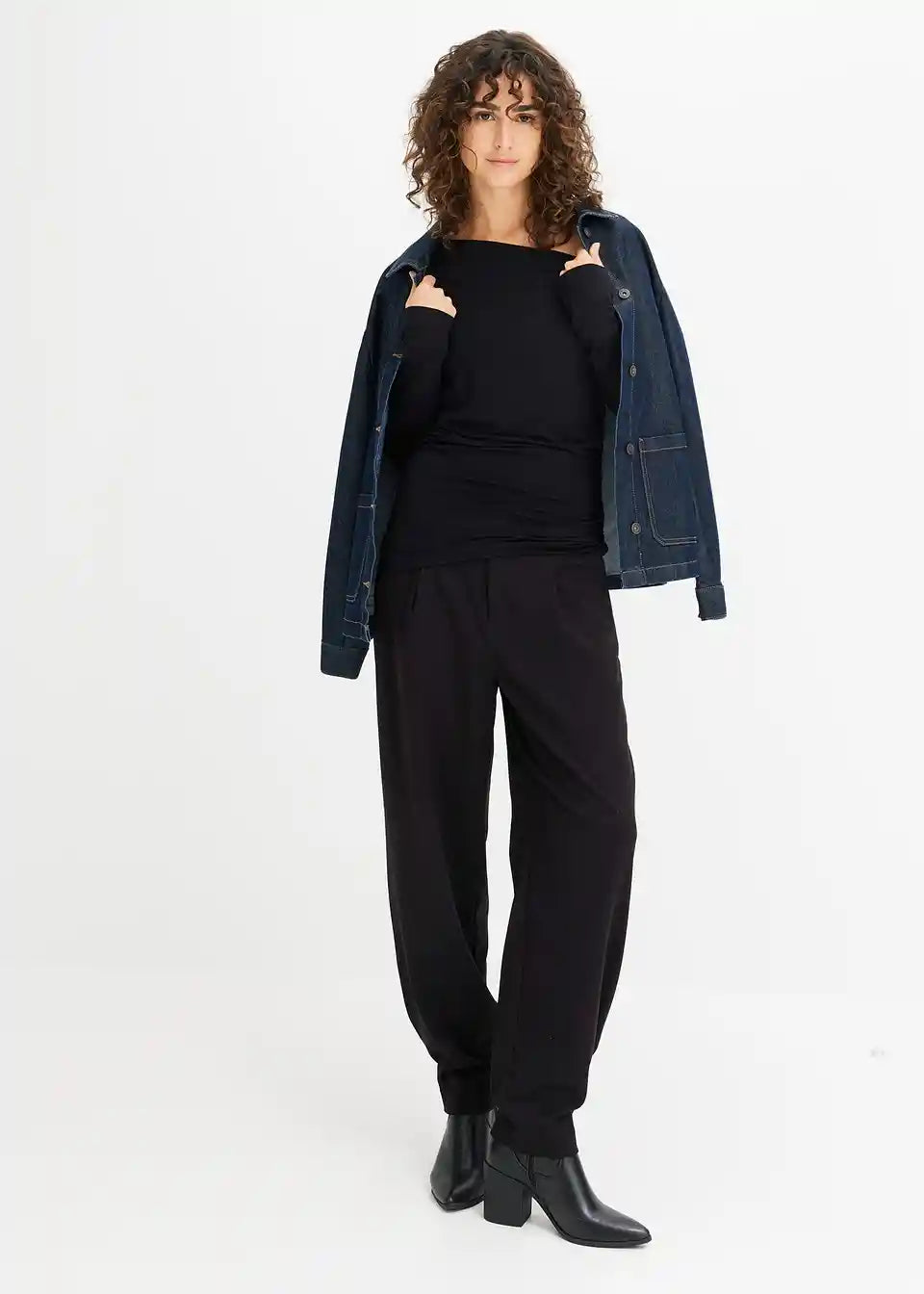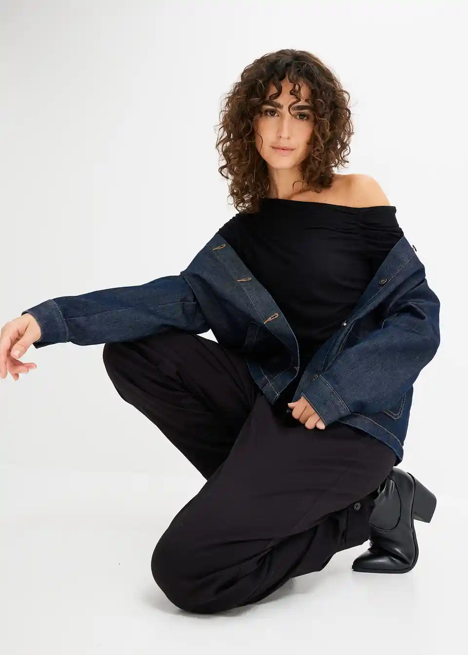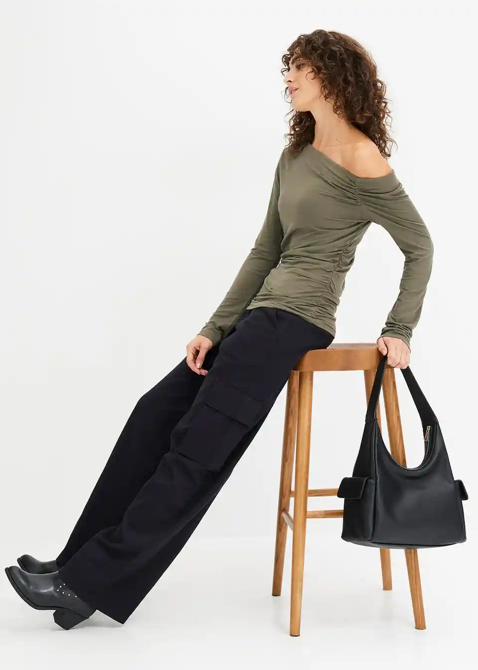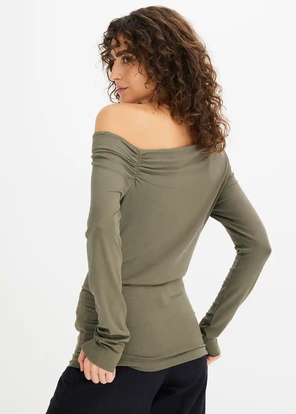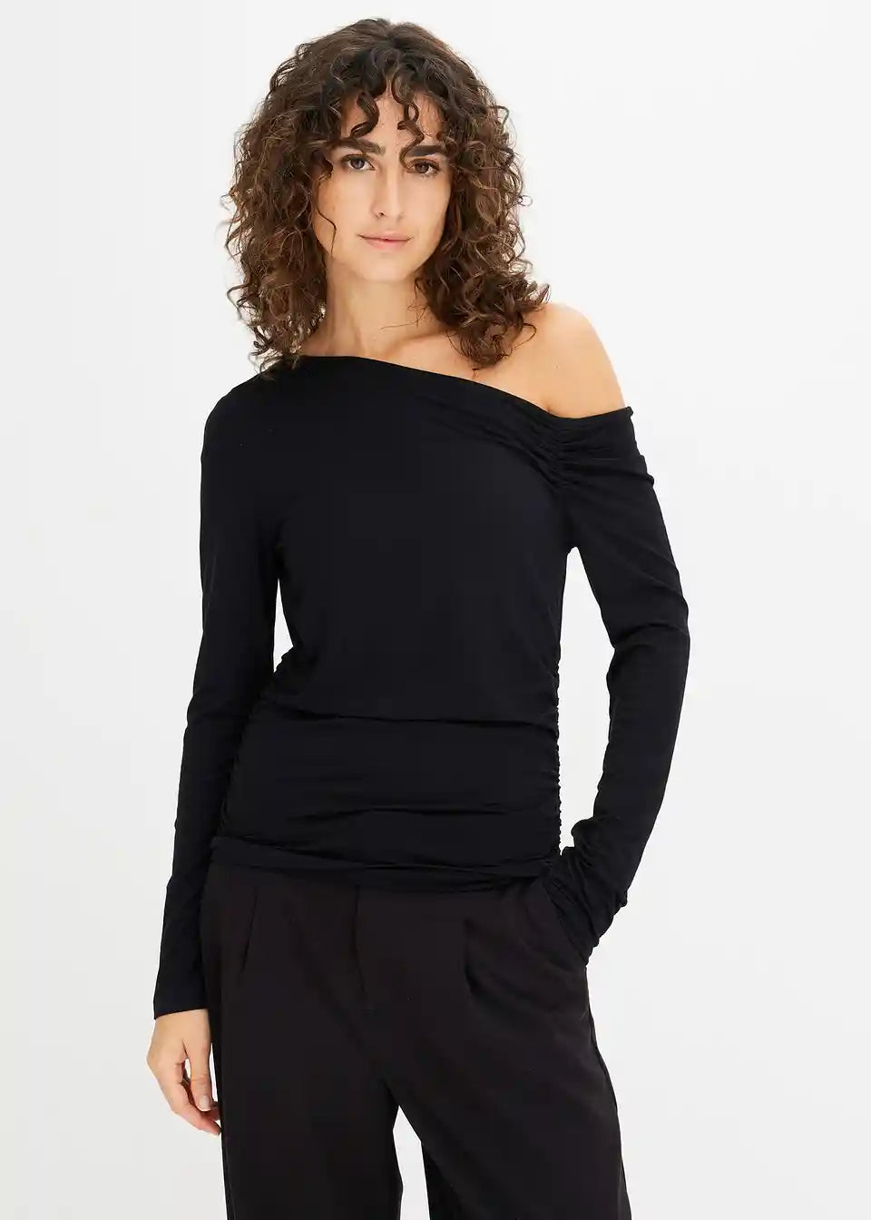 Shirt mit asymmetrischem Ausschnitt und Raffungen