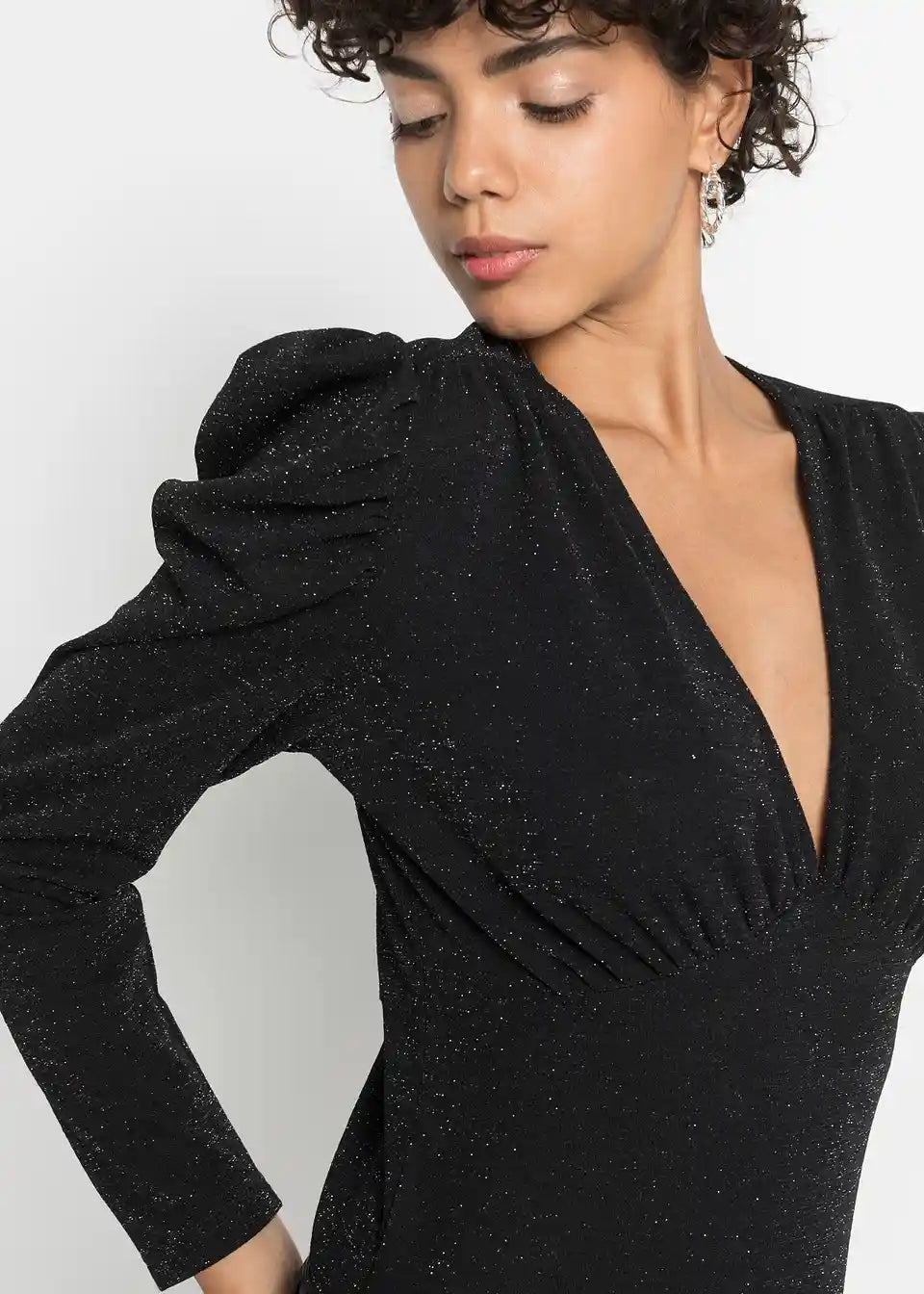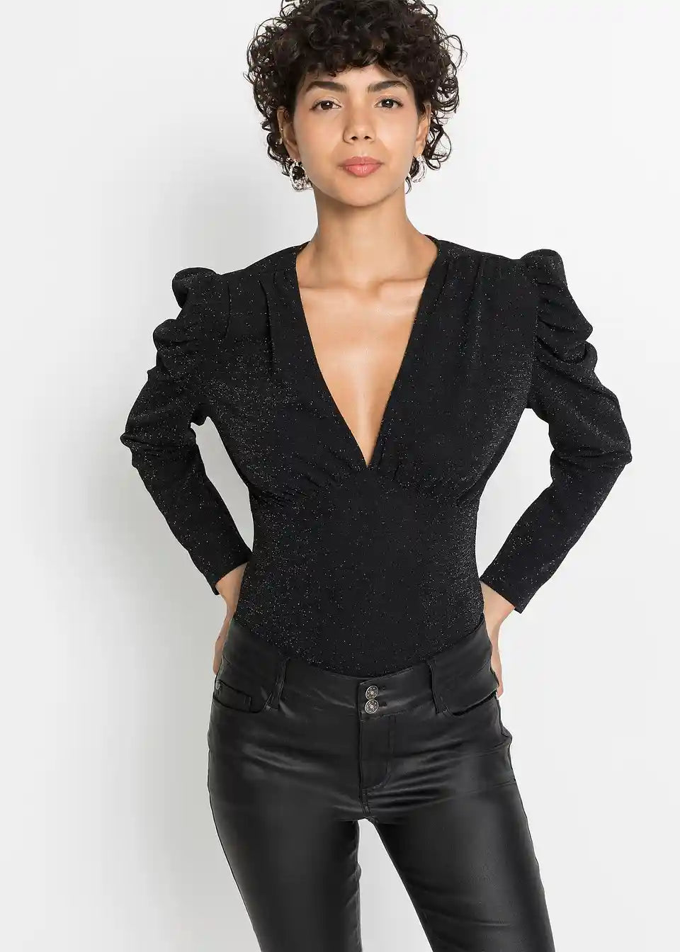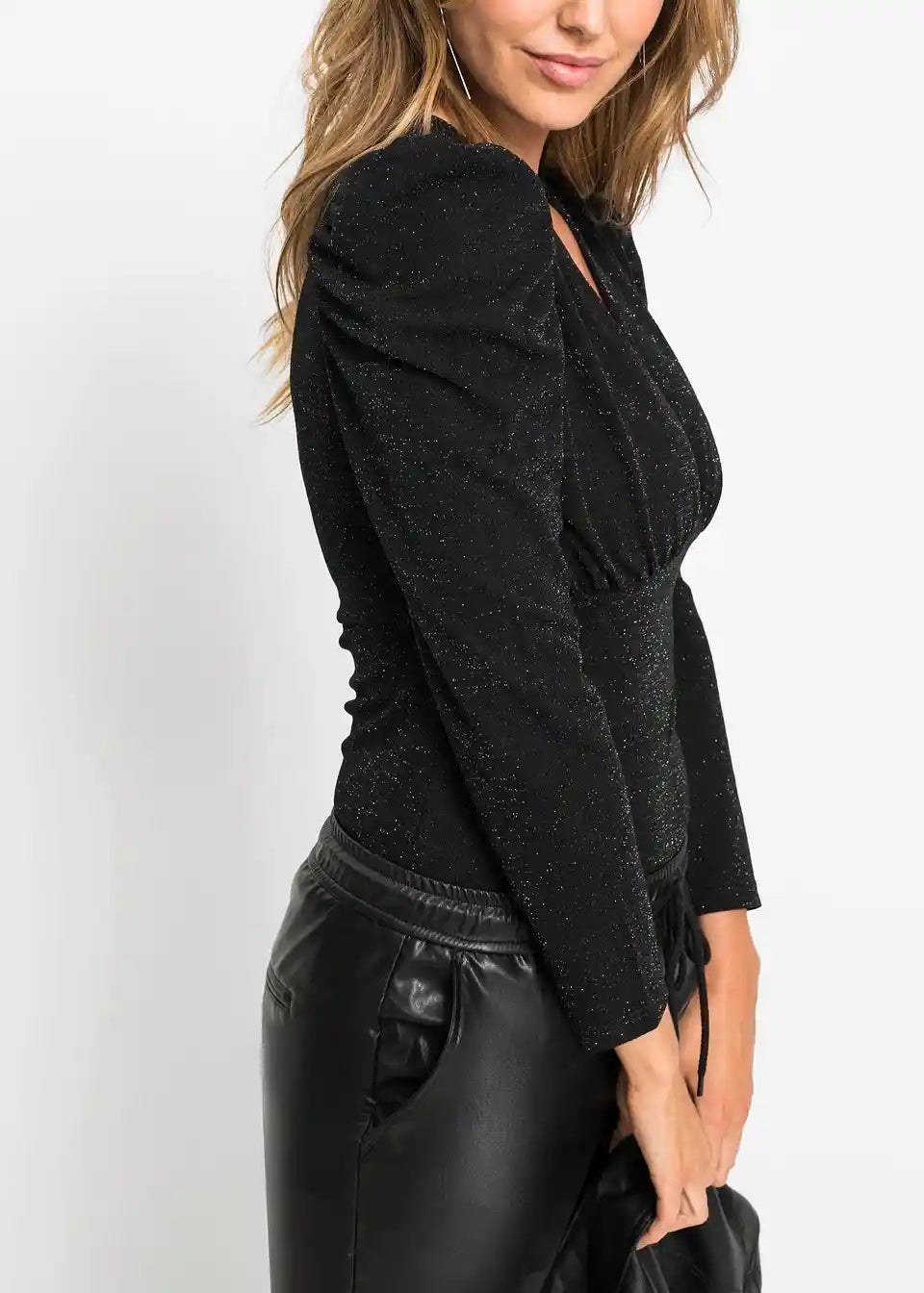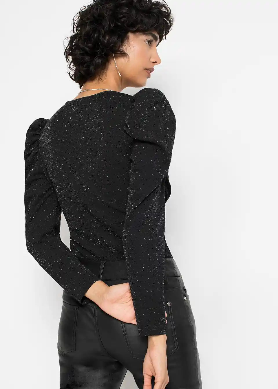 Modischer Glitzer-Body mit Puffärmeln - ein Hingucker für die Feiertag