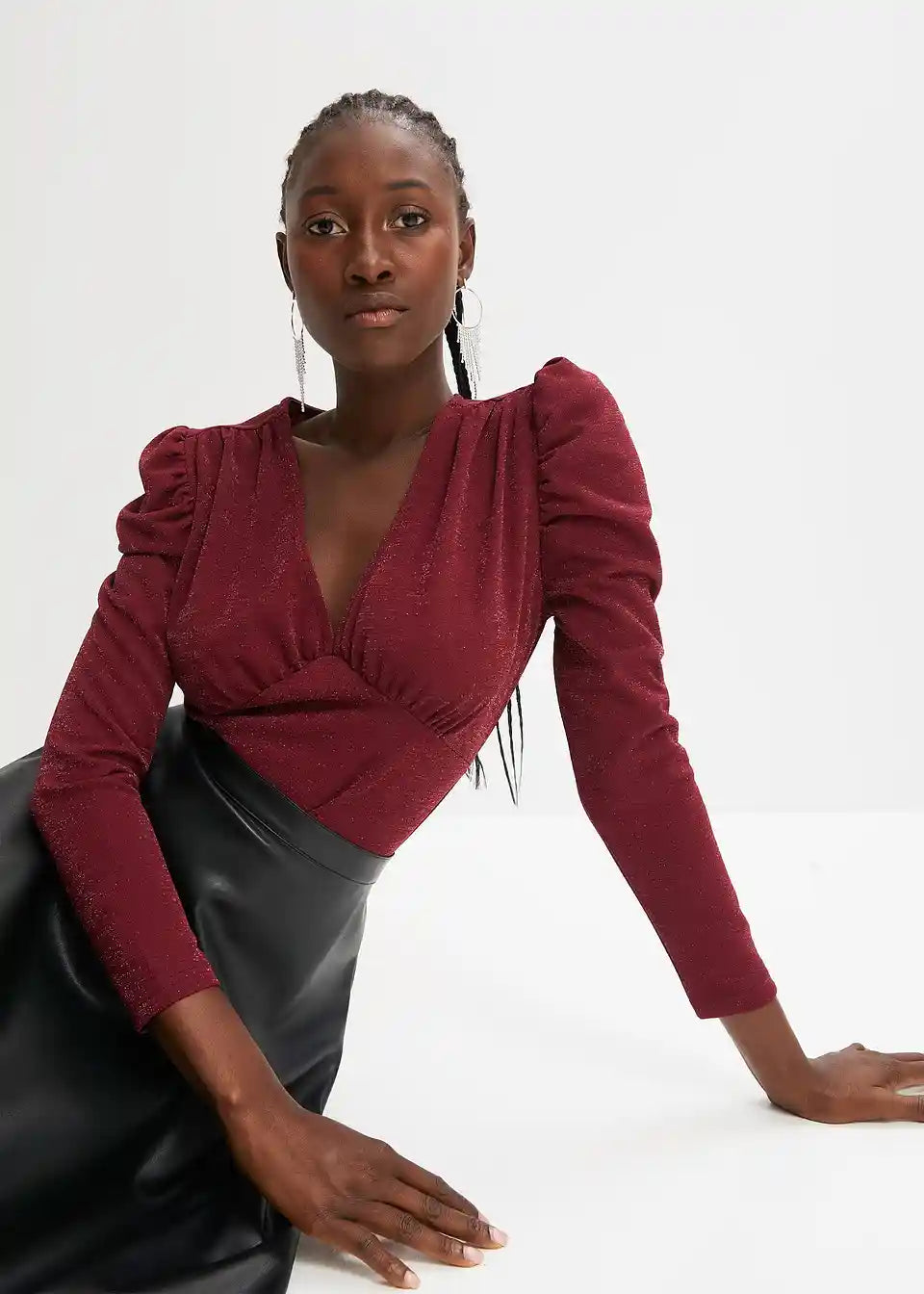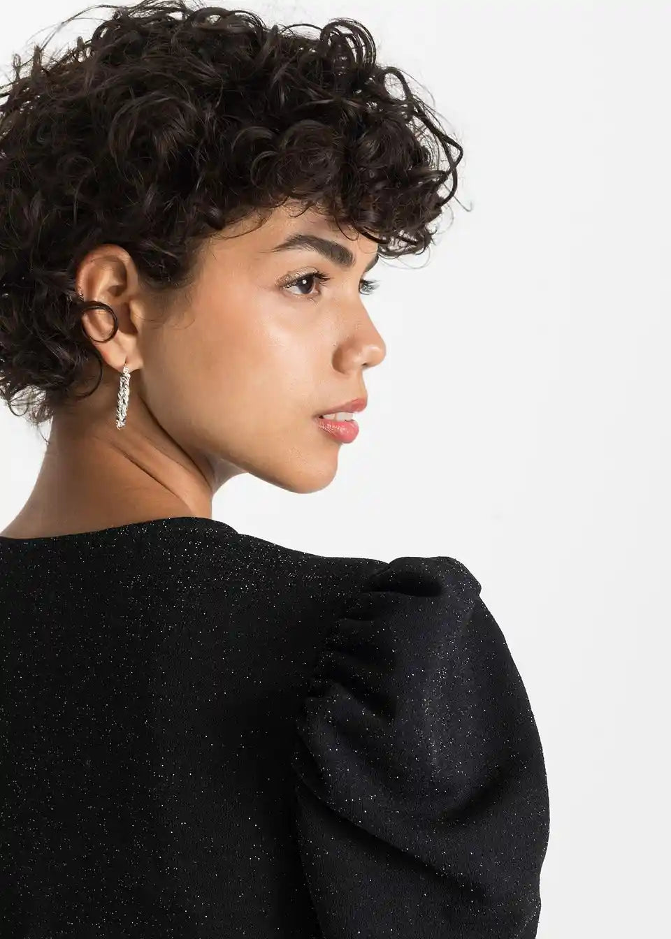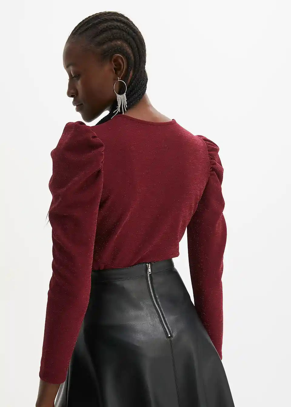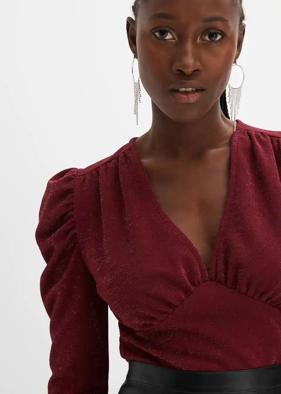 Modischer Glitzer-Body mit Puffärmeln - ein Hingucker für die Feiertag