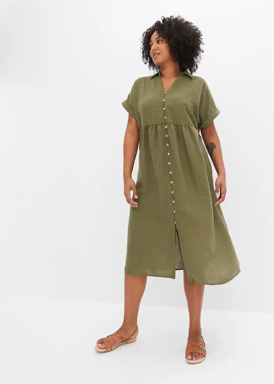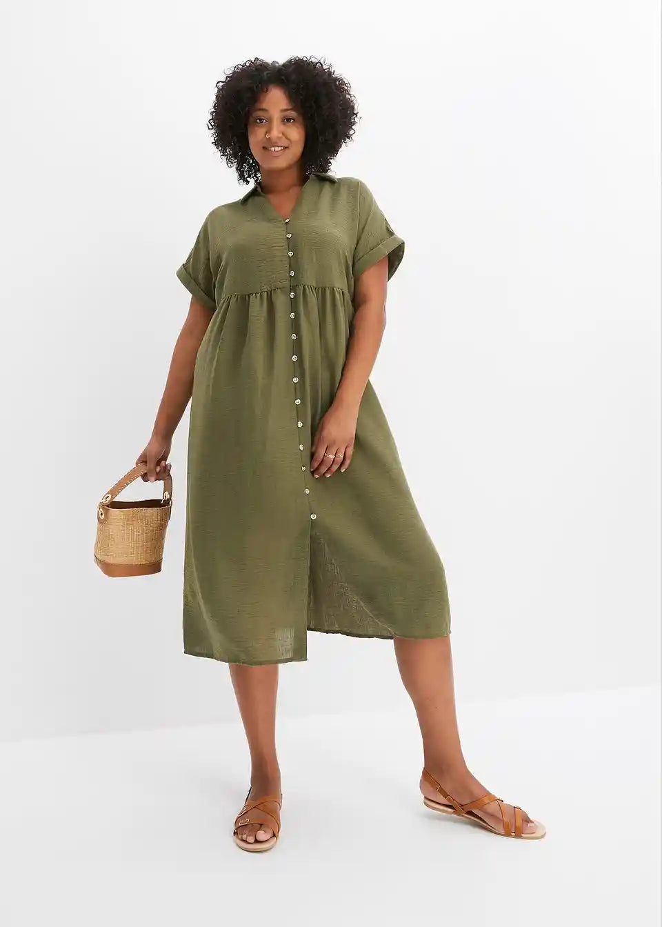 Tolles Midi-Blusenkleid im Leinenlook