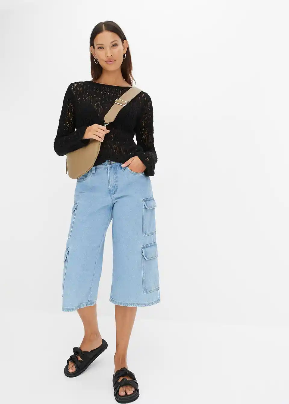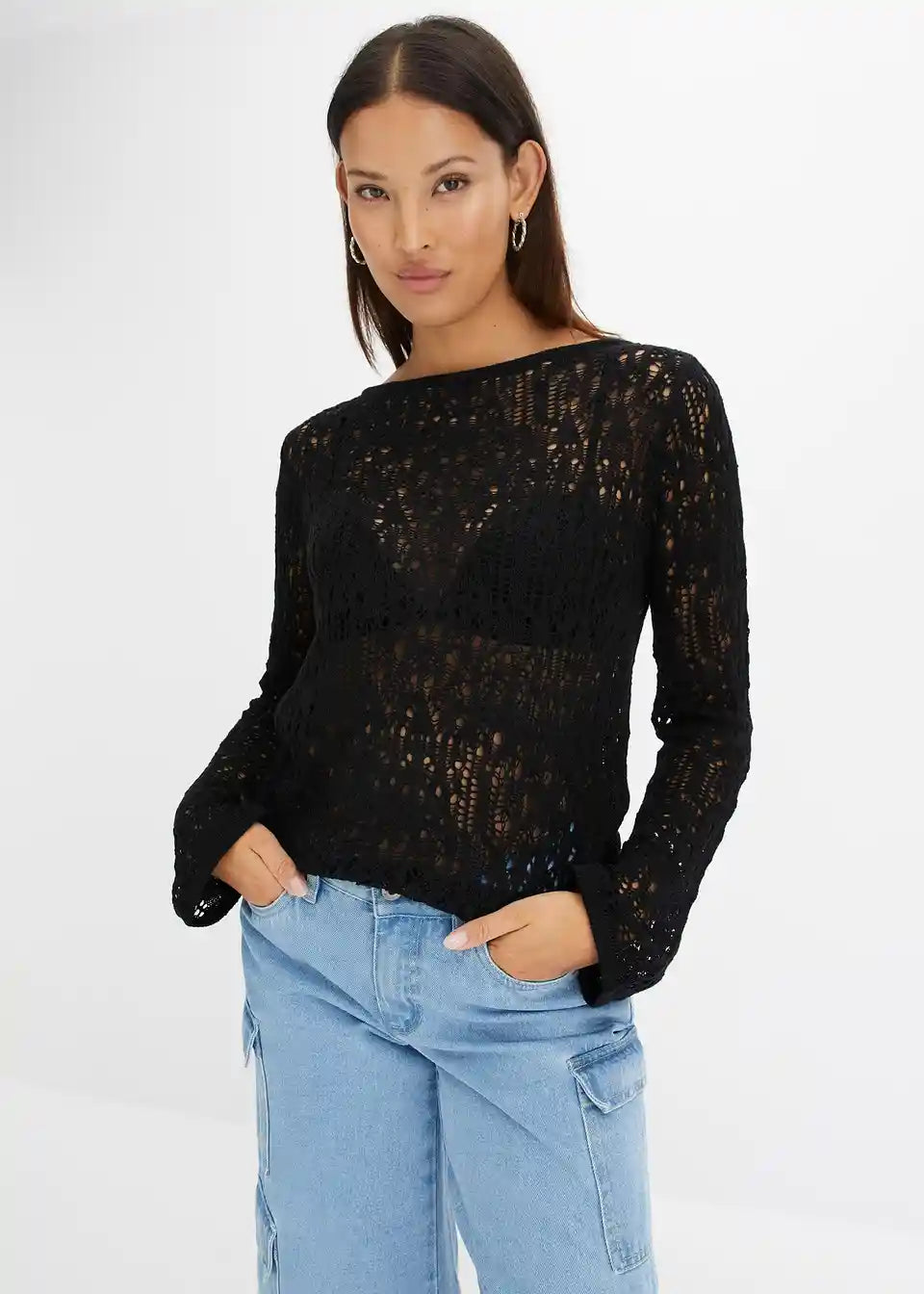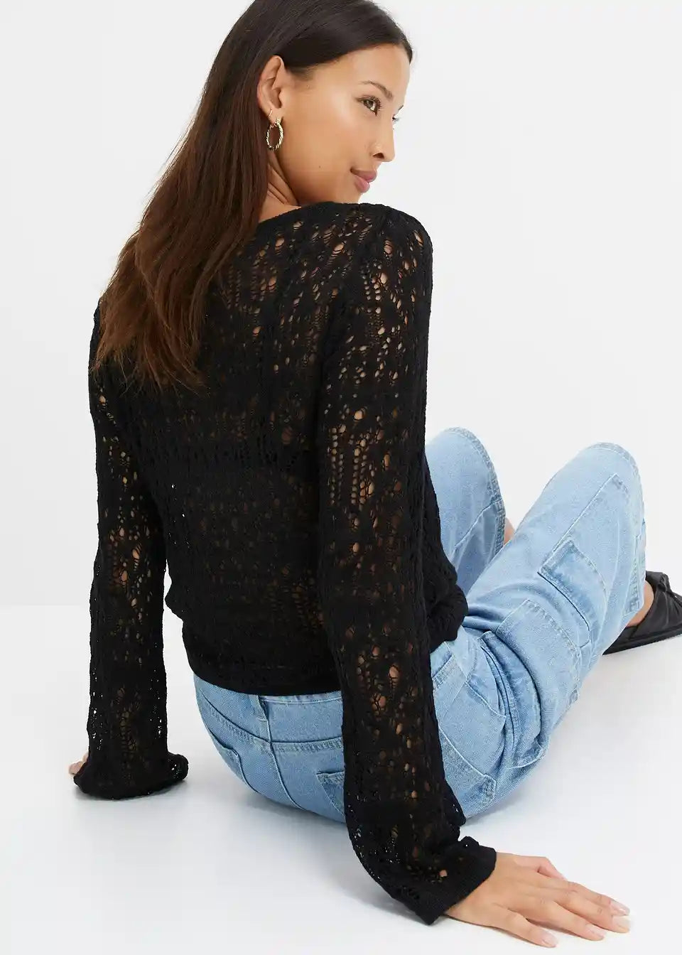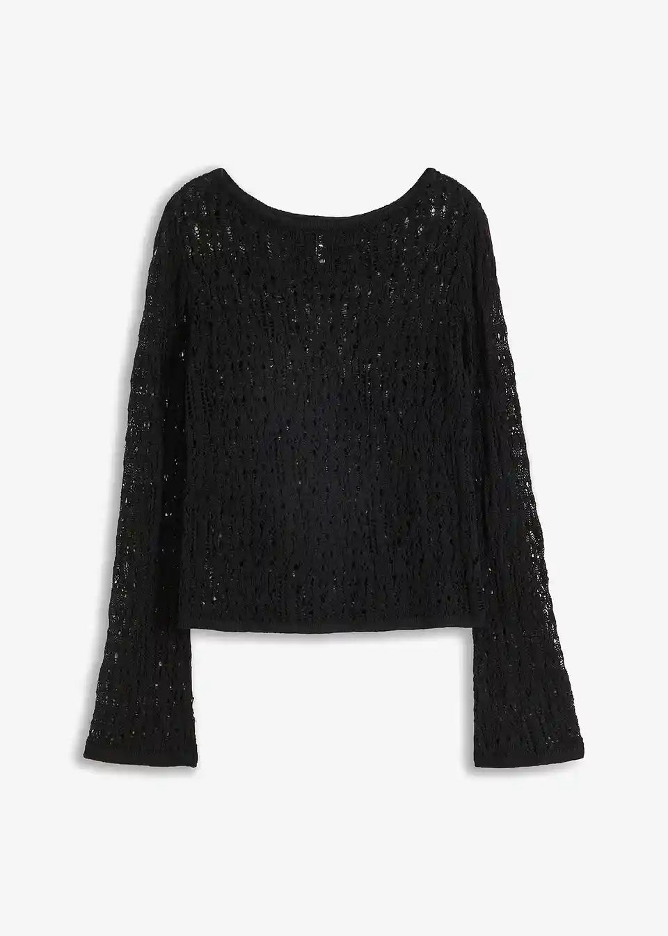 Lochstrick-Pullover mit leichten Trompetenärmeln