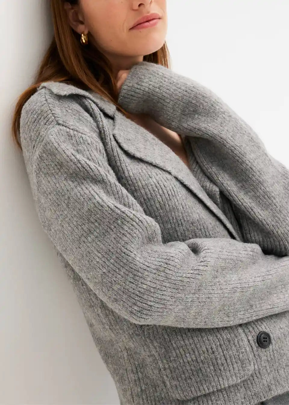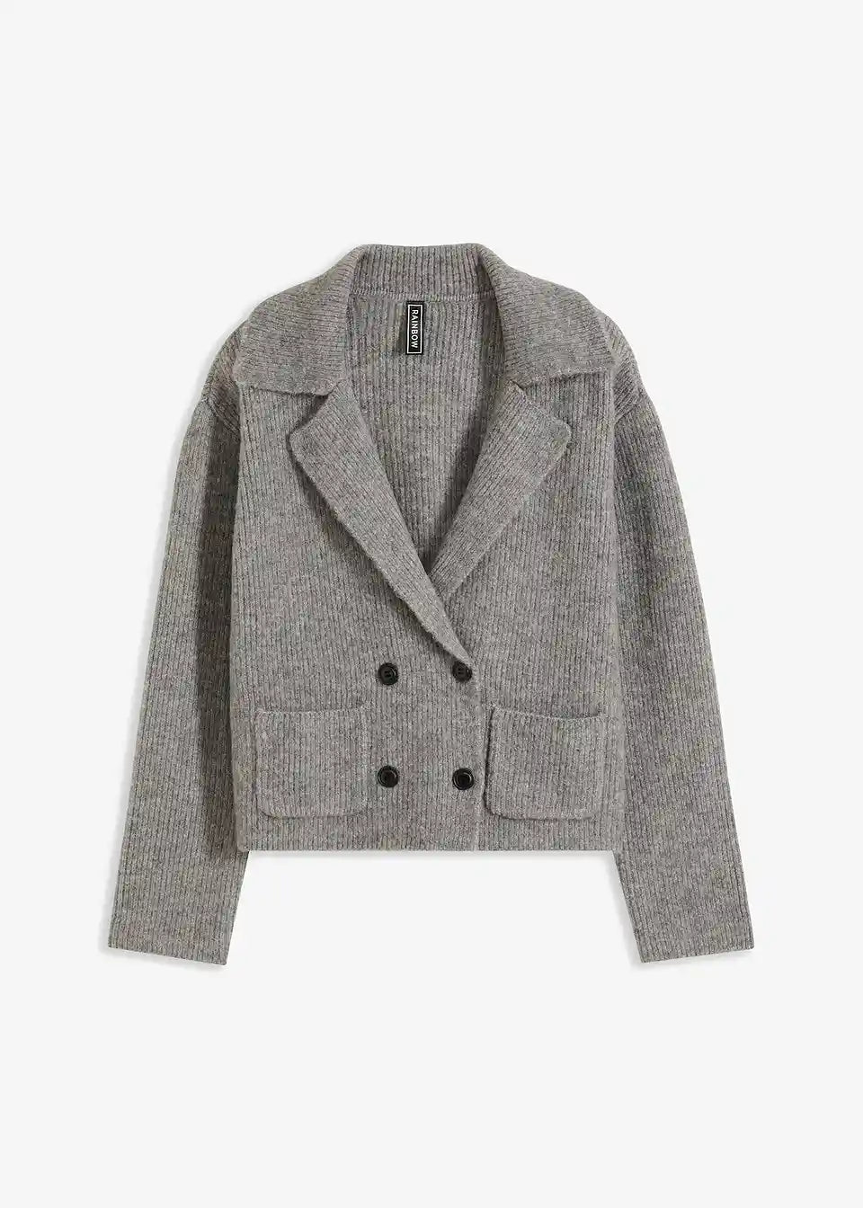 Doppelreihiger Strickblazer mit aufgesetzten Taschen