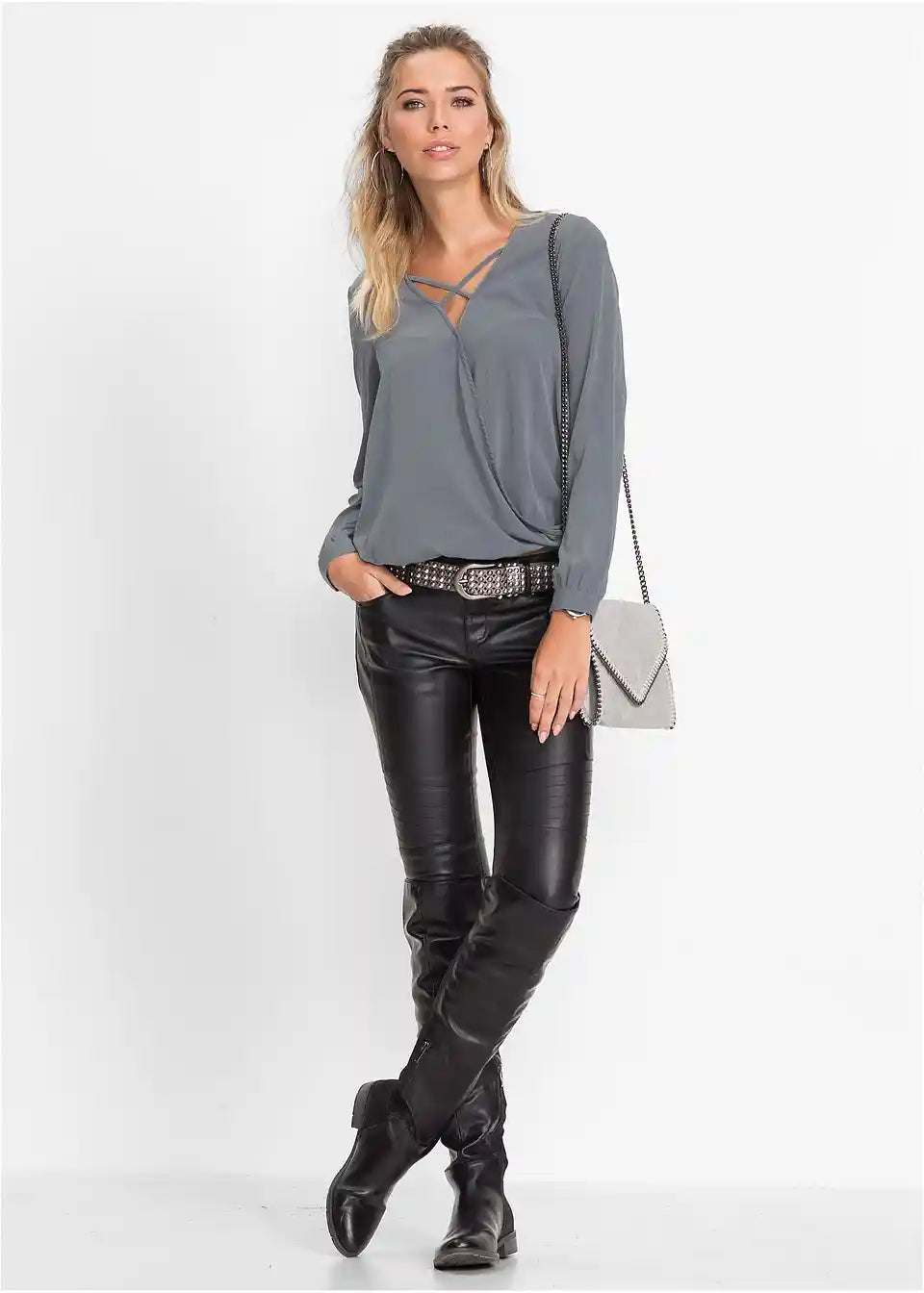 Langärmlige Bluse mit Wickeloptik und in legerer Passform