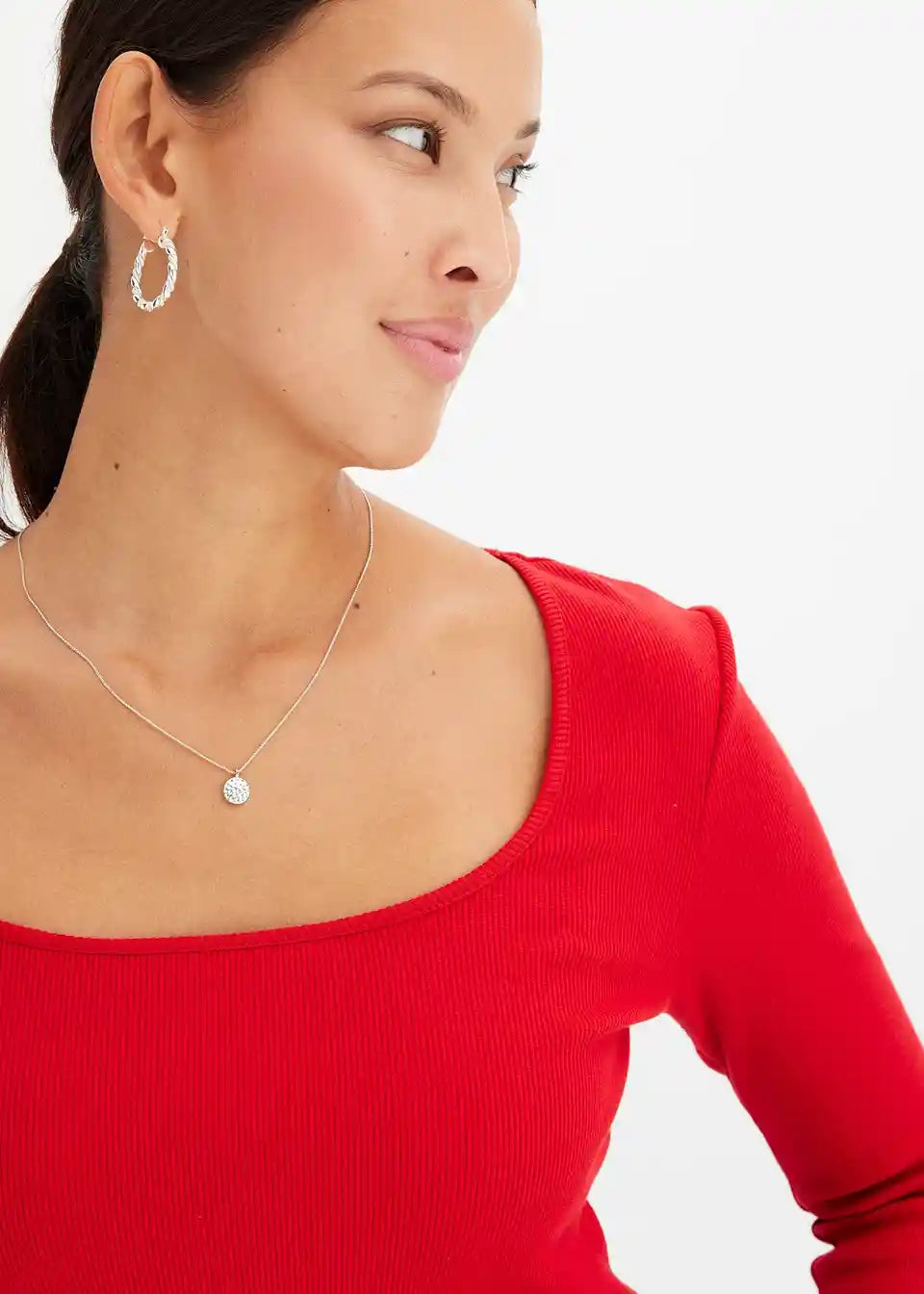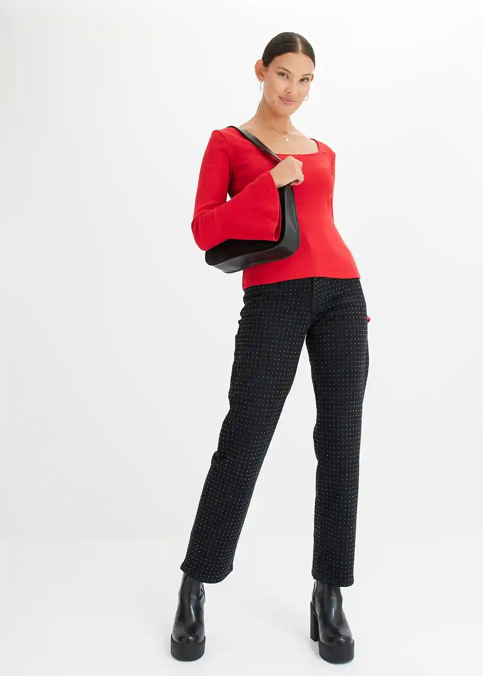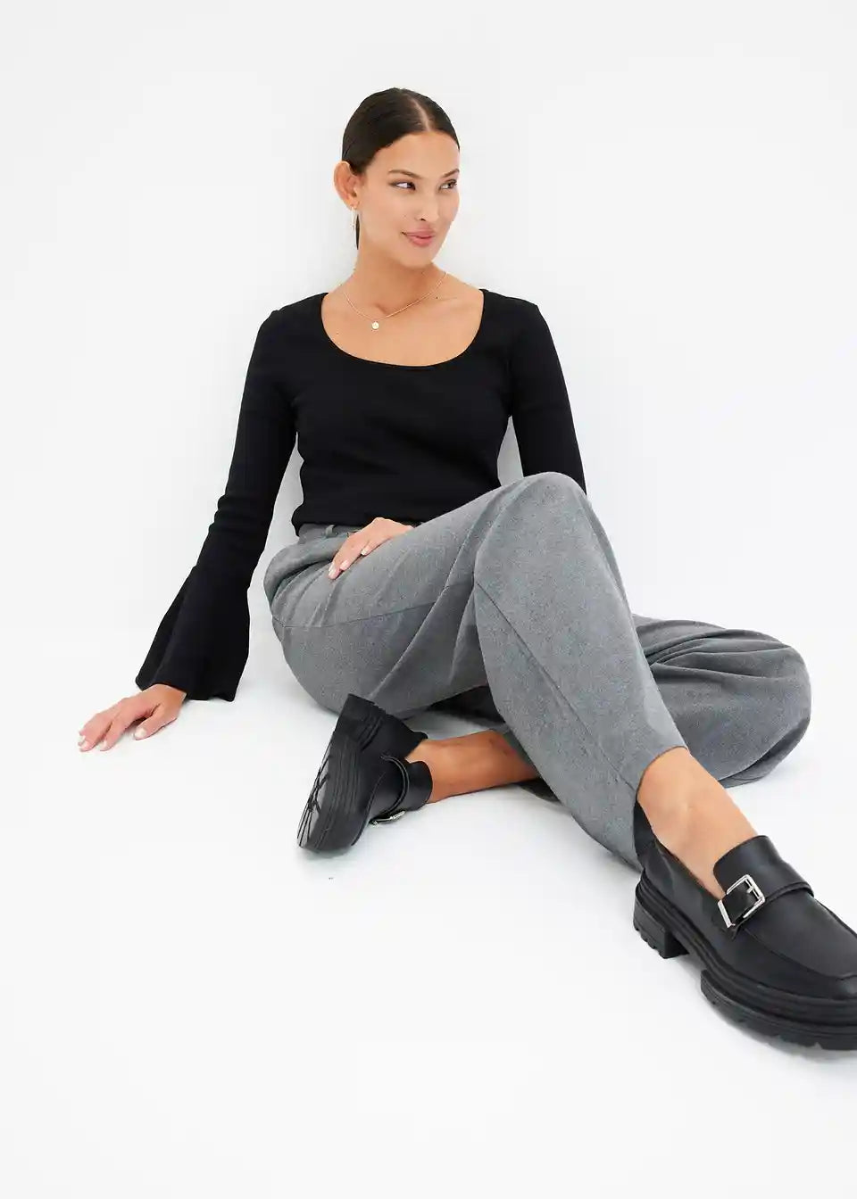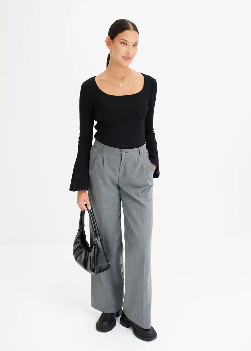 Rippshirt mit Caree Ausschnitt und Trompetenärmeln