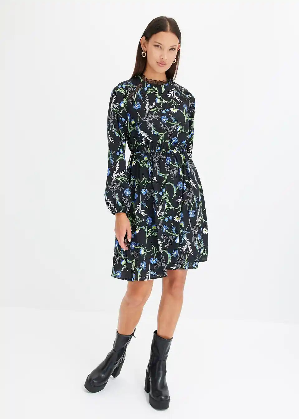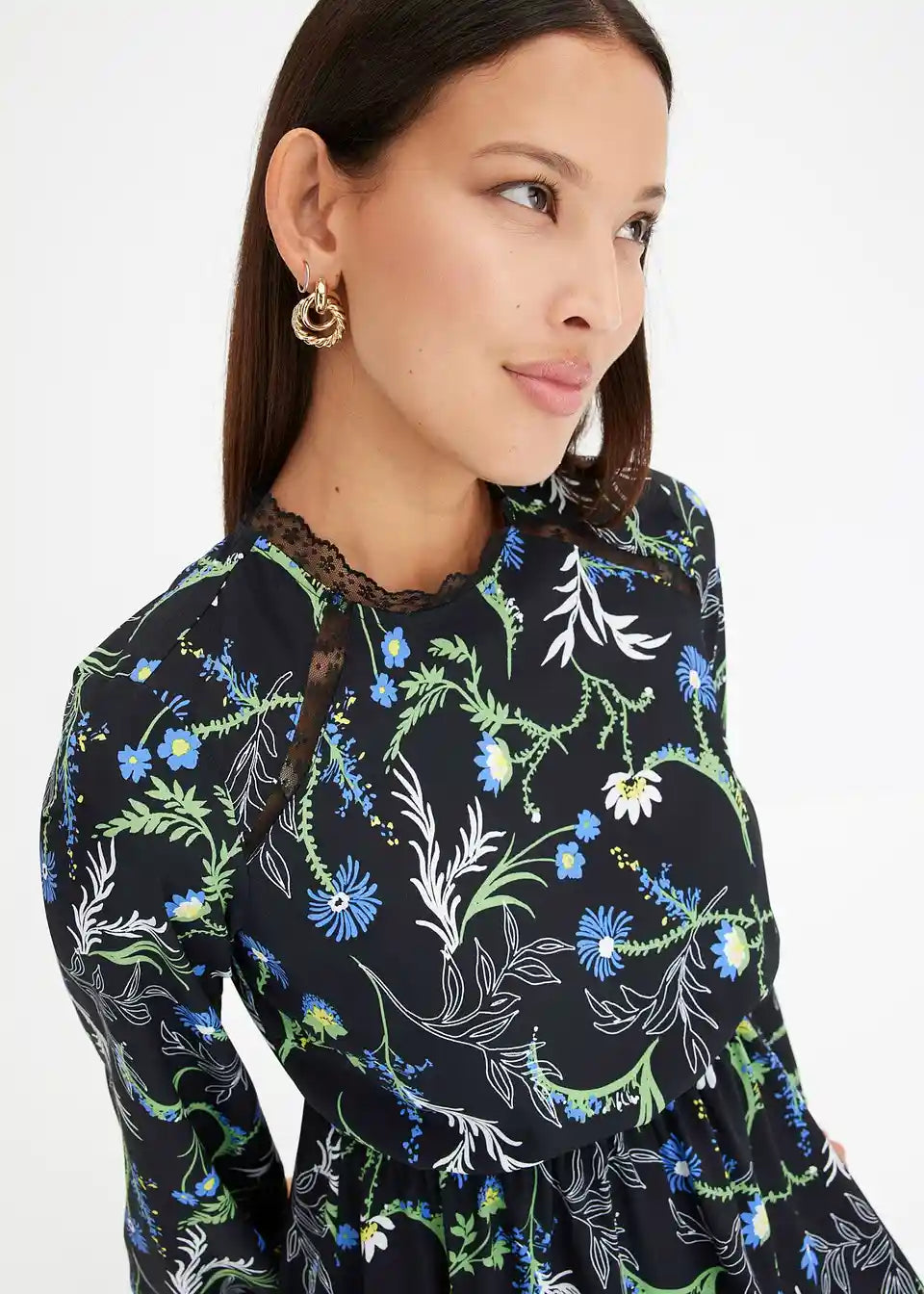 Verspieltes Kleid in Mini-Länge mit Spitzen-Details am Ausschnitt