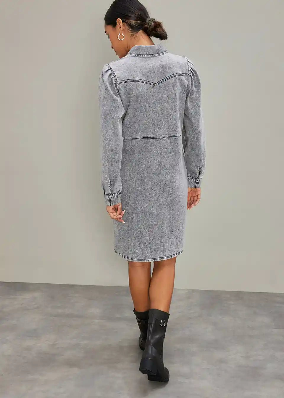 Hemdblusenkleid aus Denim mit Puffärmlen