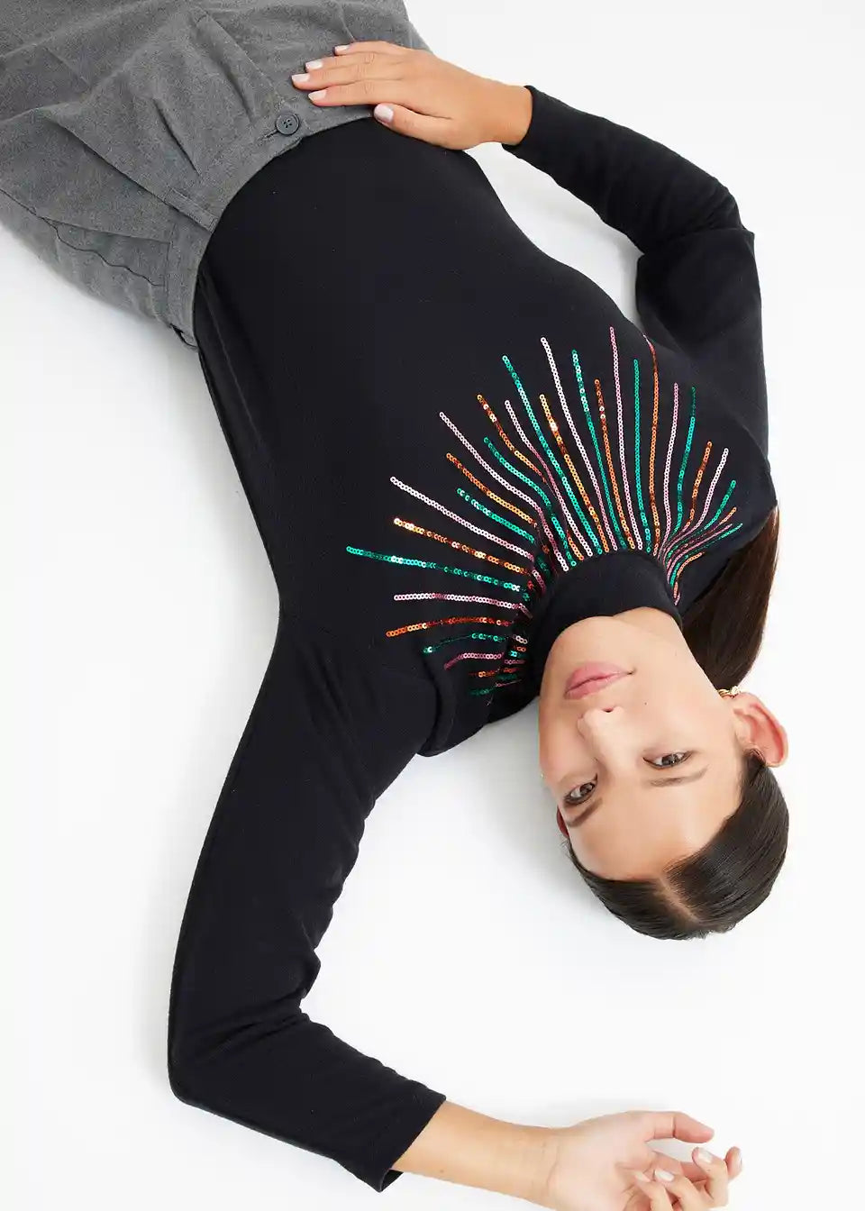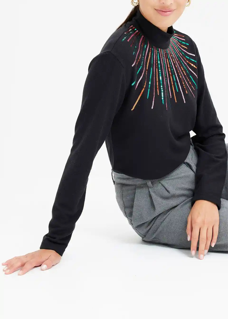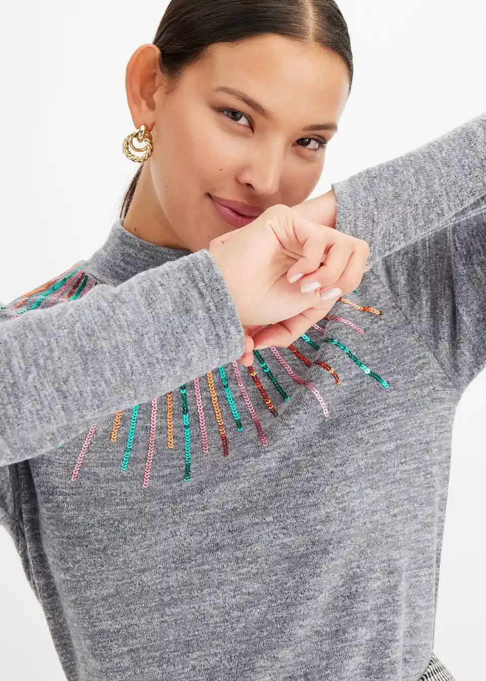 Bequem geschnittenes Langarmshirt mit Paillettendetail