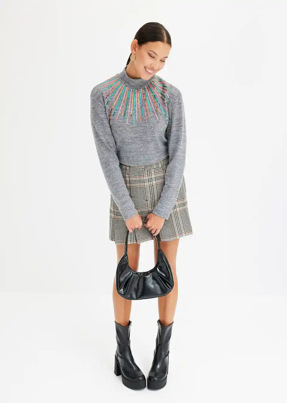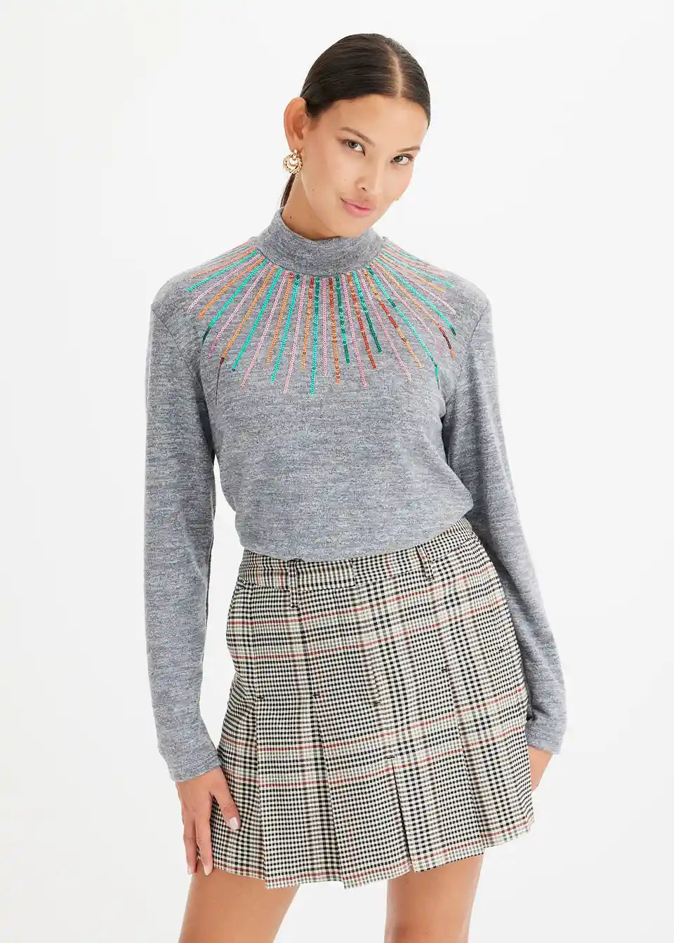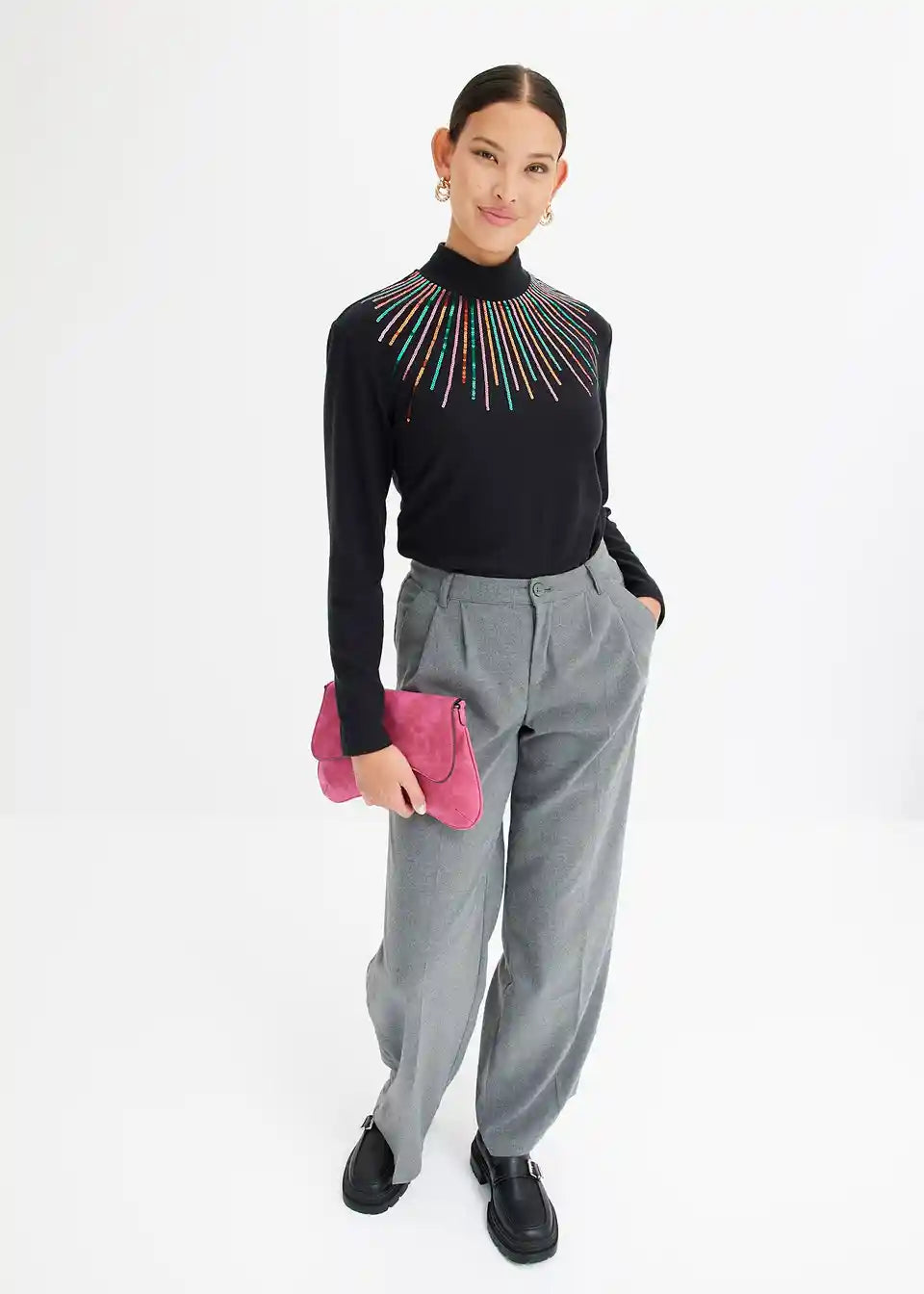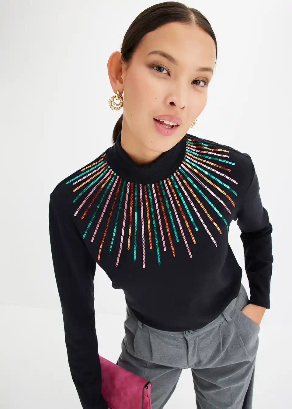 Bequem geschnittenes Langarmshirt mit Paillettendetail