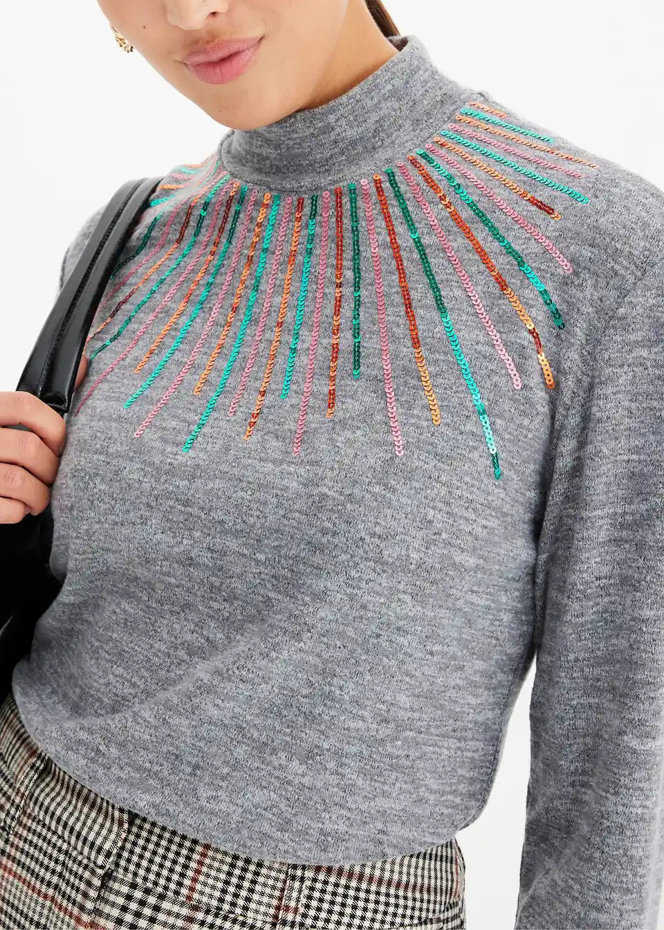 Langarmshirt in Strickoptik mit Pailletten
