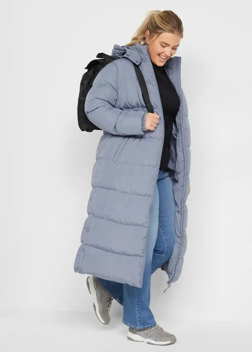 Wärmender Steppmantel mit seitlichen Knöpfen, extralang