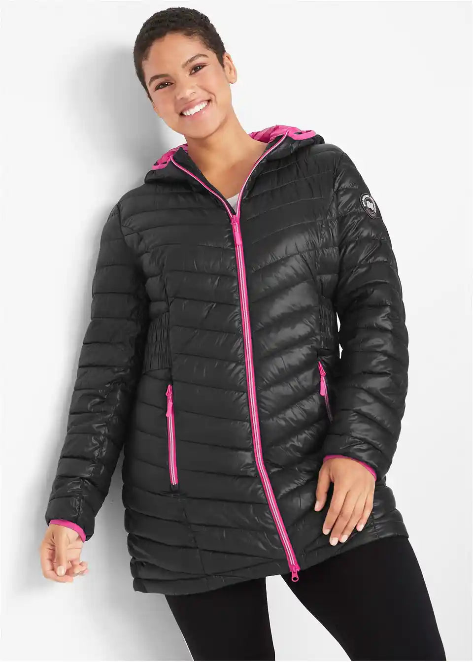 elastische Einsätze an der Seite, 2-Wege-Reißverschluss, komplett in Beutel verstaubar, Länge in Gr. 42 ca. 82 cm.