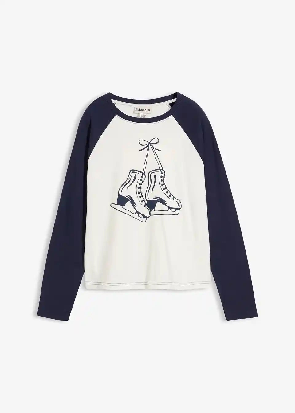 Langarmshirt aus reiner Bio-Baumwolle mit Weihnachtsmotiv