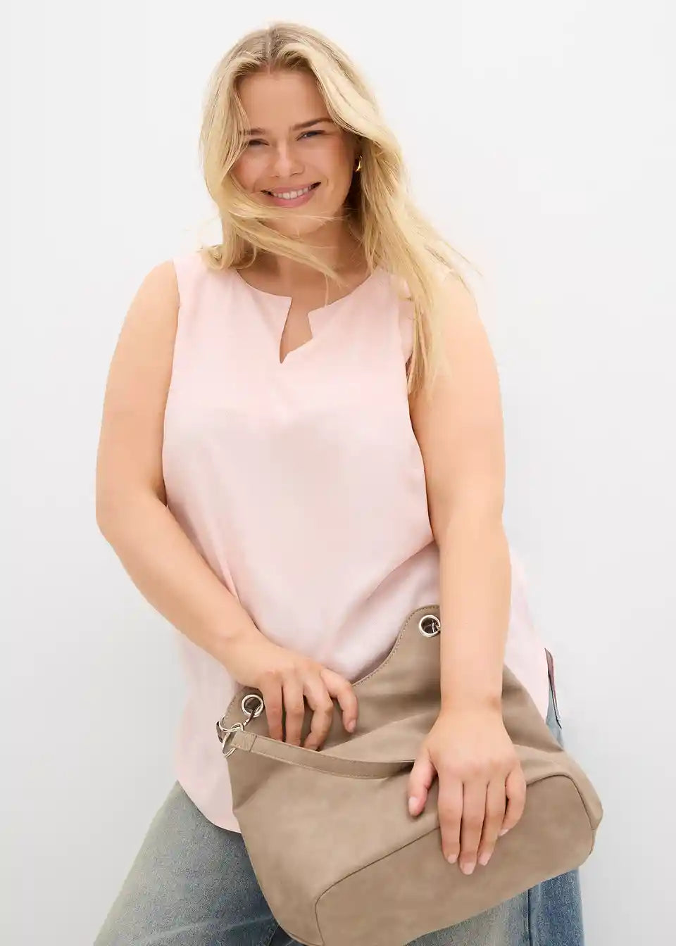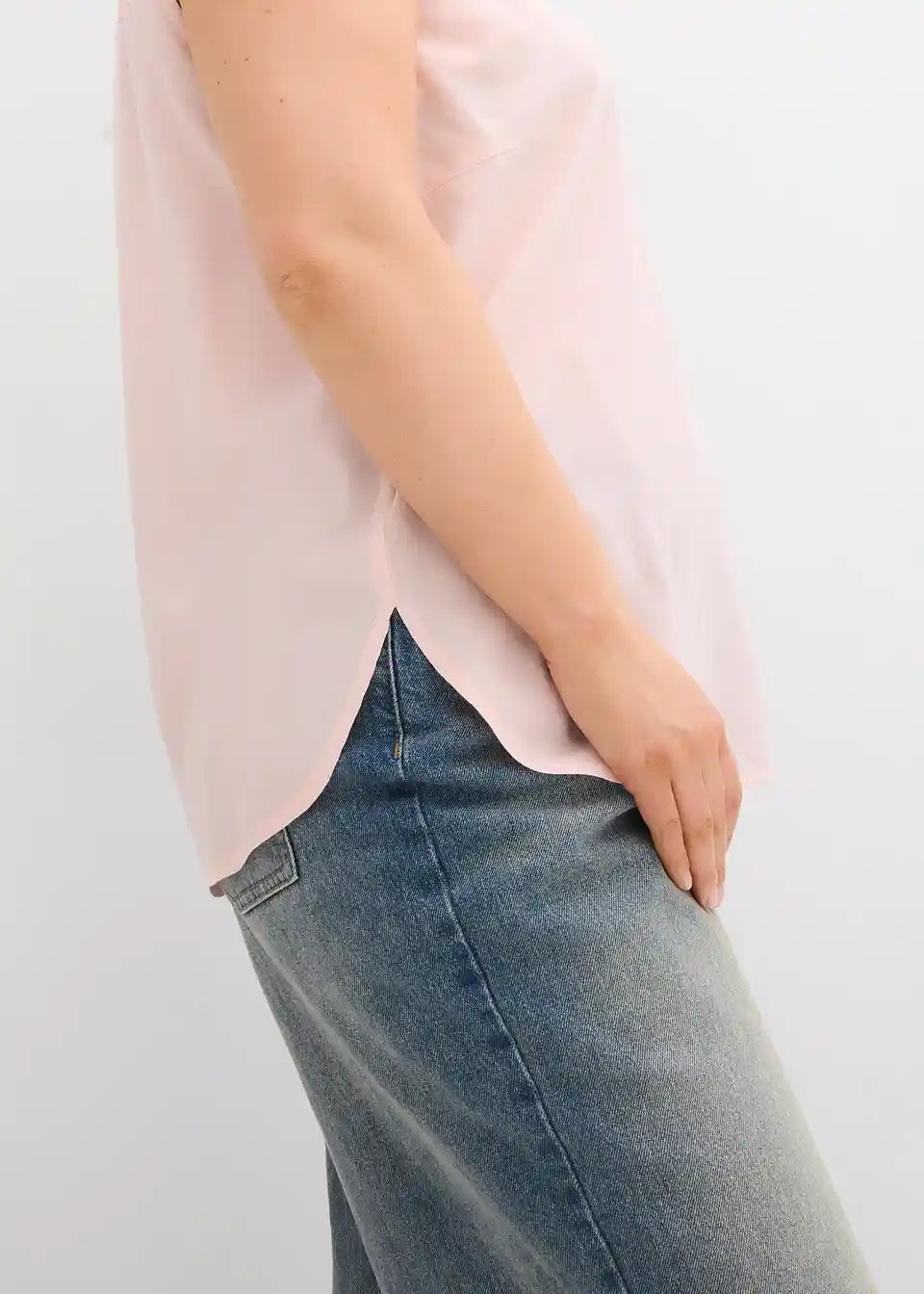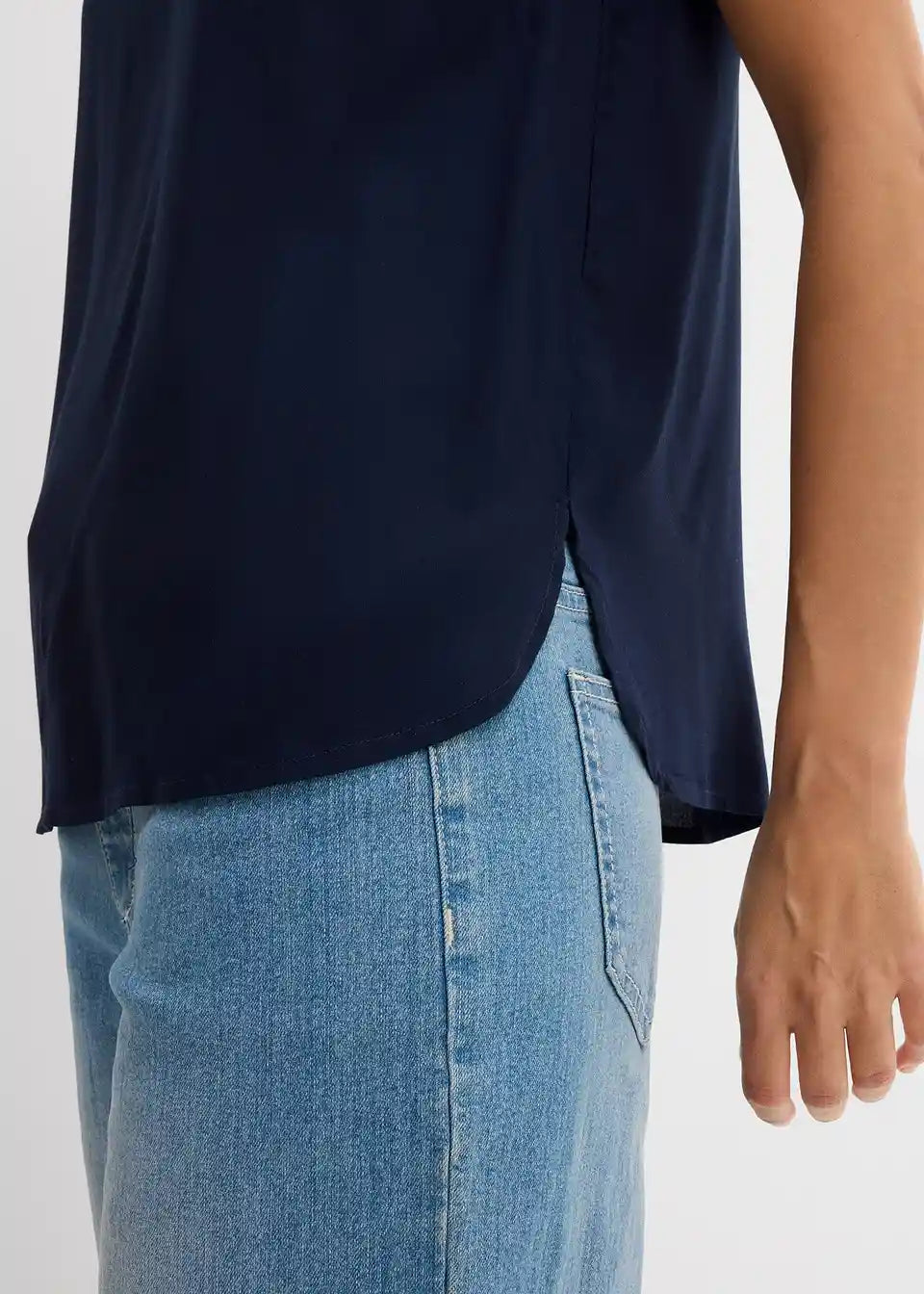 hüftlanges Blusentop mit tiefem Ausschnitt