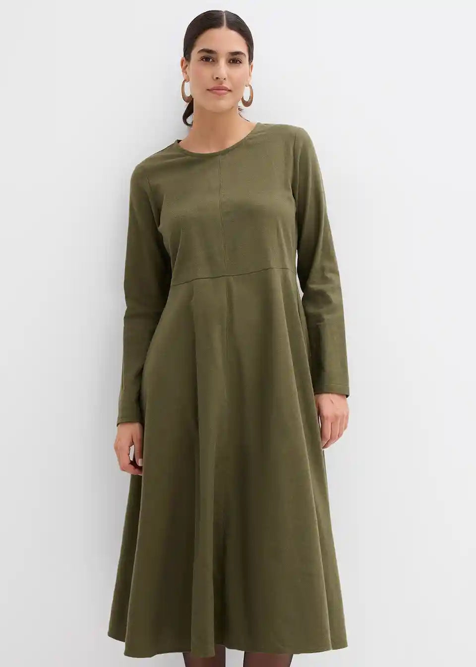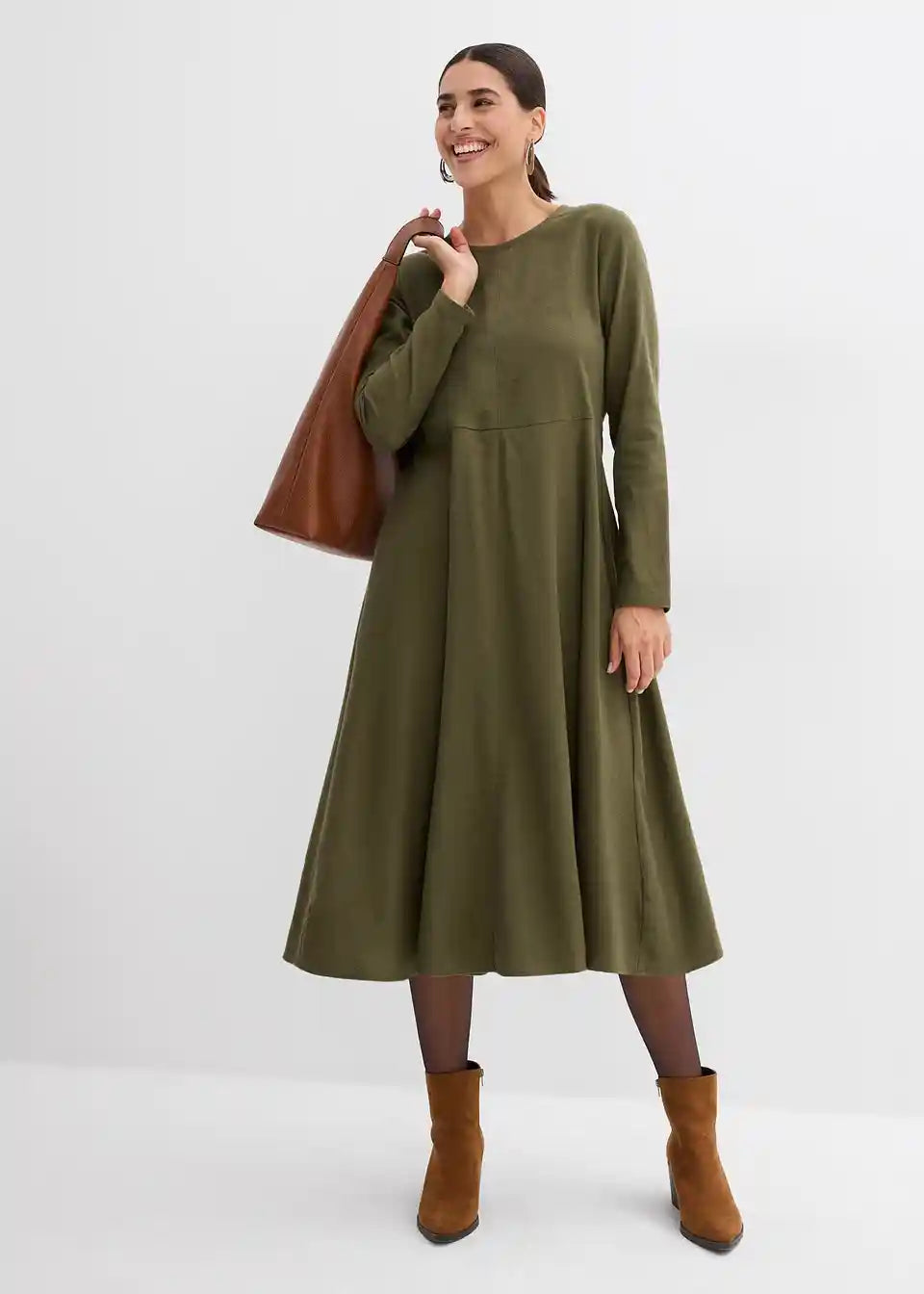 Ausgestelltes Kleid mit hochgeschlossenem Rundhalsausschnitt
