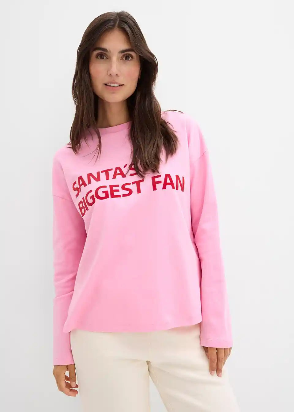 Weit geschnittenes Baumwoll-Shirt mit weihnachtlichem Wording
