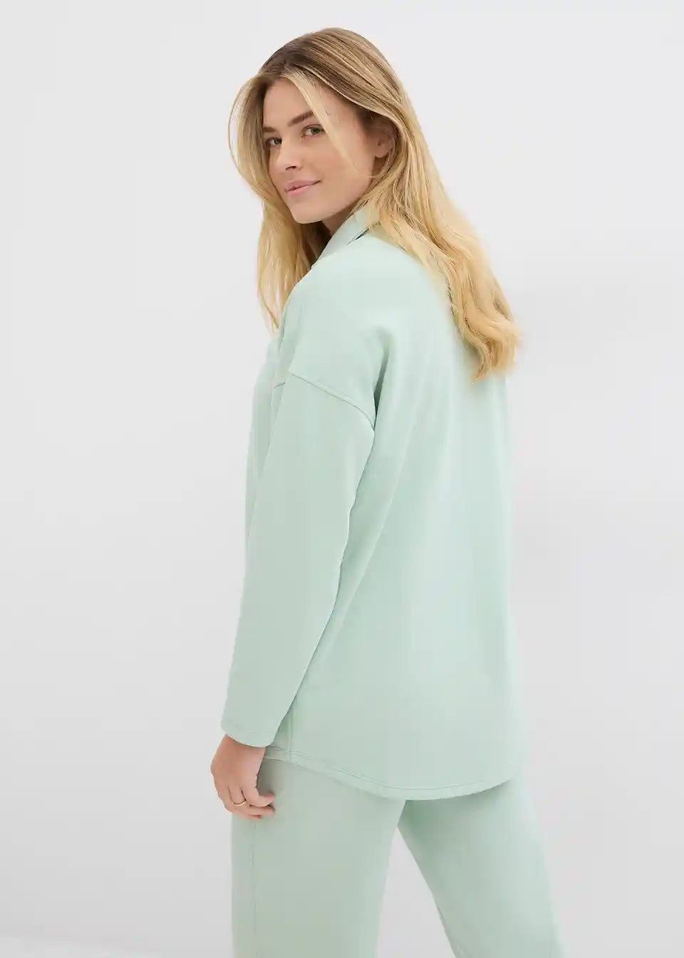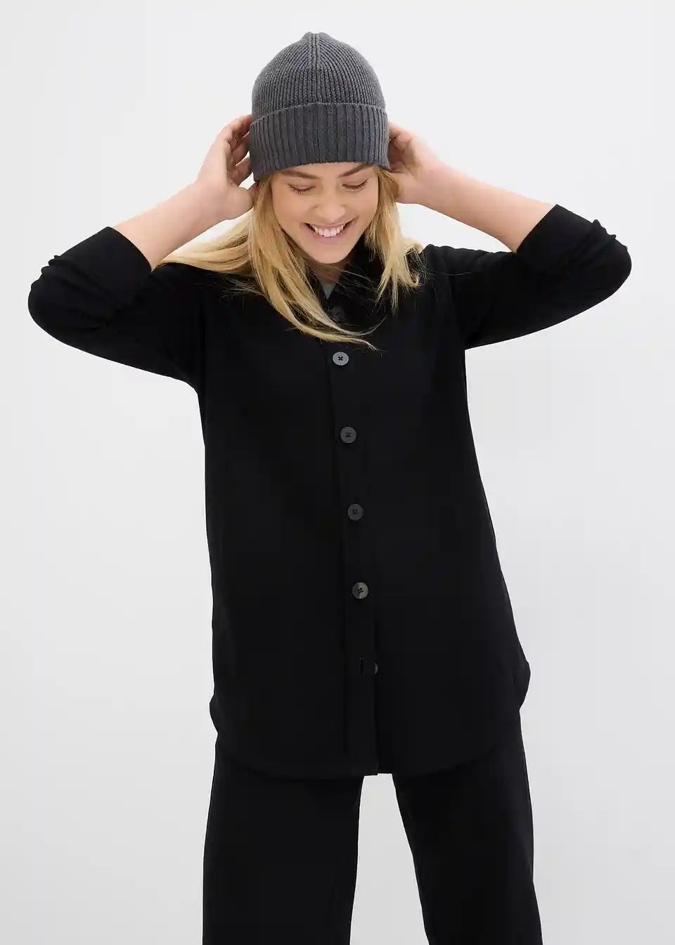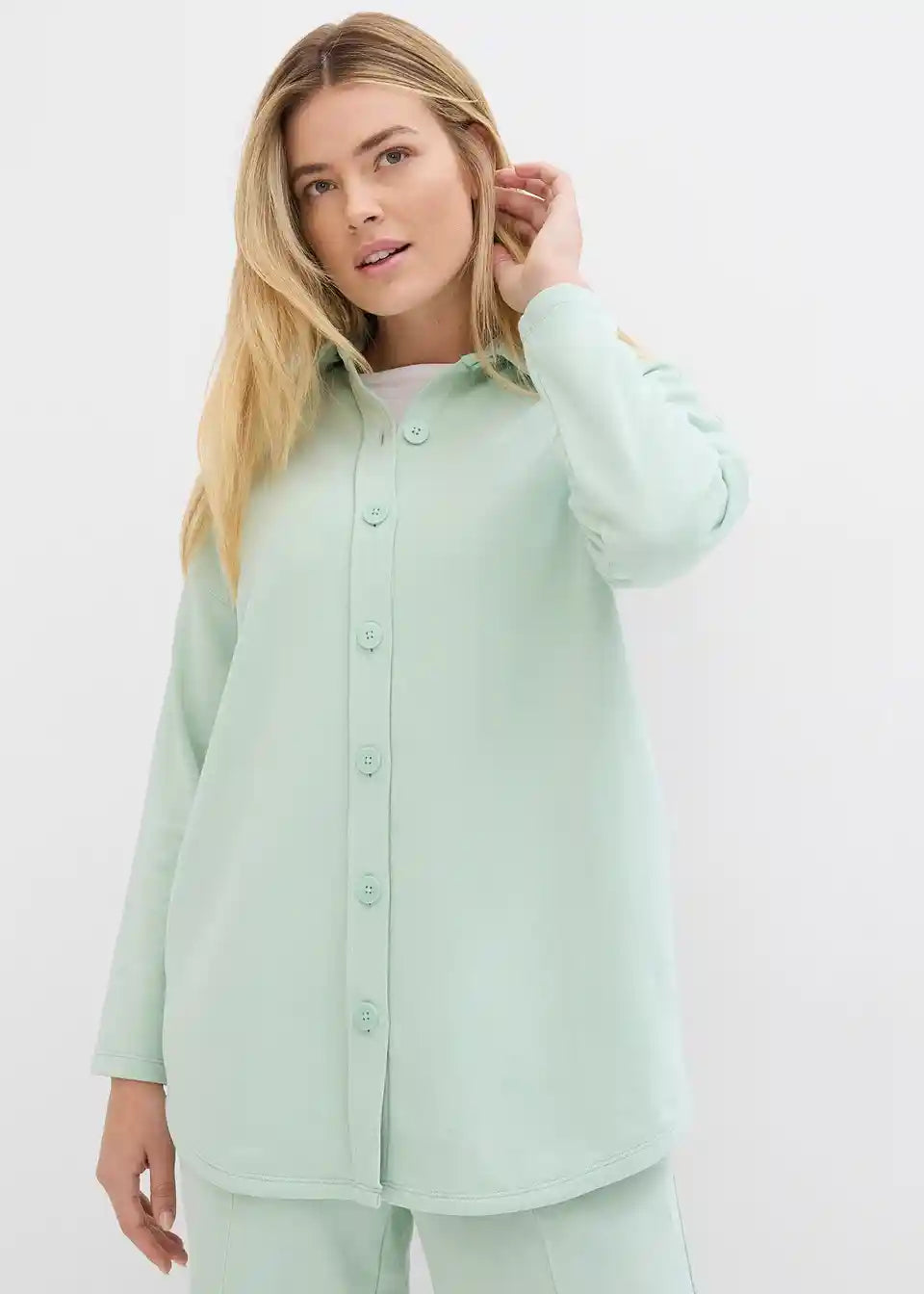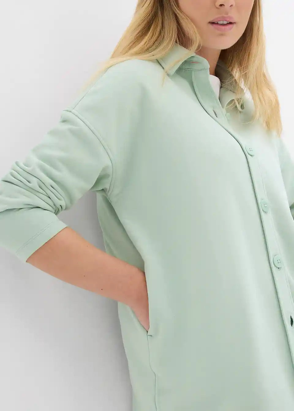 Lange Sweatjacke mit Knopfleiste und Eingriffstaschen